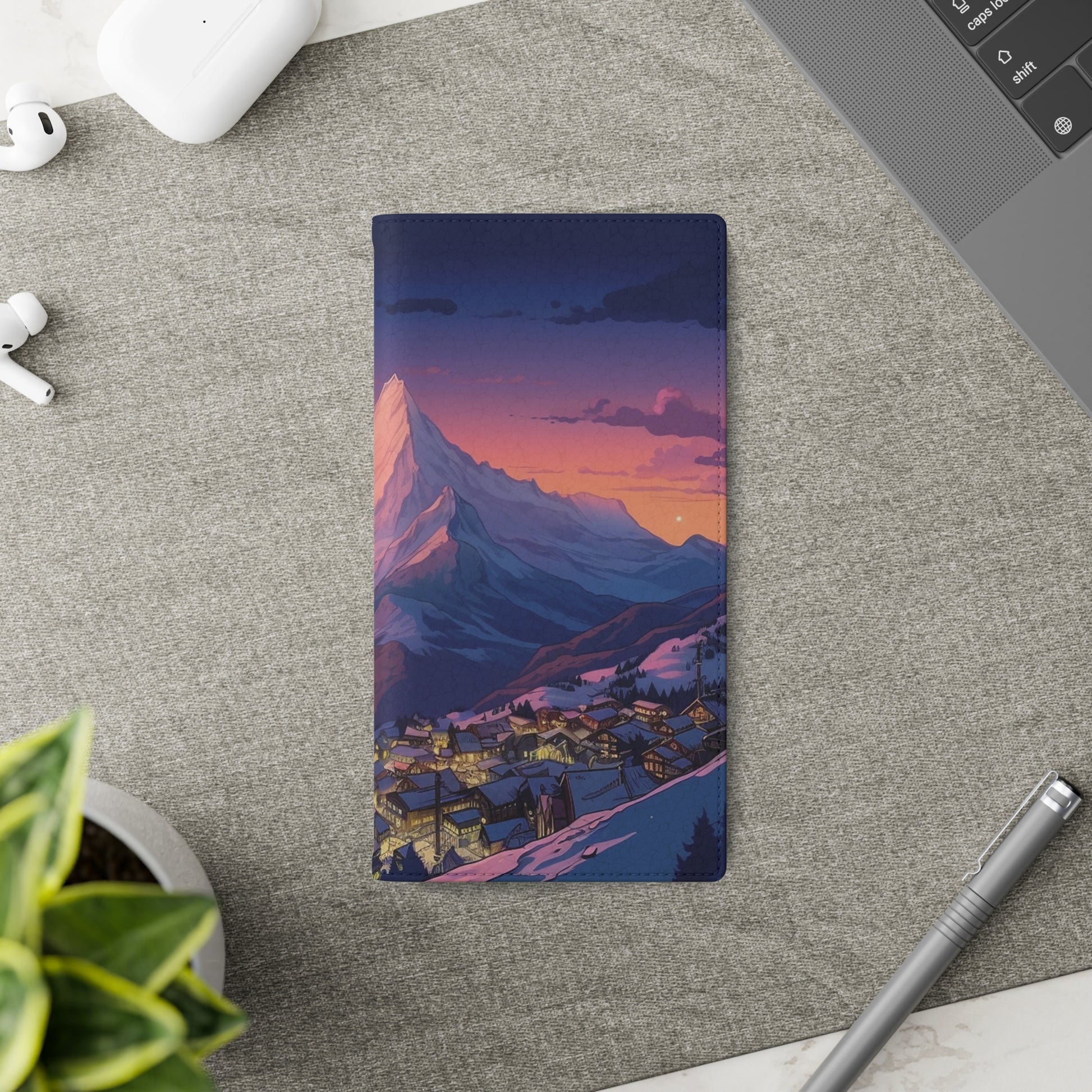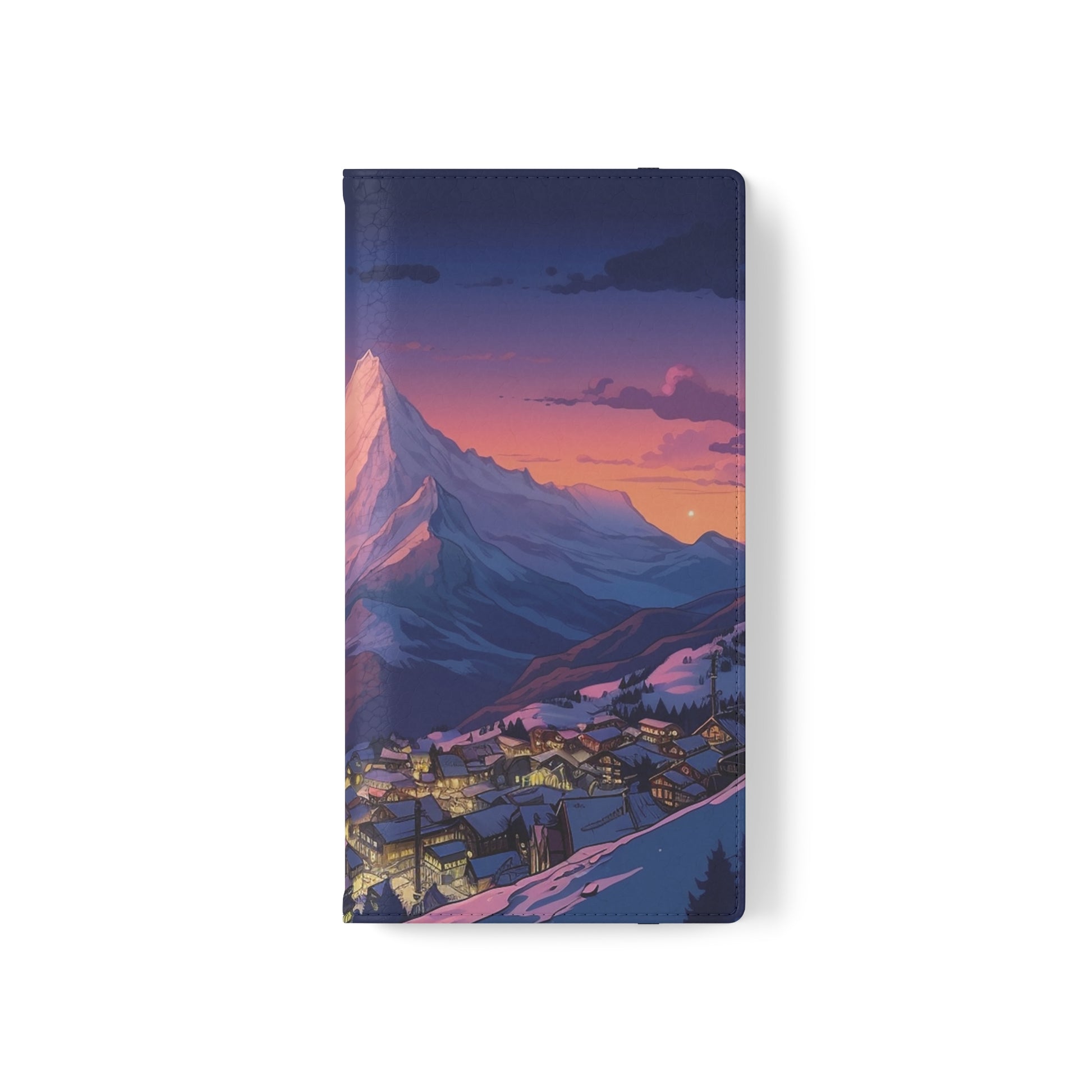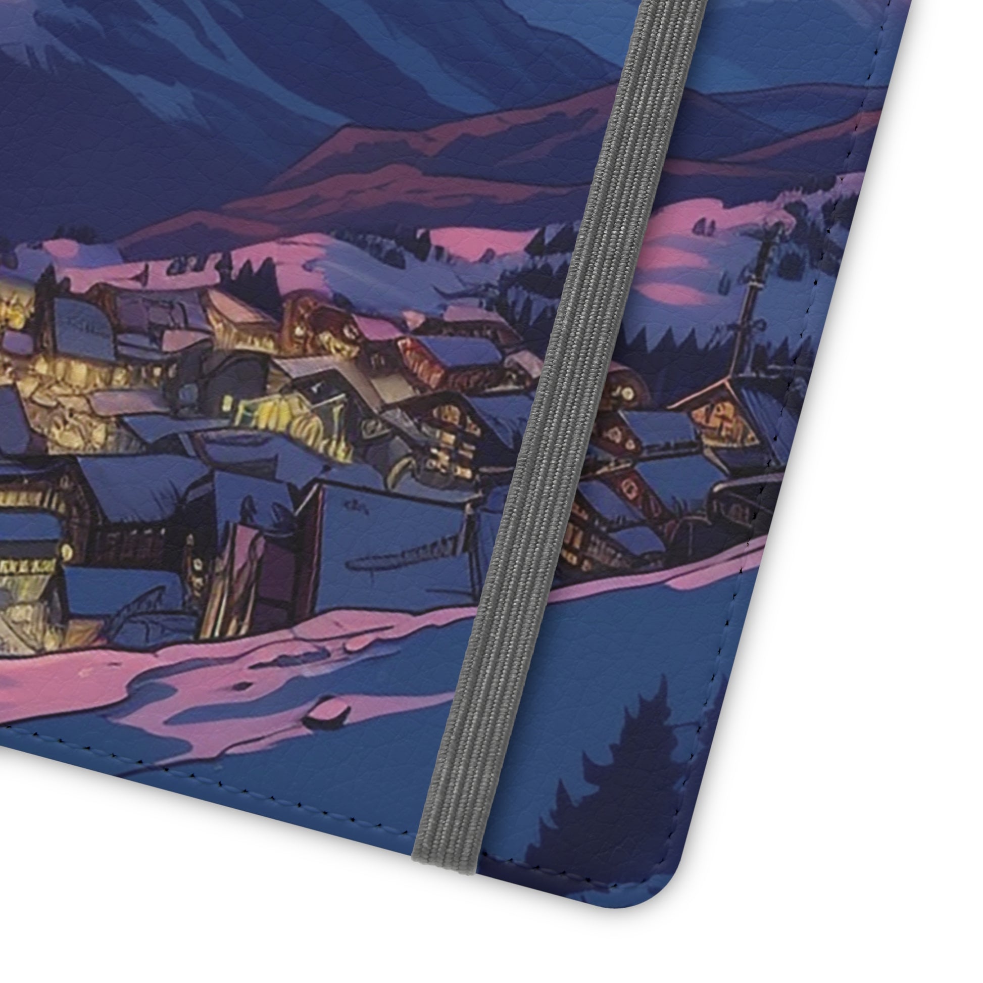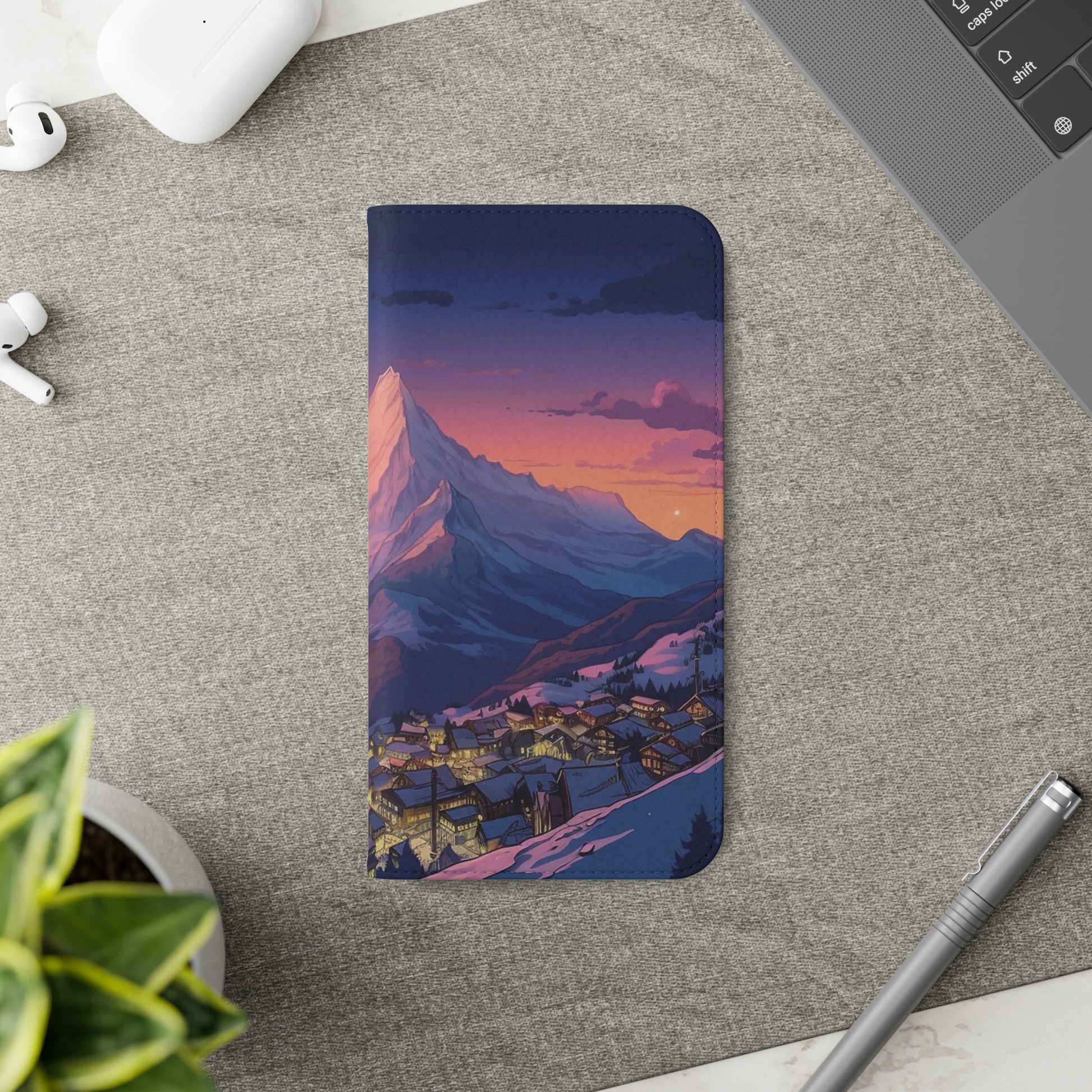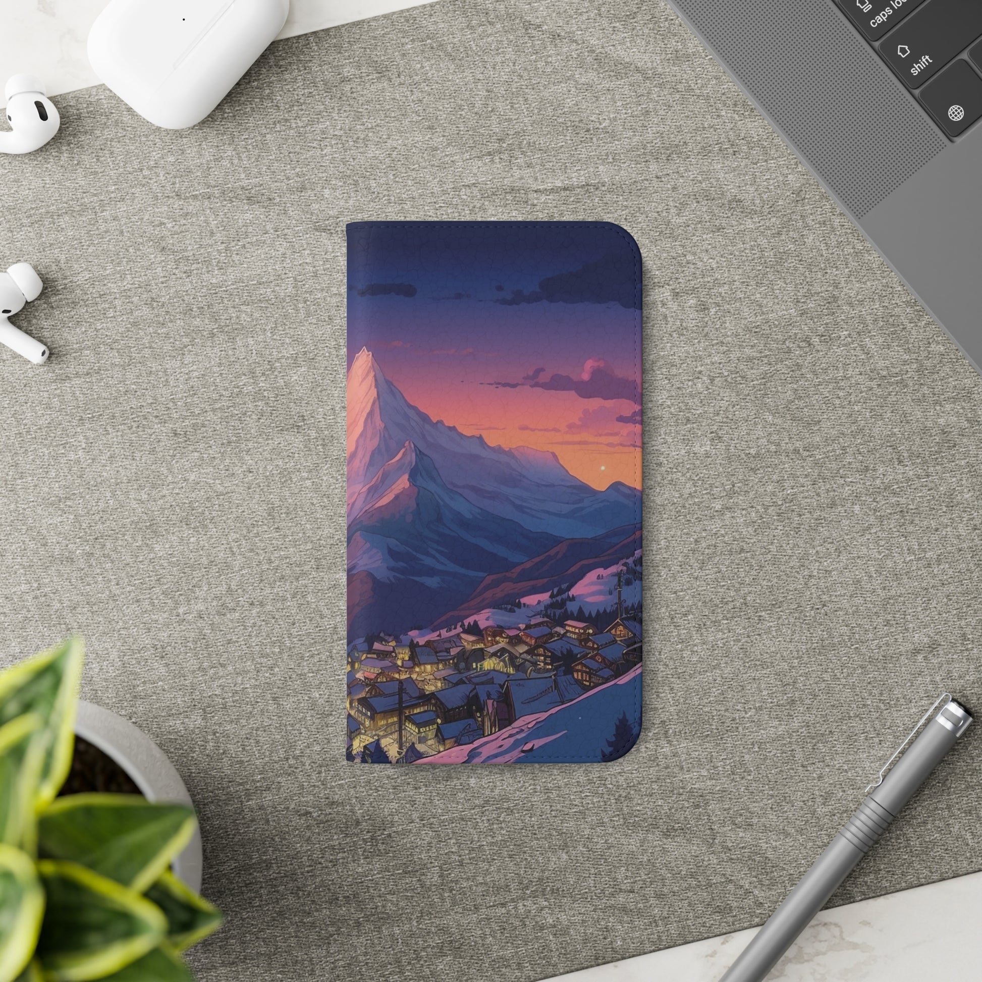 Snowy Mountain Landscape Sunset Flip Phone Case - Discover Serenity with a Charming Mountain Village