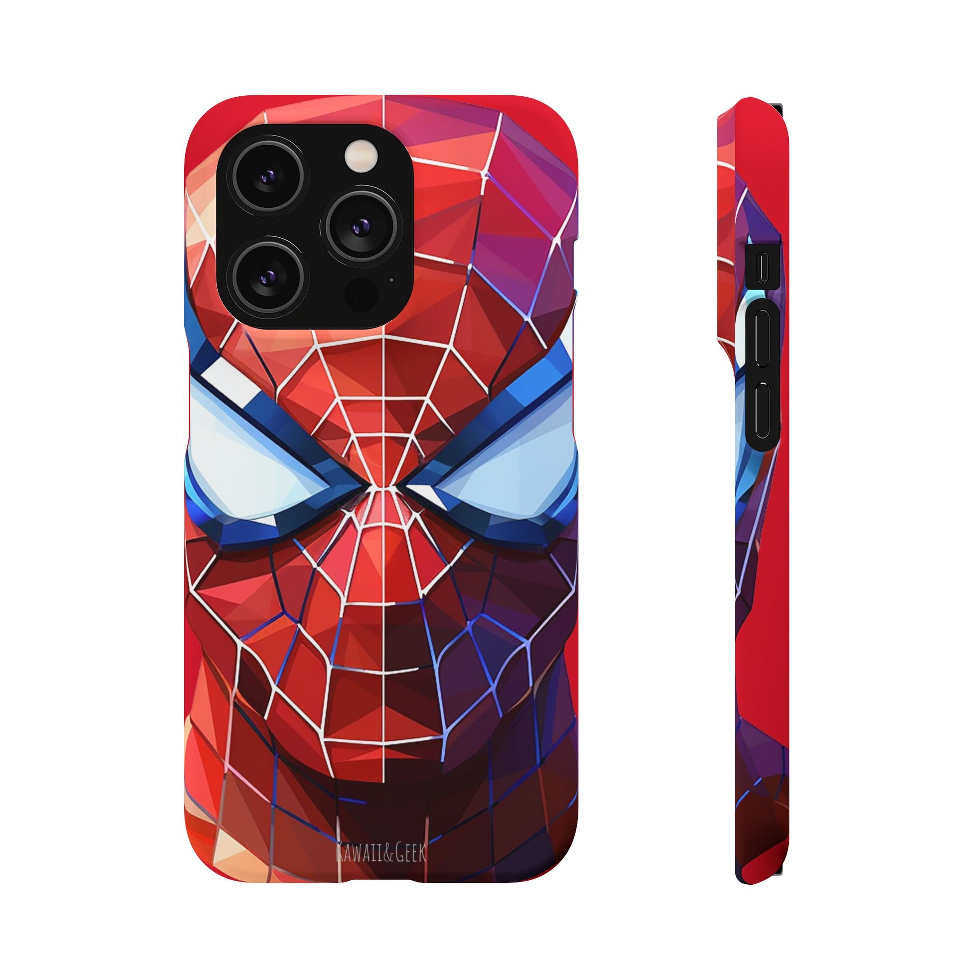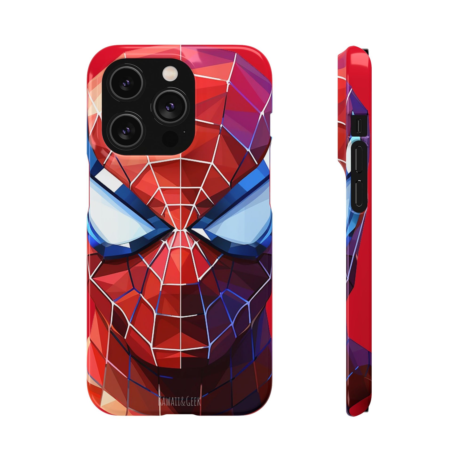 Keywords: Spider-Man phone case, facet geometric style, premium materials, web-slinging style, dynamic design, Marvel fan, modern accessories.