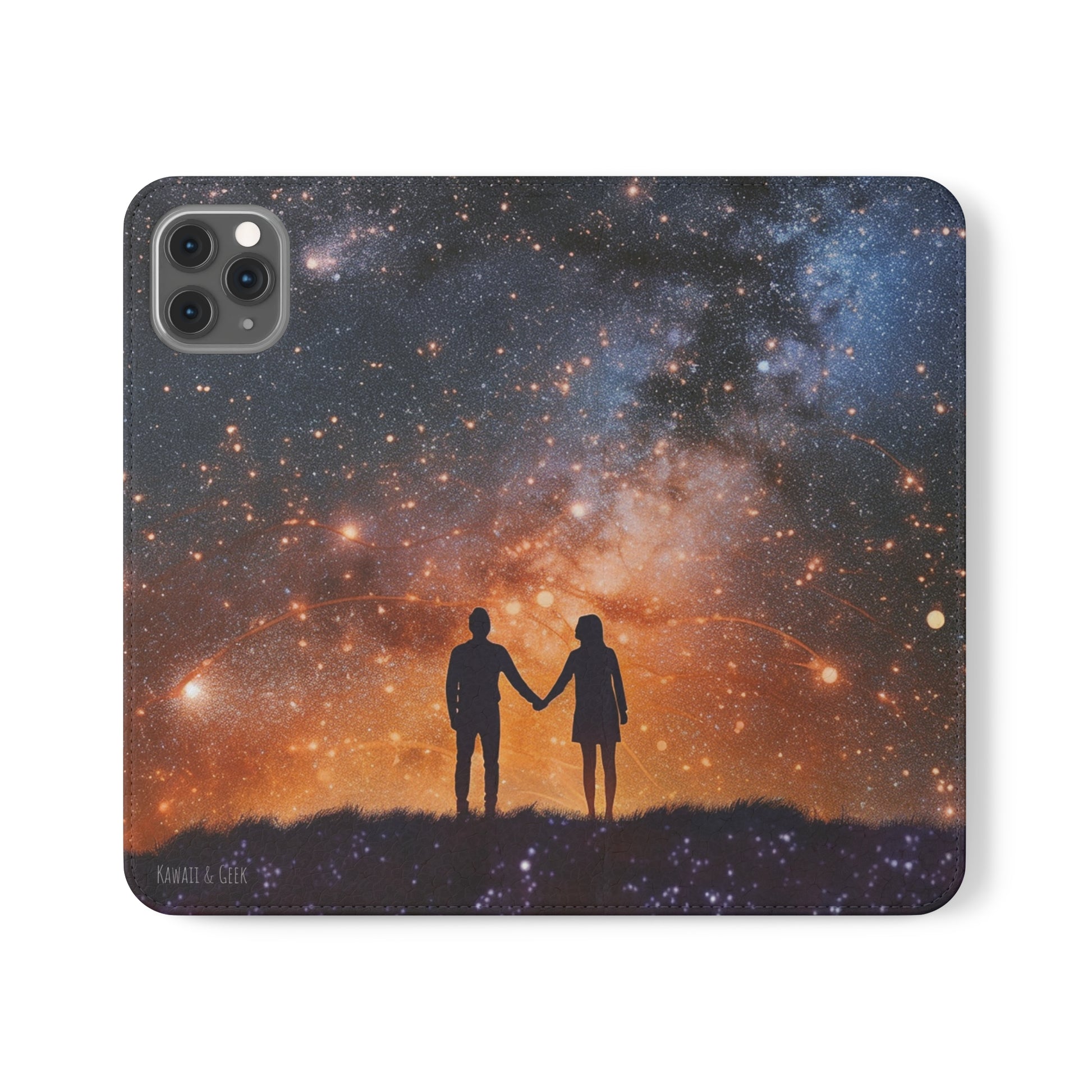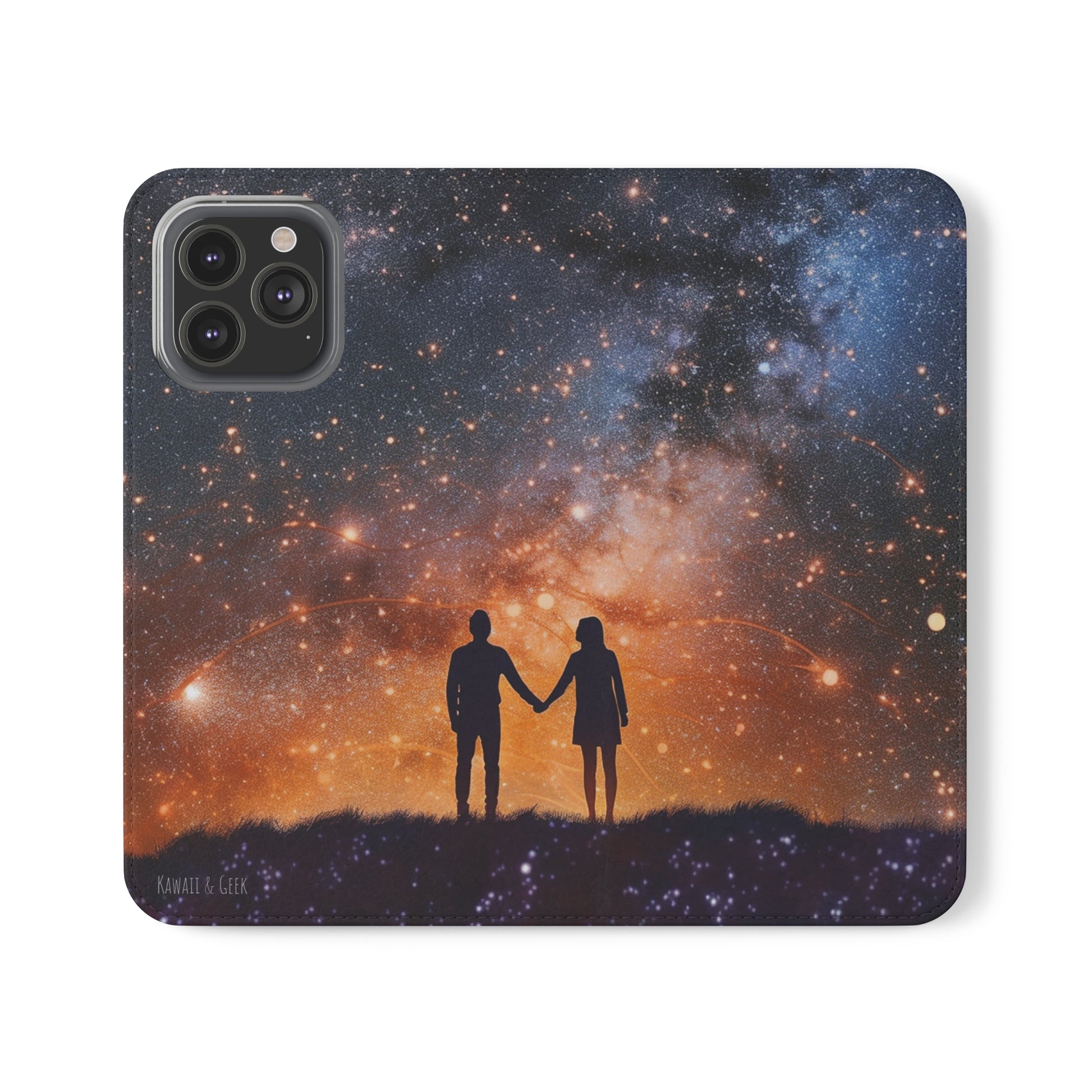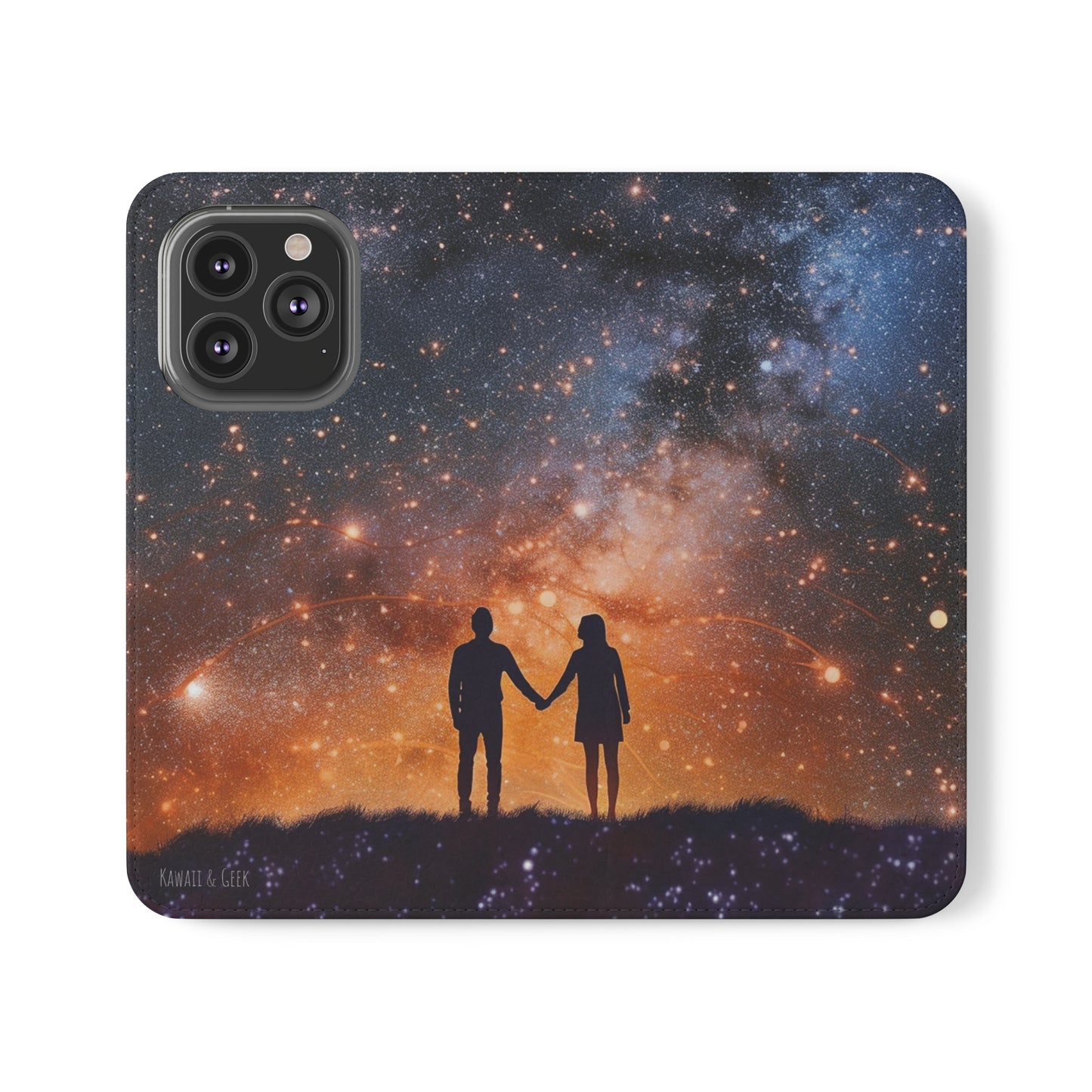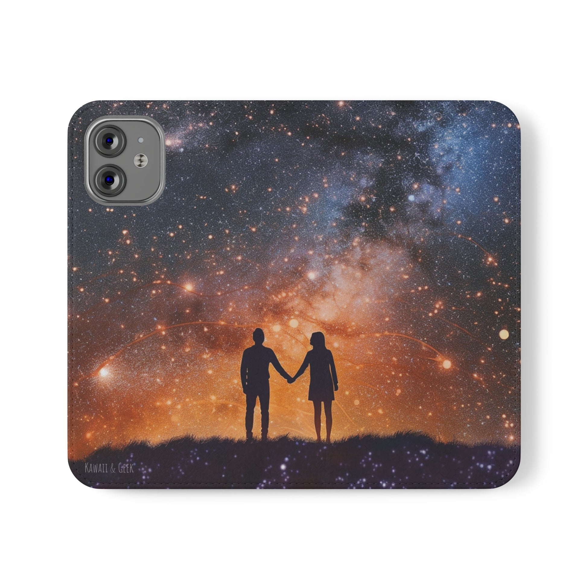 Starry Night Lovers Flip Phone Case - Embrace the Beauty of the Night Sky