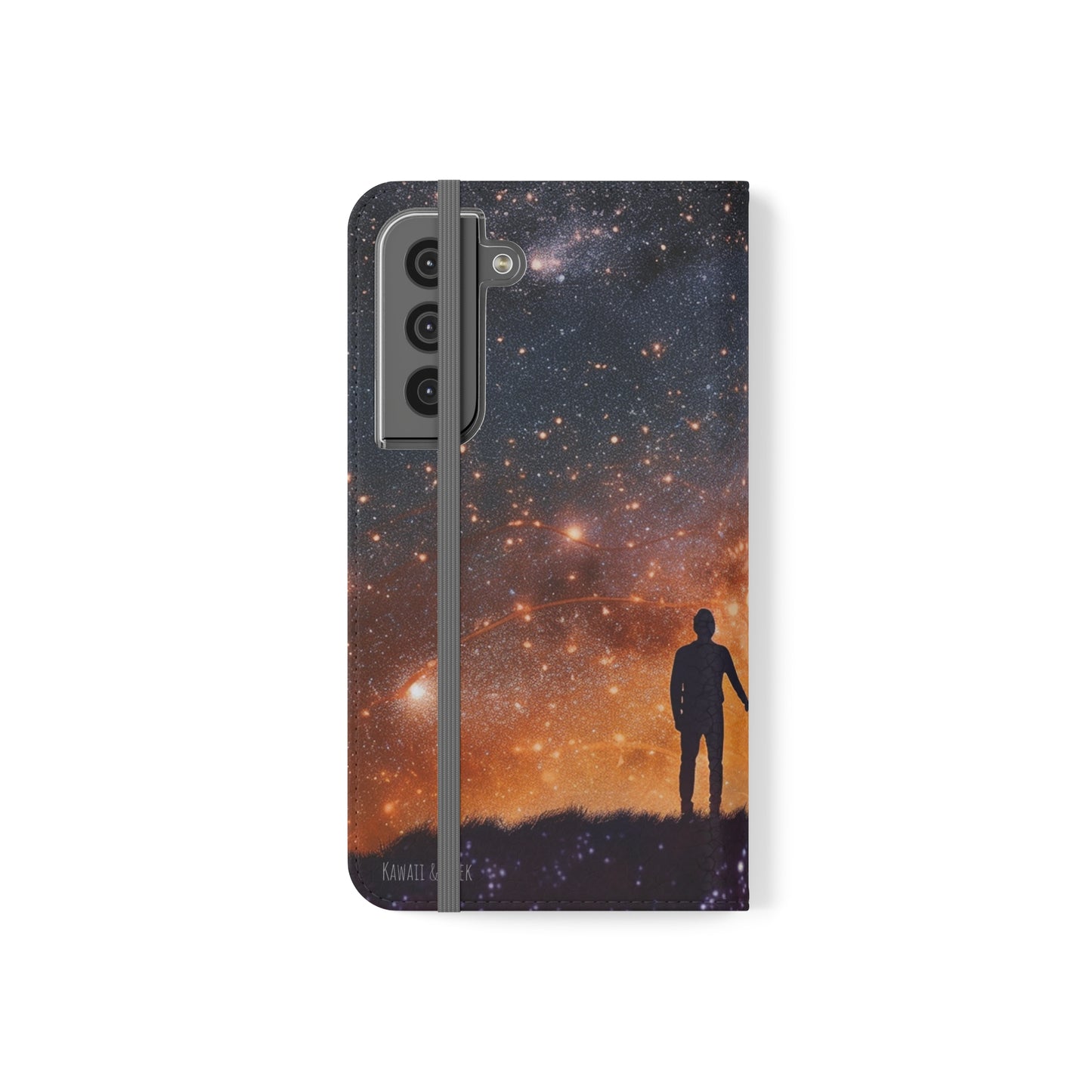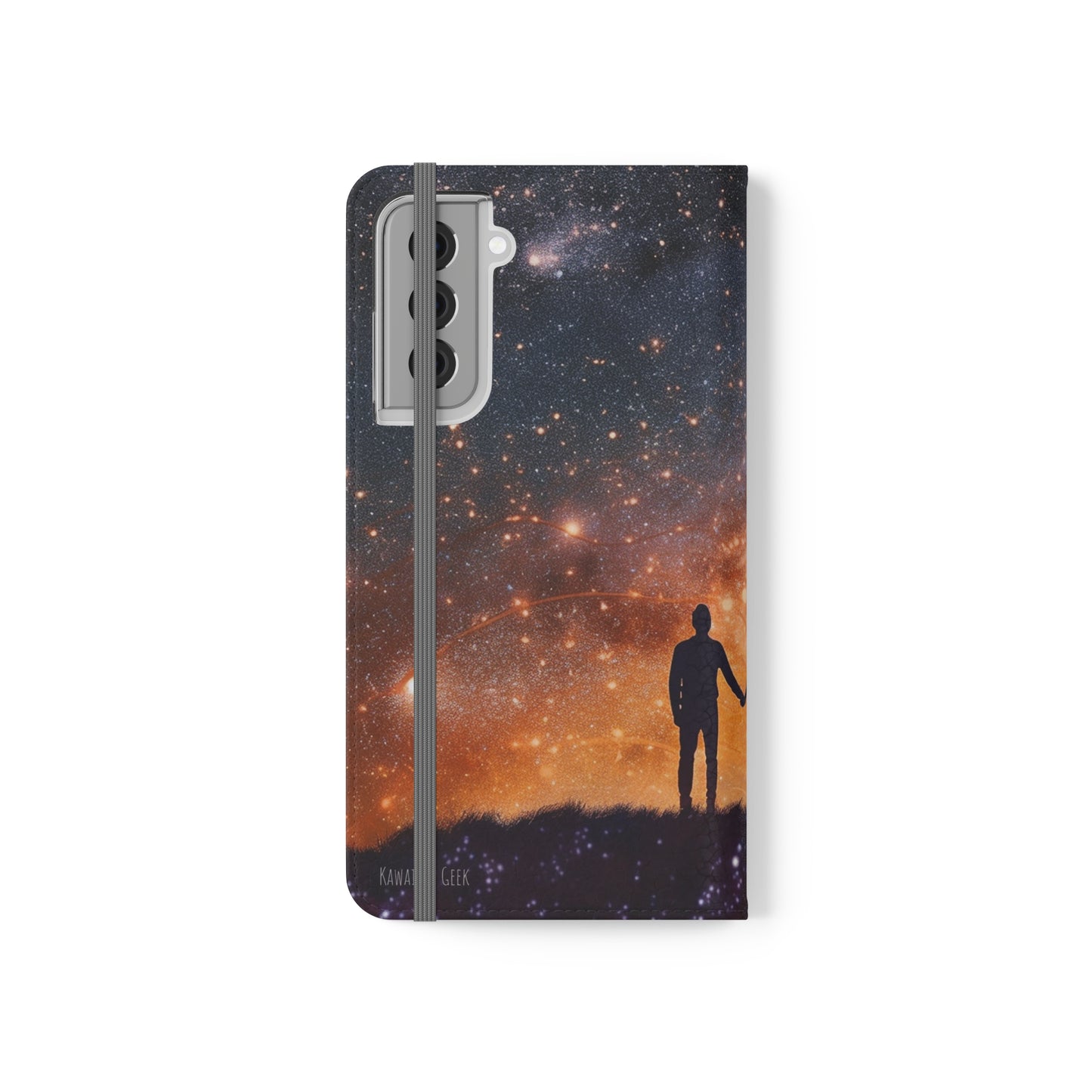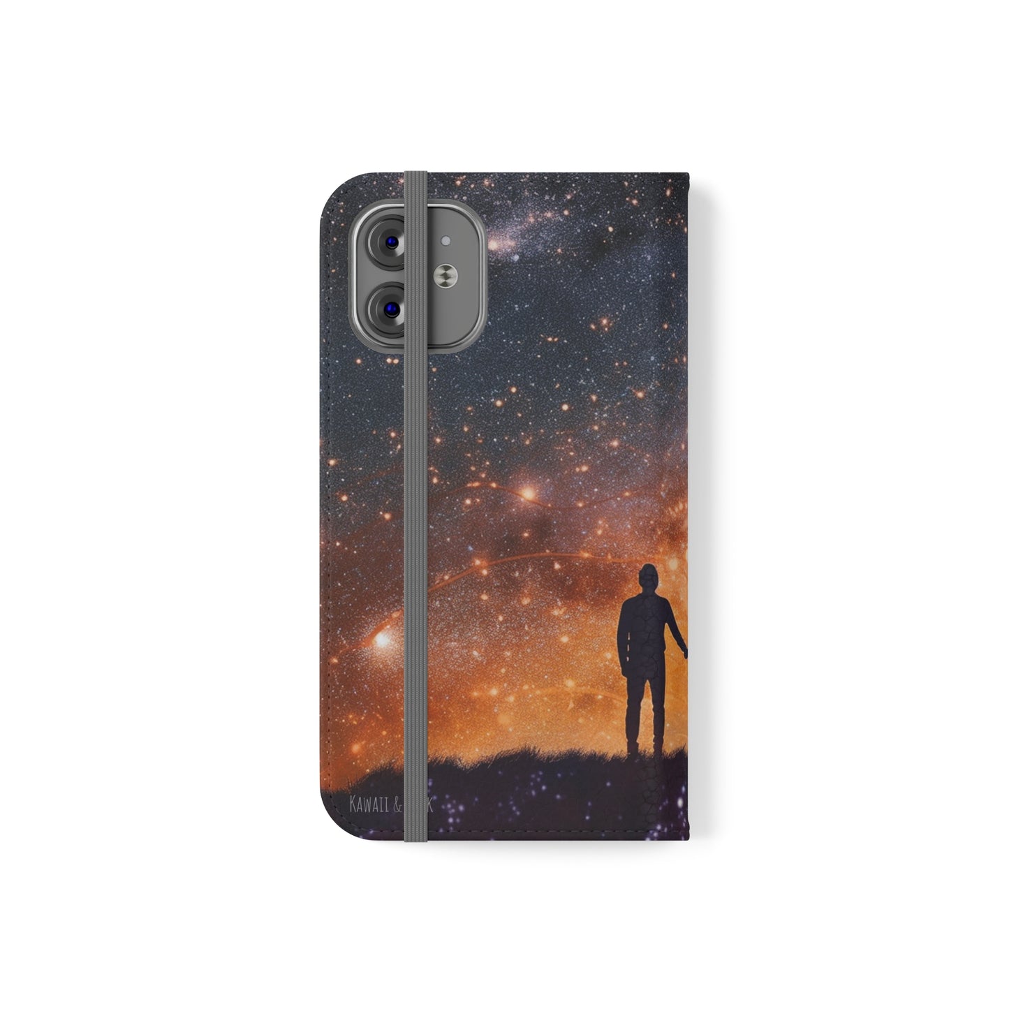 Our flip cases (also known as folio cases) are made from faux leather, that's excellent for printing our original designs in vibrant colors. Each case serves as a protective layer and a phone stand. They feature a flat, elastic fastening to keep them closed and stitched inside pockets to store cards and cash storage easily. The polycarbonate inner shell keeps devices secure during regular wear and tear.