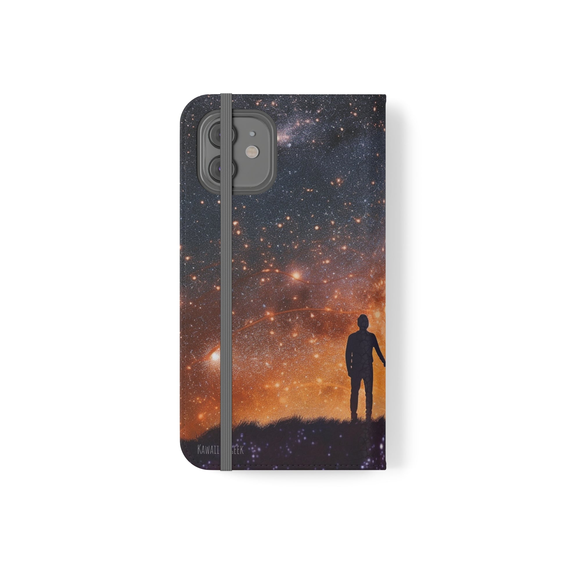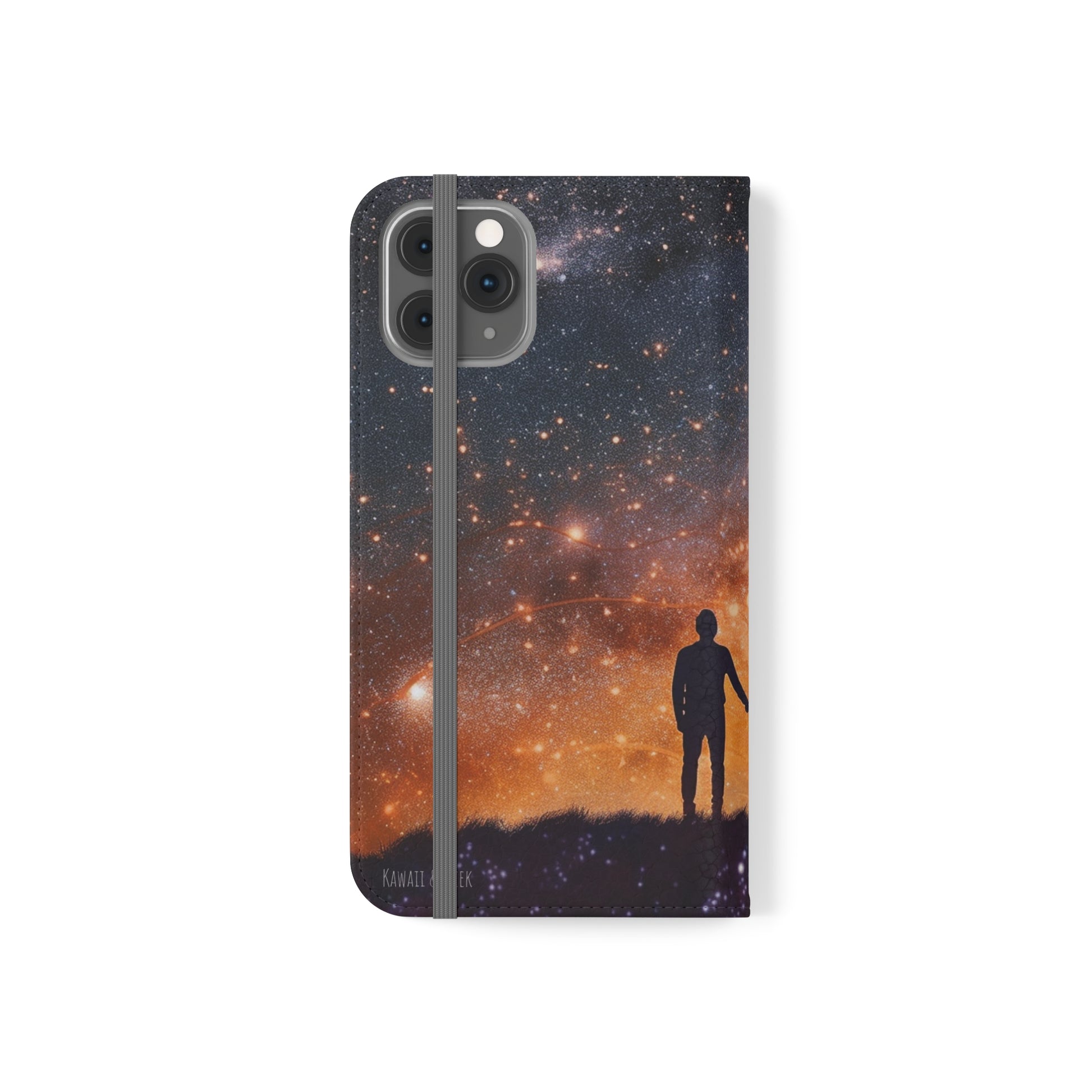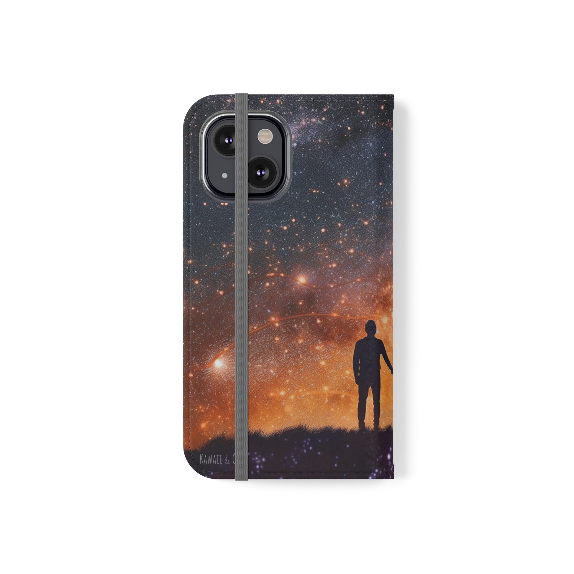Our flip cases (also known as folio cases) are made from faux leather, that's excellent for printing our original designs in vibrant colors. Each case serves as a protective layer and a phone stand. They feature a flat, elastic fastening to keep them closed and stitched inside pockets to store cards and cash storage easily. The polycarbonate inner shell keeps devices secure during regular wear and tear.
