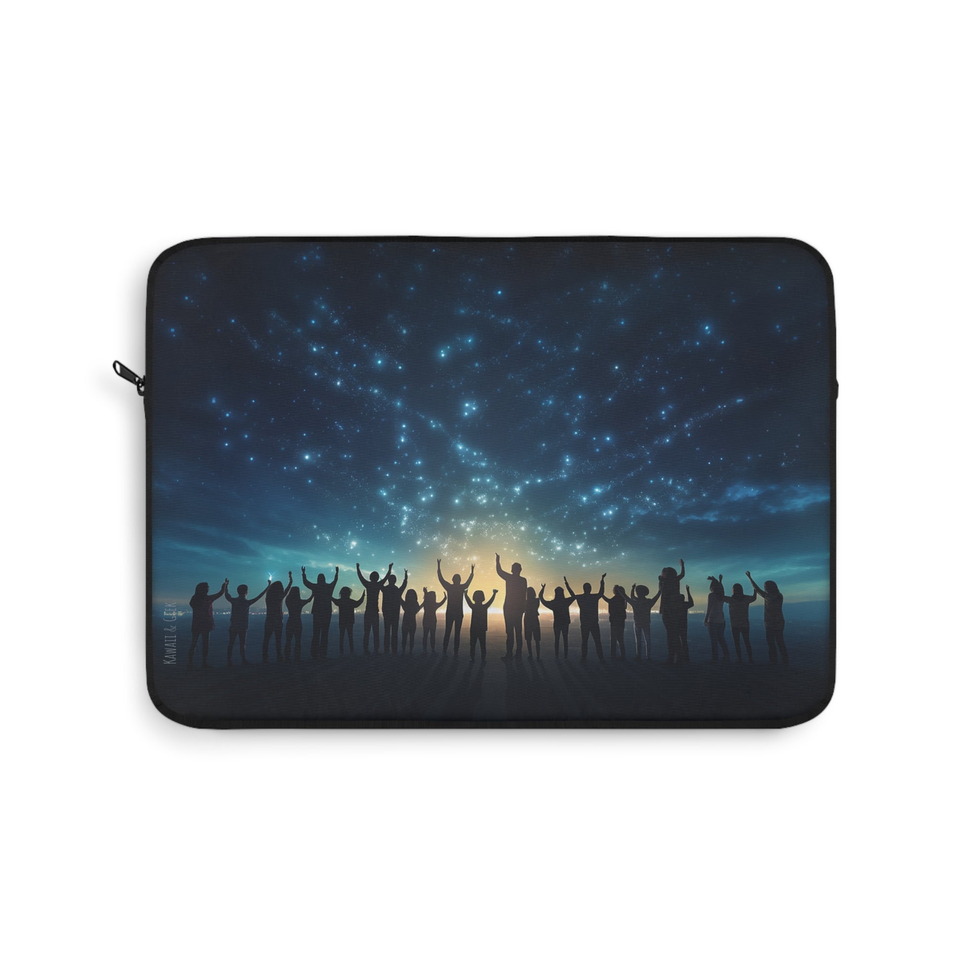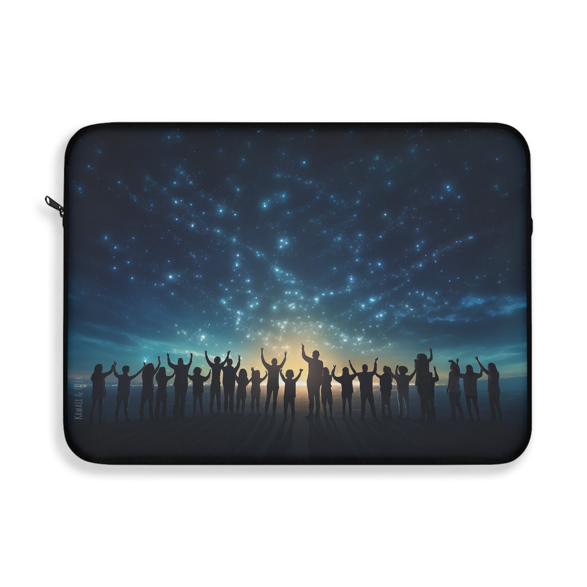 Keywords: Night Sky Sleeve, Constellations Design, Unity Theme, Premium Laptop Protection, Believe Motif, Starry Protective Case, 13-inch Laptop, 15-inch Laptop, Dream Together, Group Silhouette, Tech Accessory, Celestial Theme, Collective Strength.