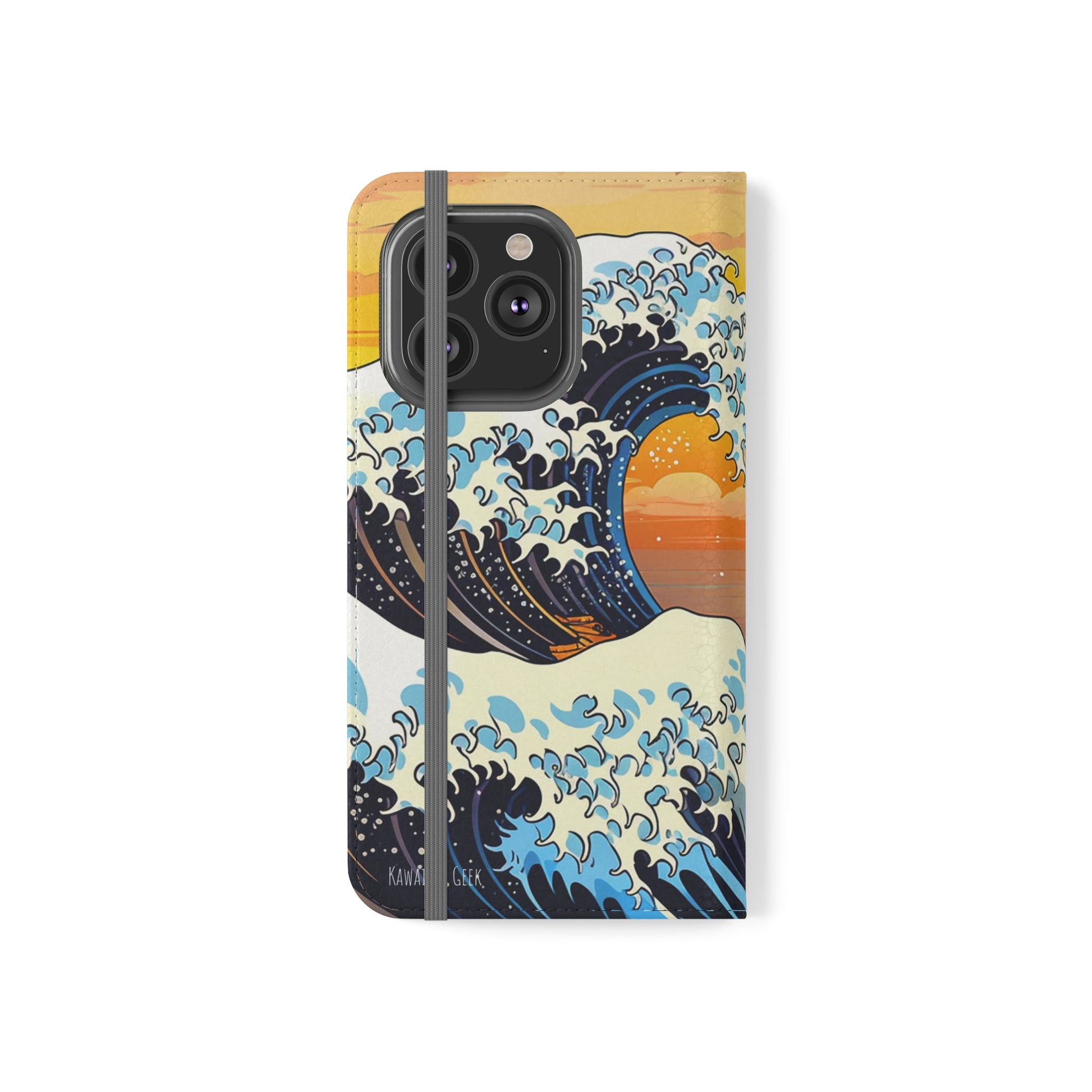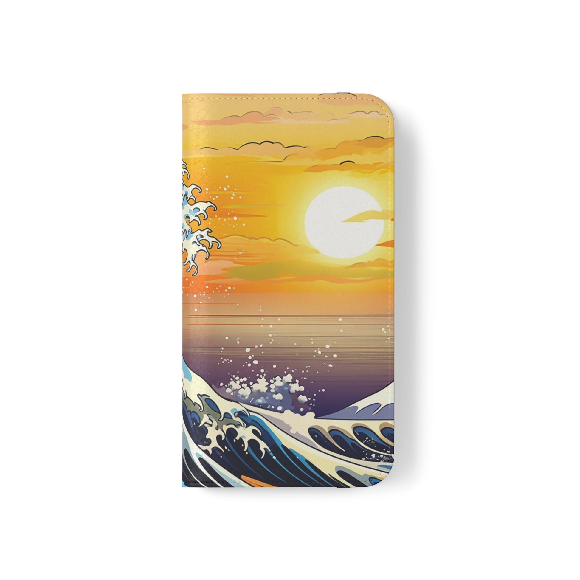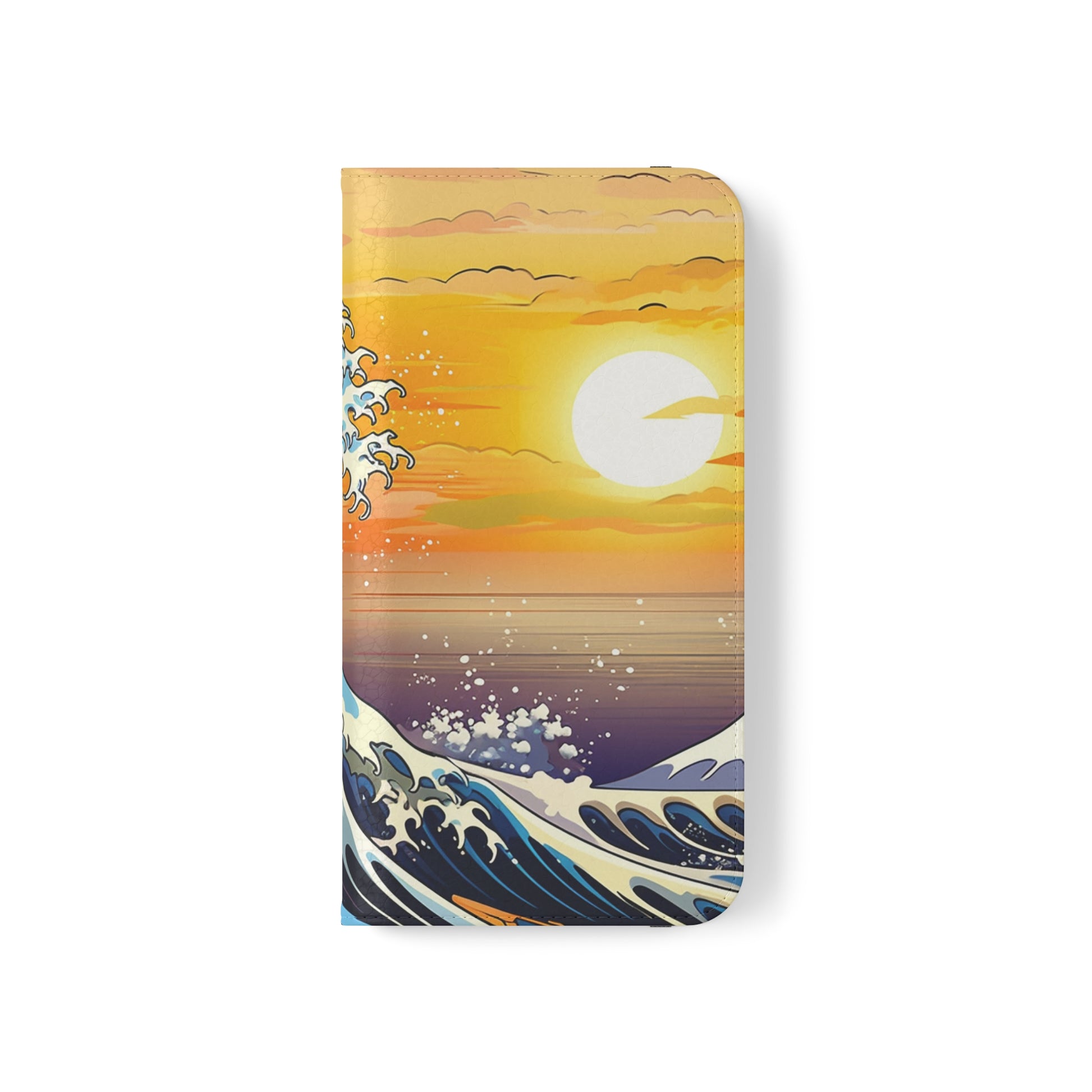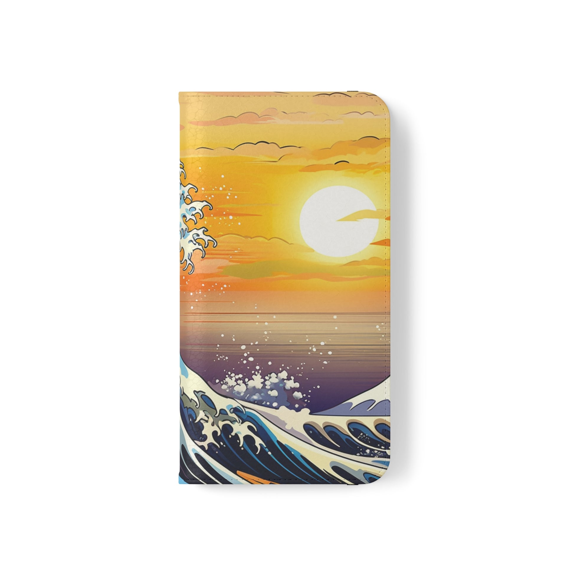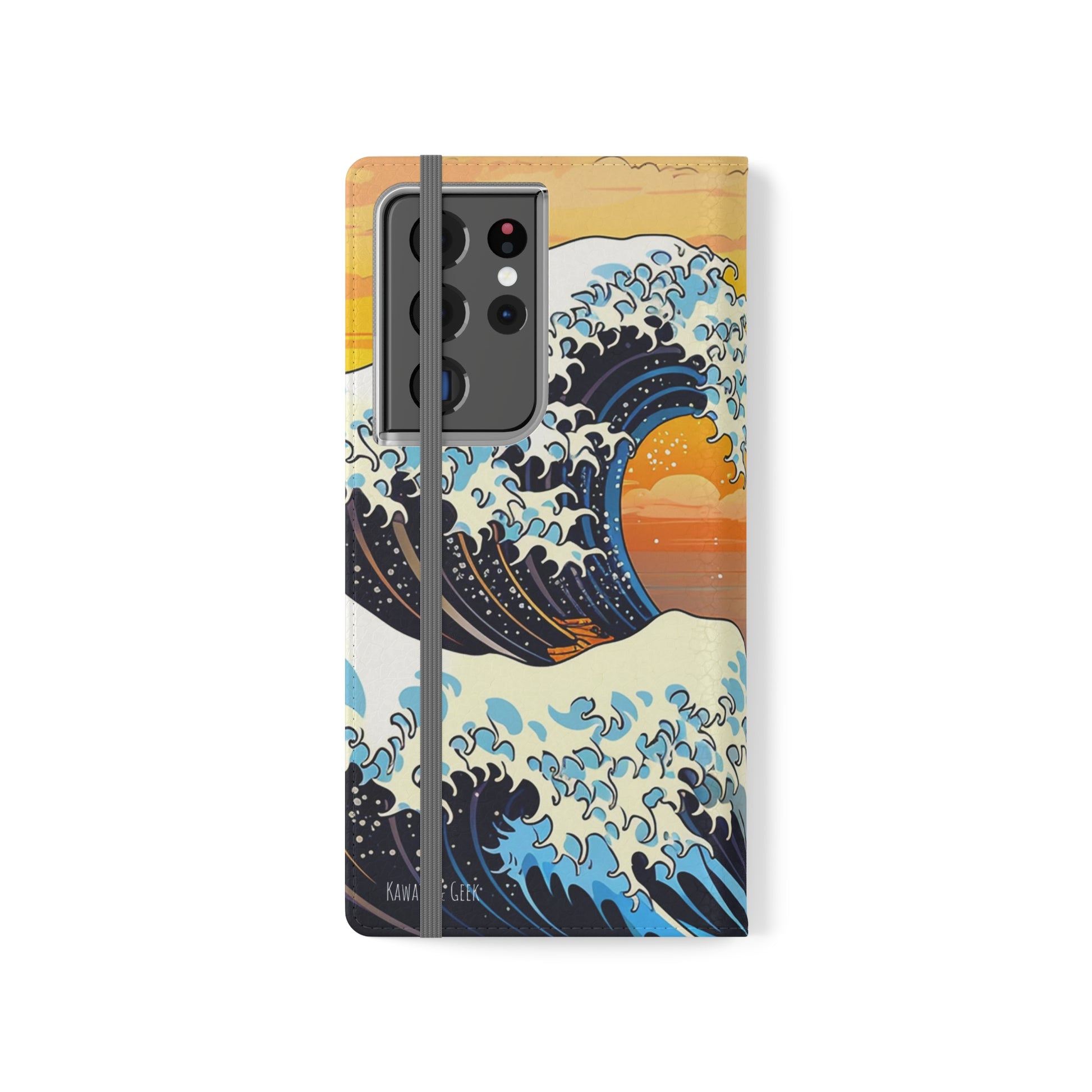 Sunset Big Wave Flip Phone Case - Embrace the Majestic Hokusai Style in Your Hands