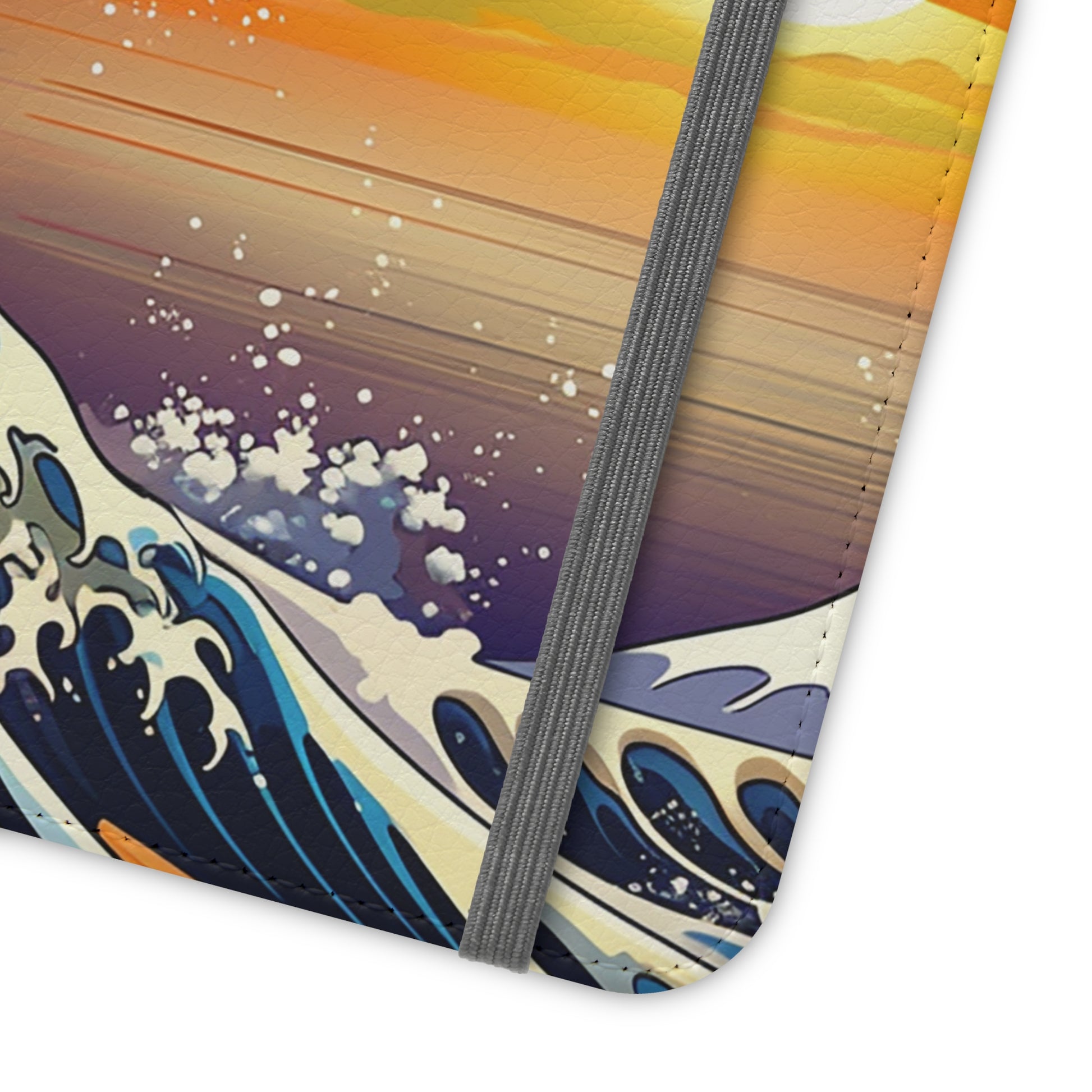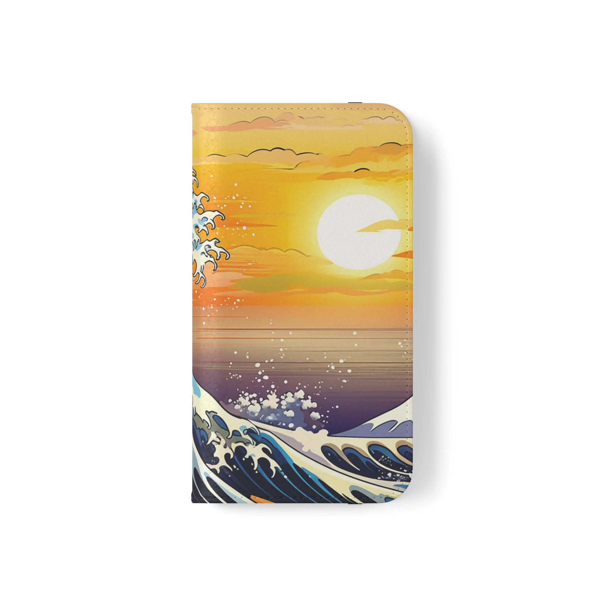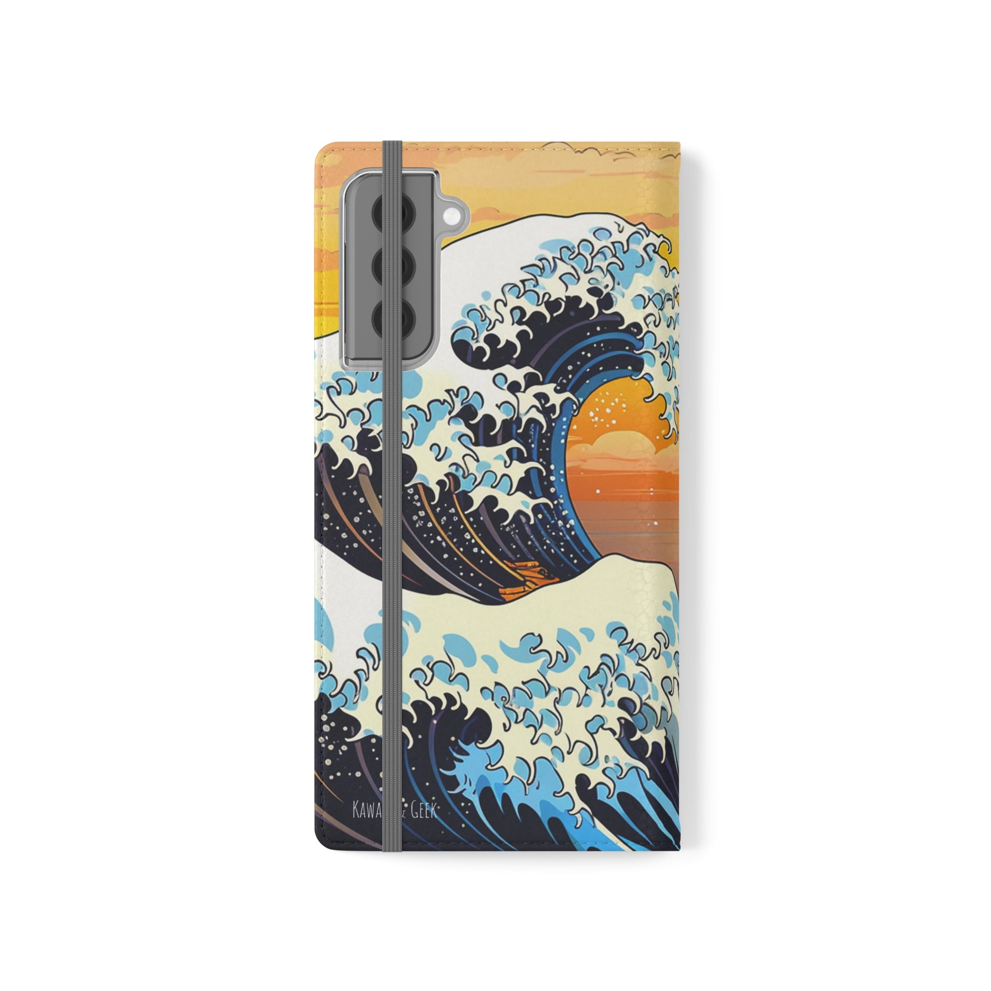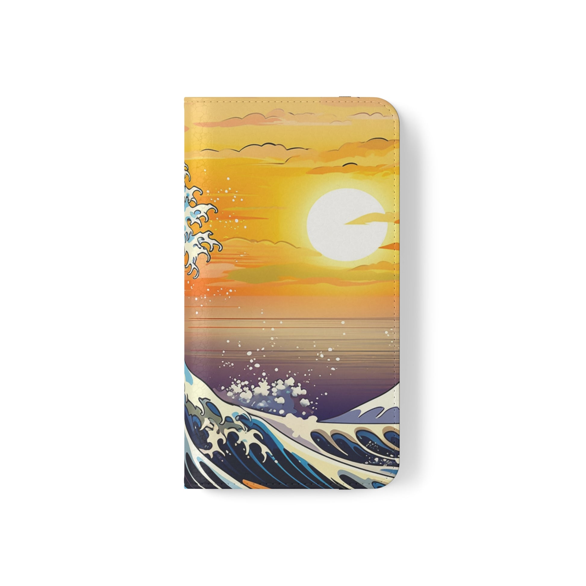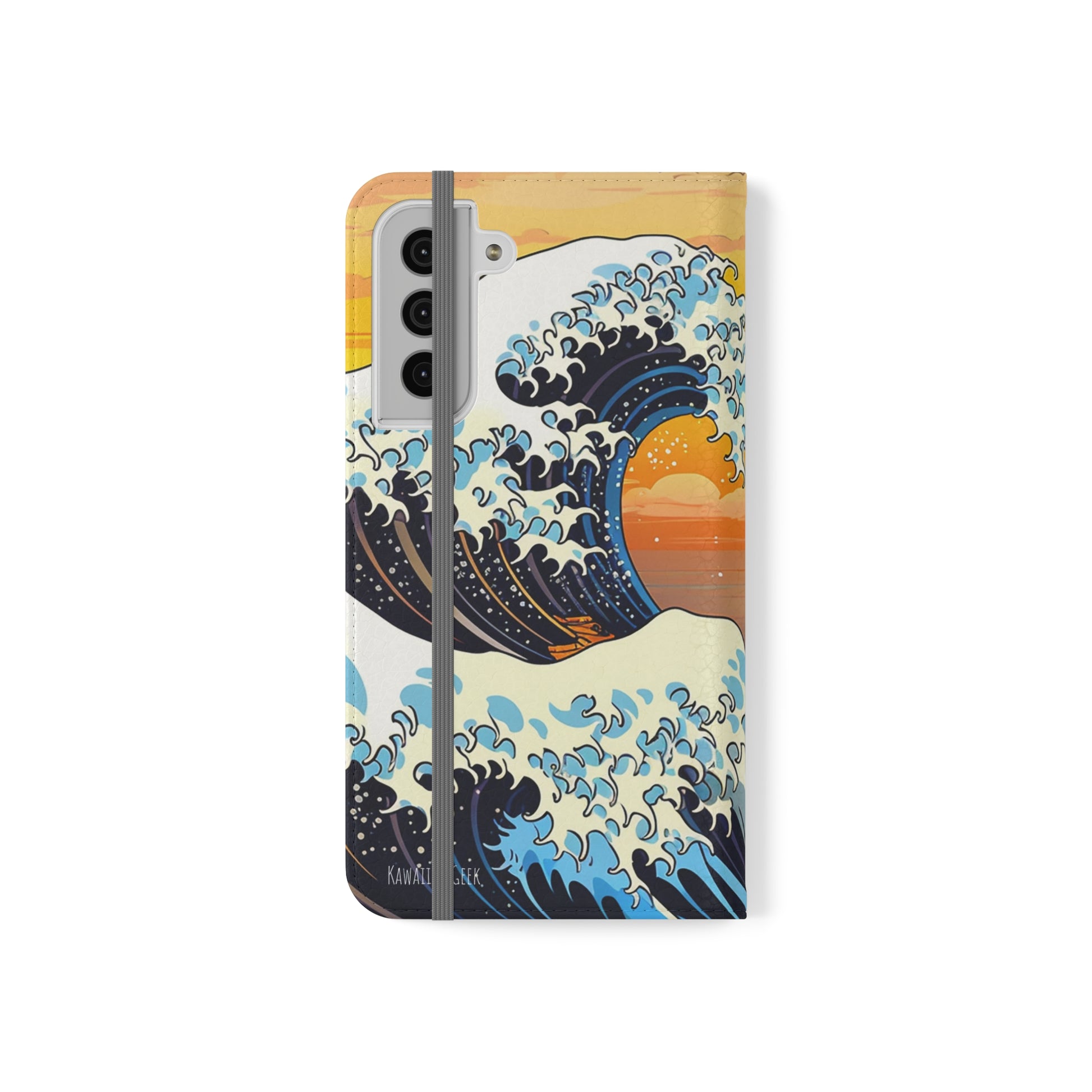 Sunset Big Wave Flip Phone Case - Embrace the Majestic Hokusai Style in Your Hands