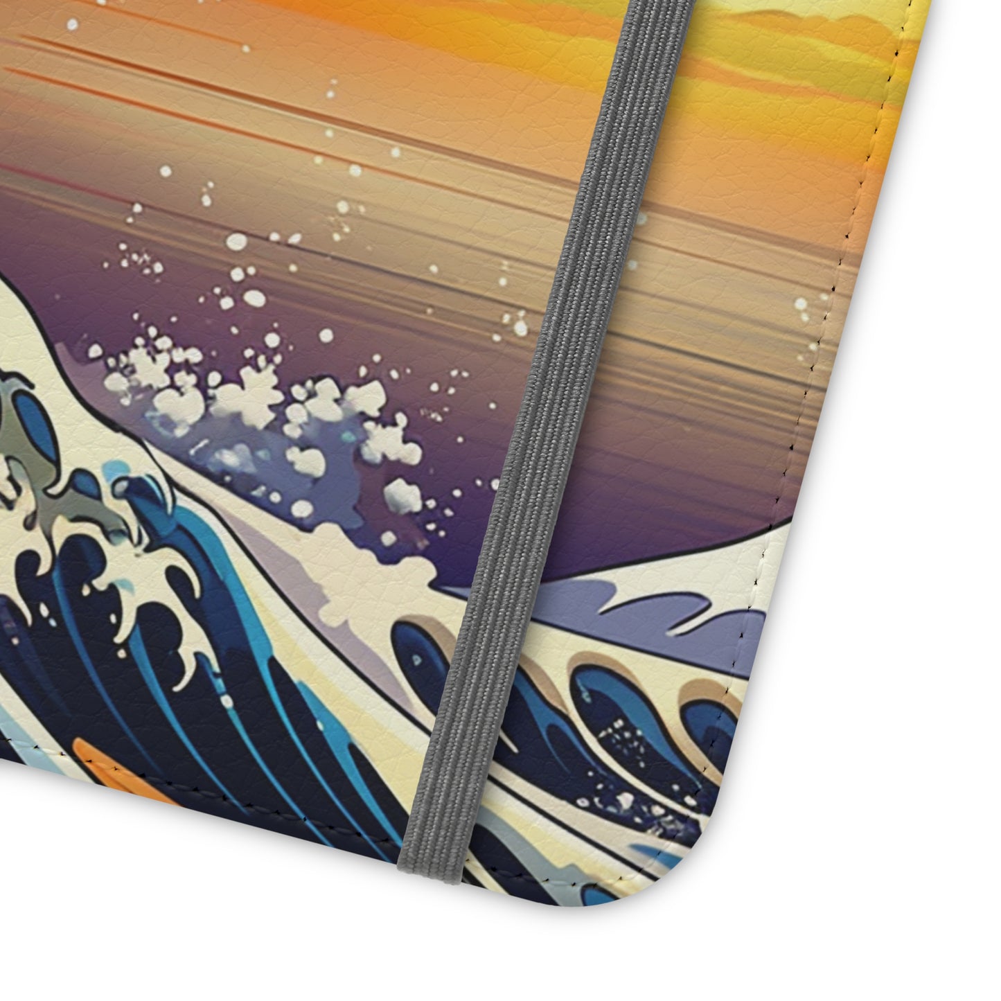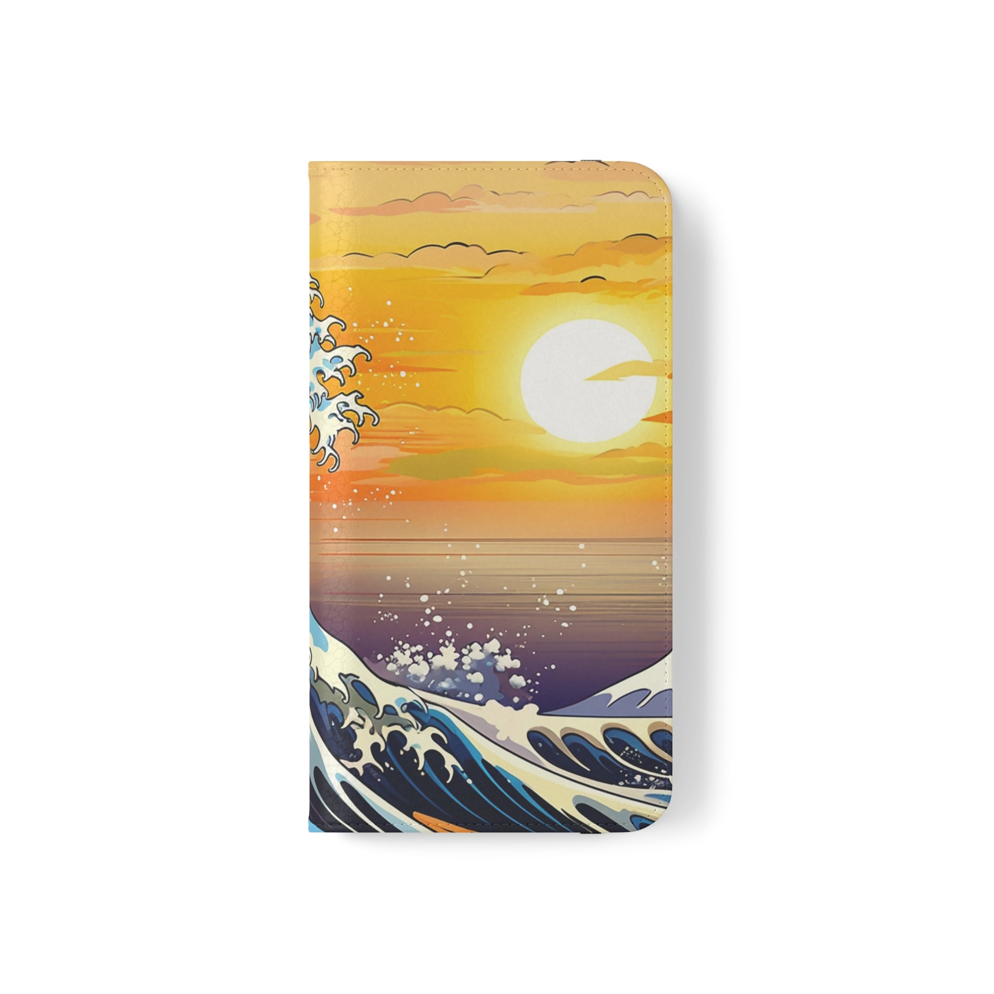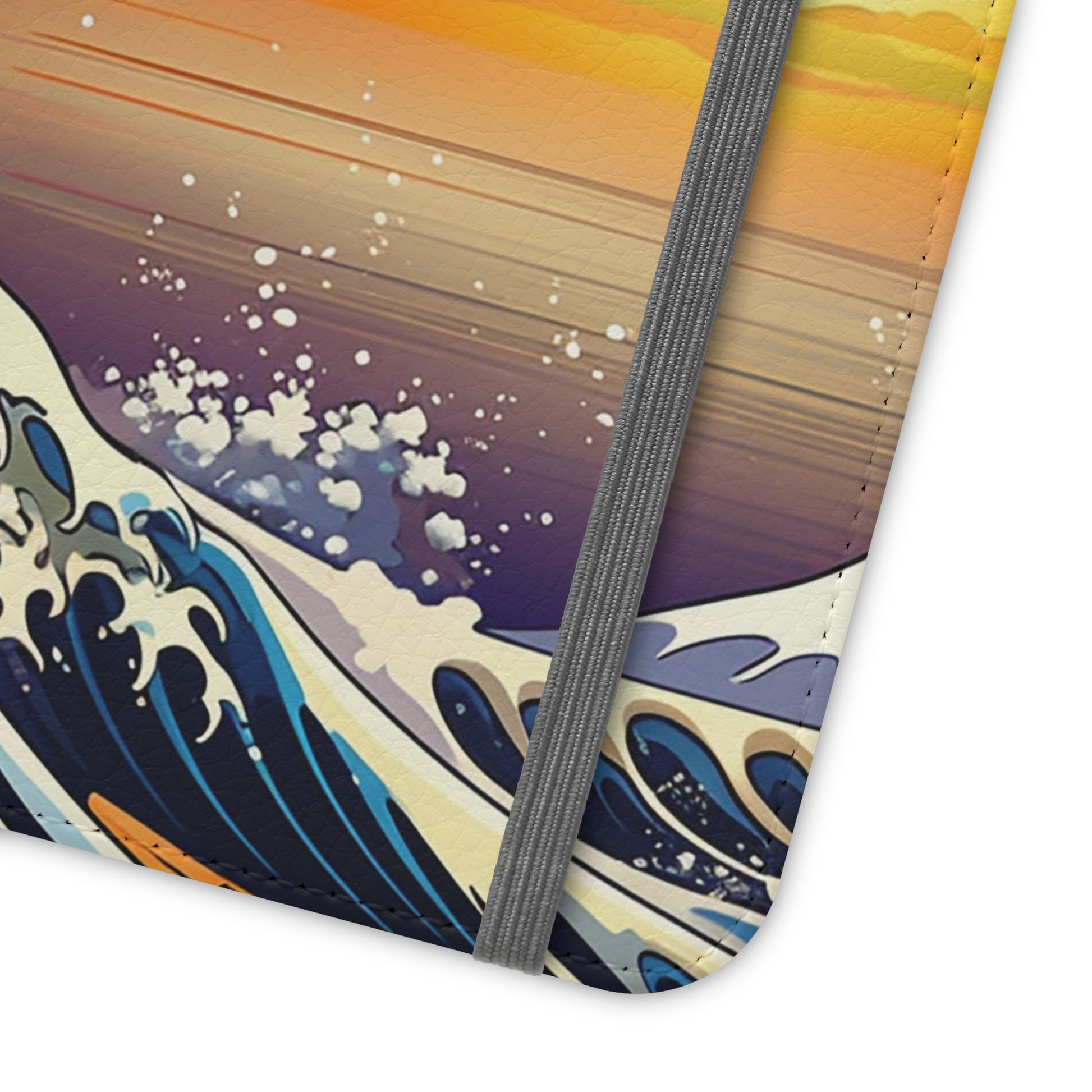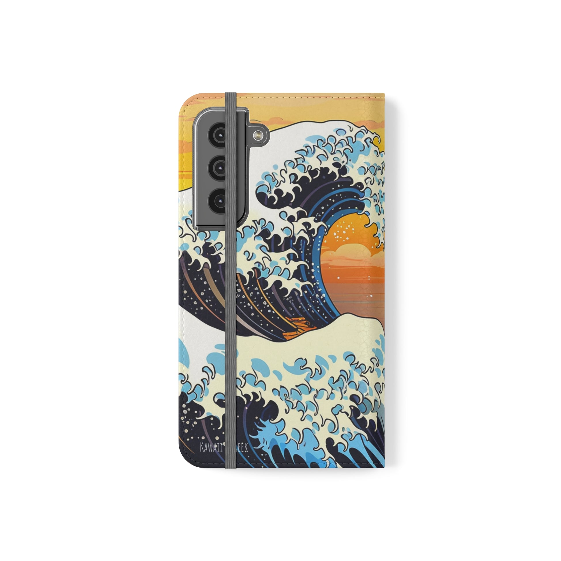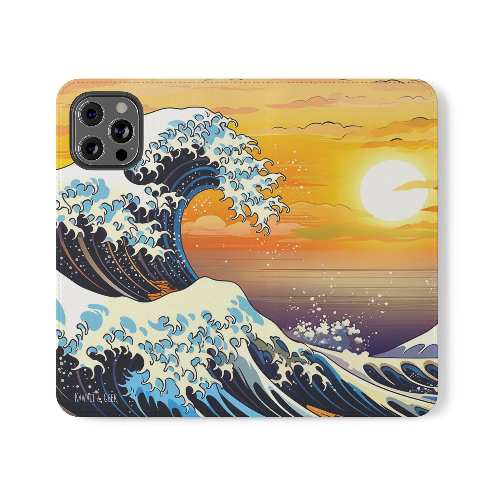 Sunset Big Wave Flip Phone Case - Embrace the Majestic Hokusai Style in Your Hands