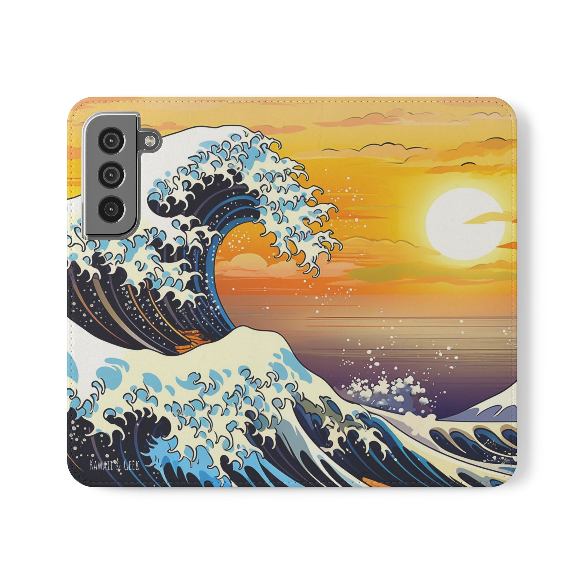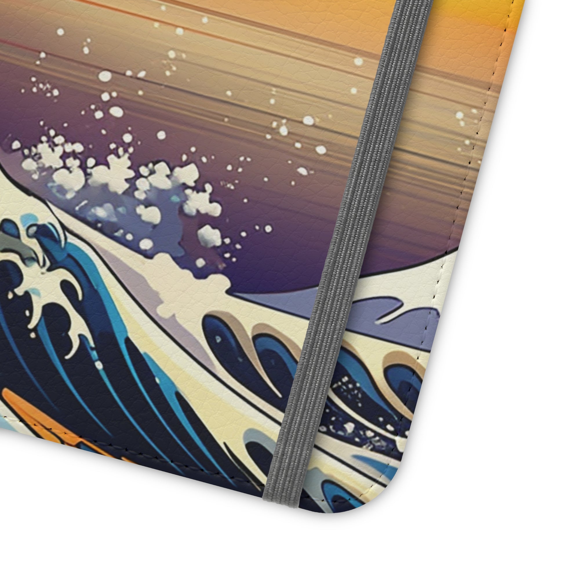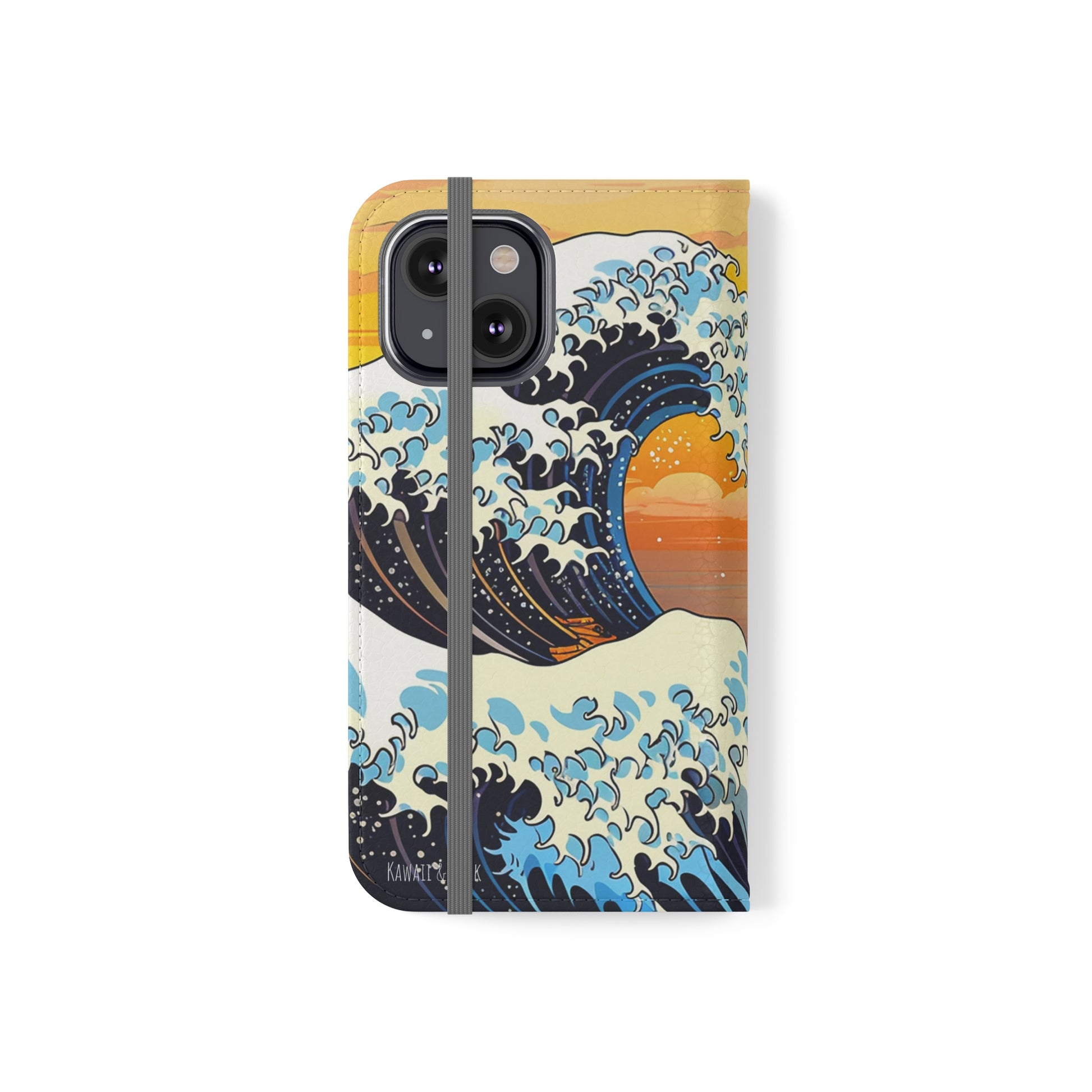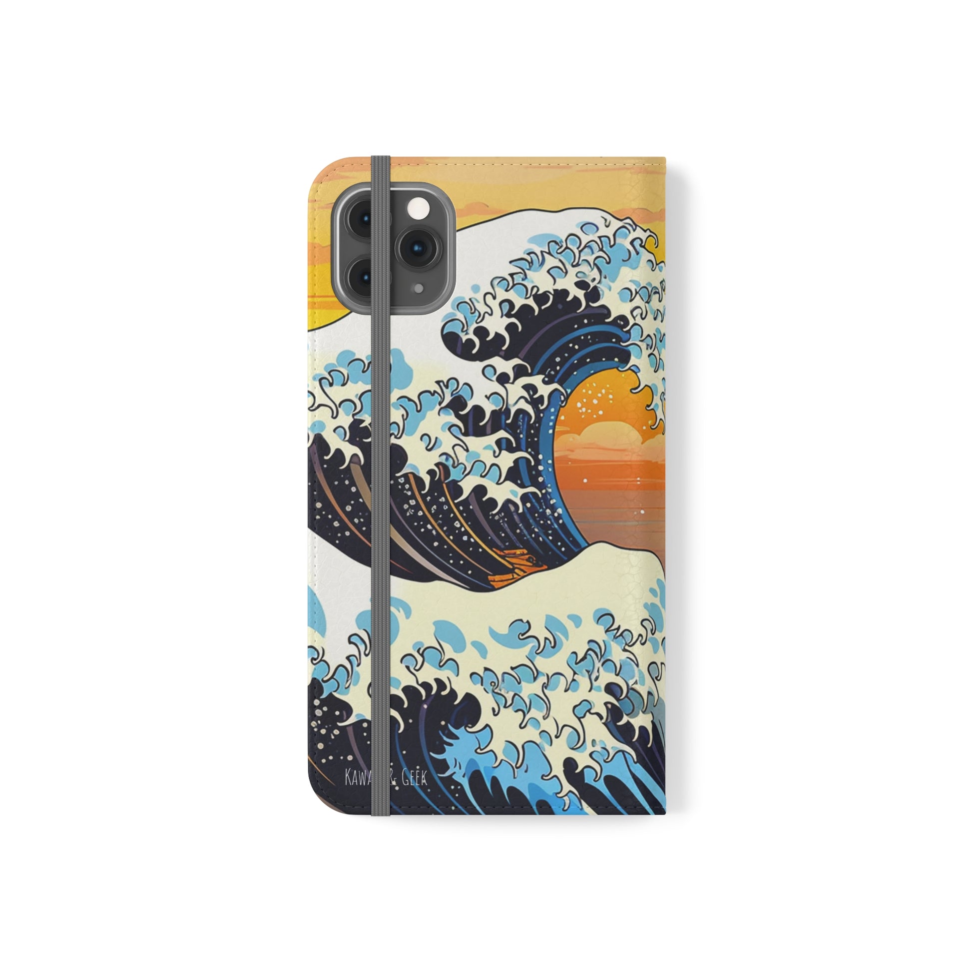 Sunset Big Wave Flip Phone Case - Embrace the Majestic Hokusai Style in Your Hands