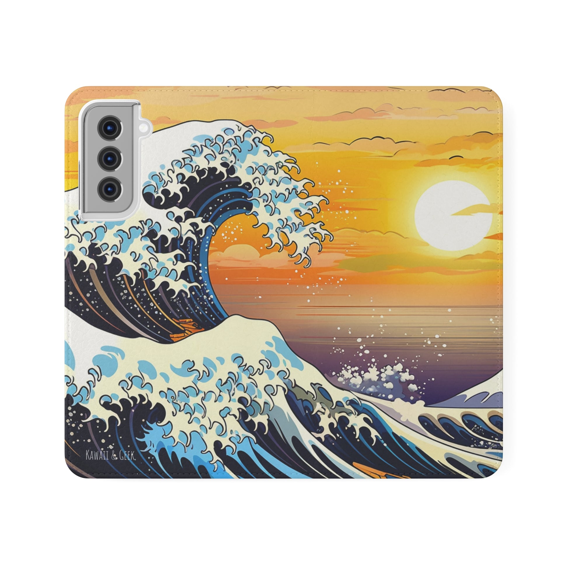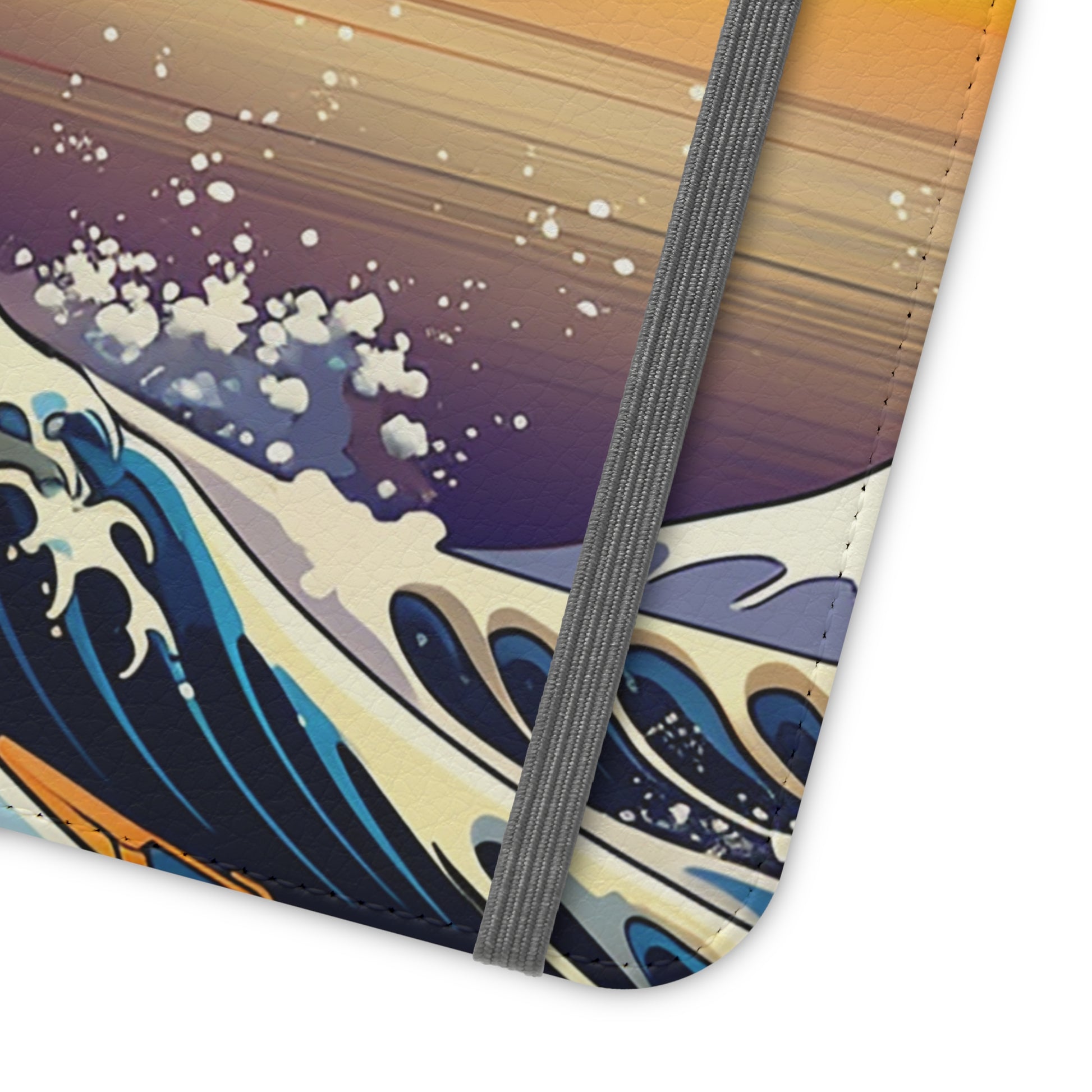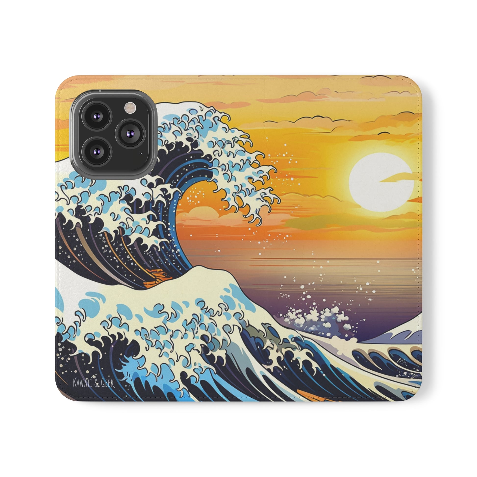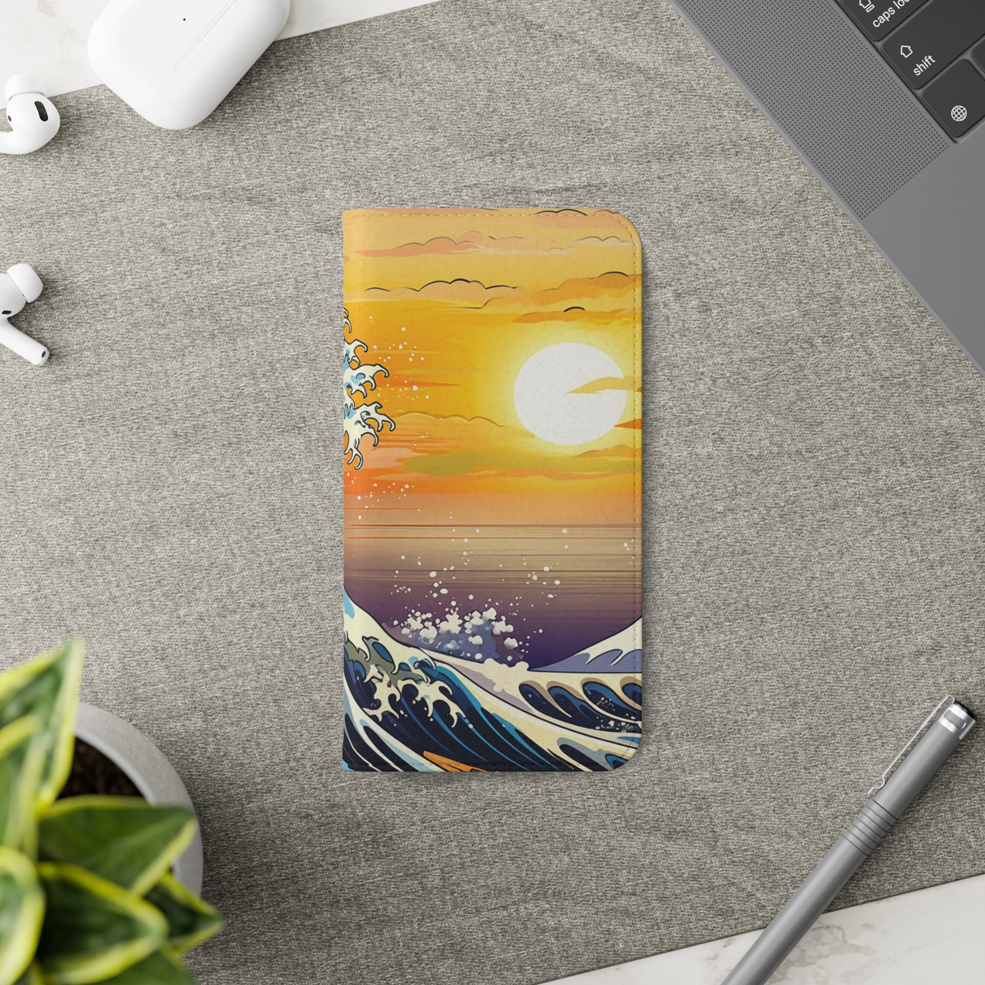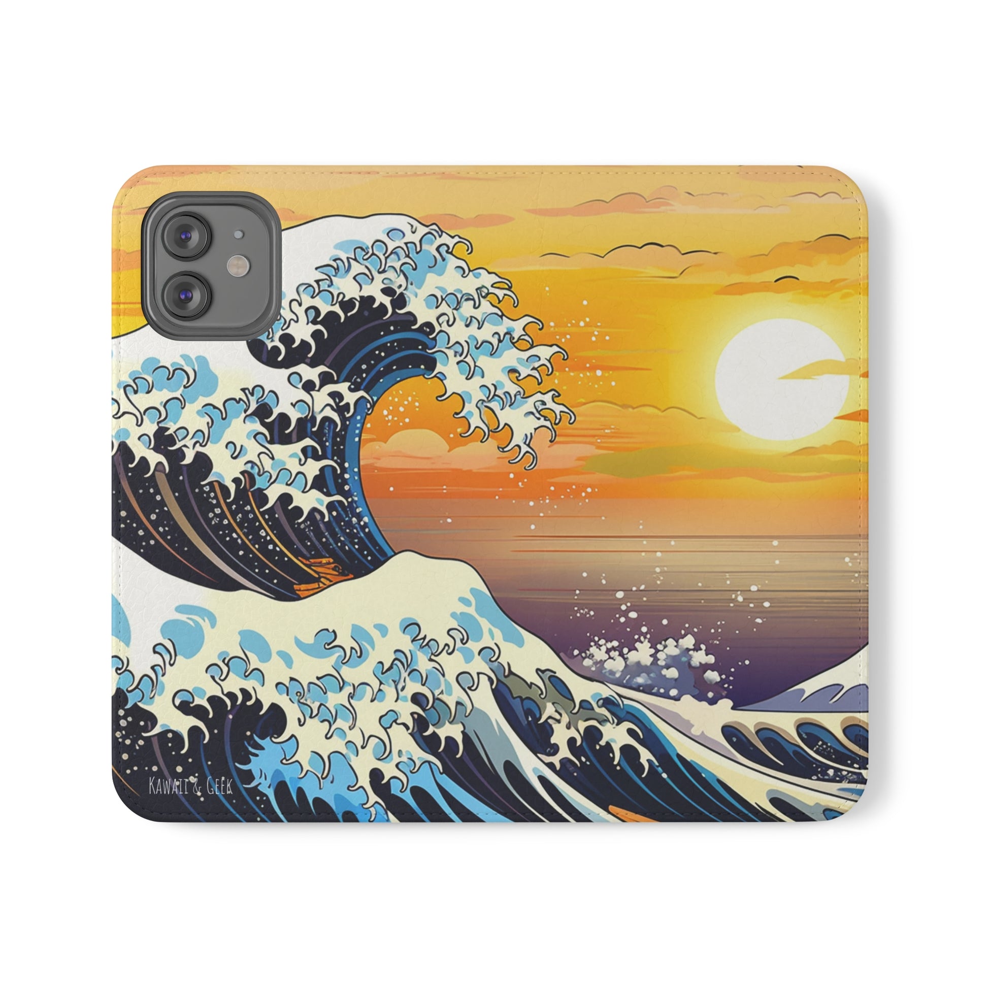 Sunset Big Wave Flip Phone Case - Embrace the Majestic Hokusai Style in Your Hands