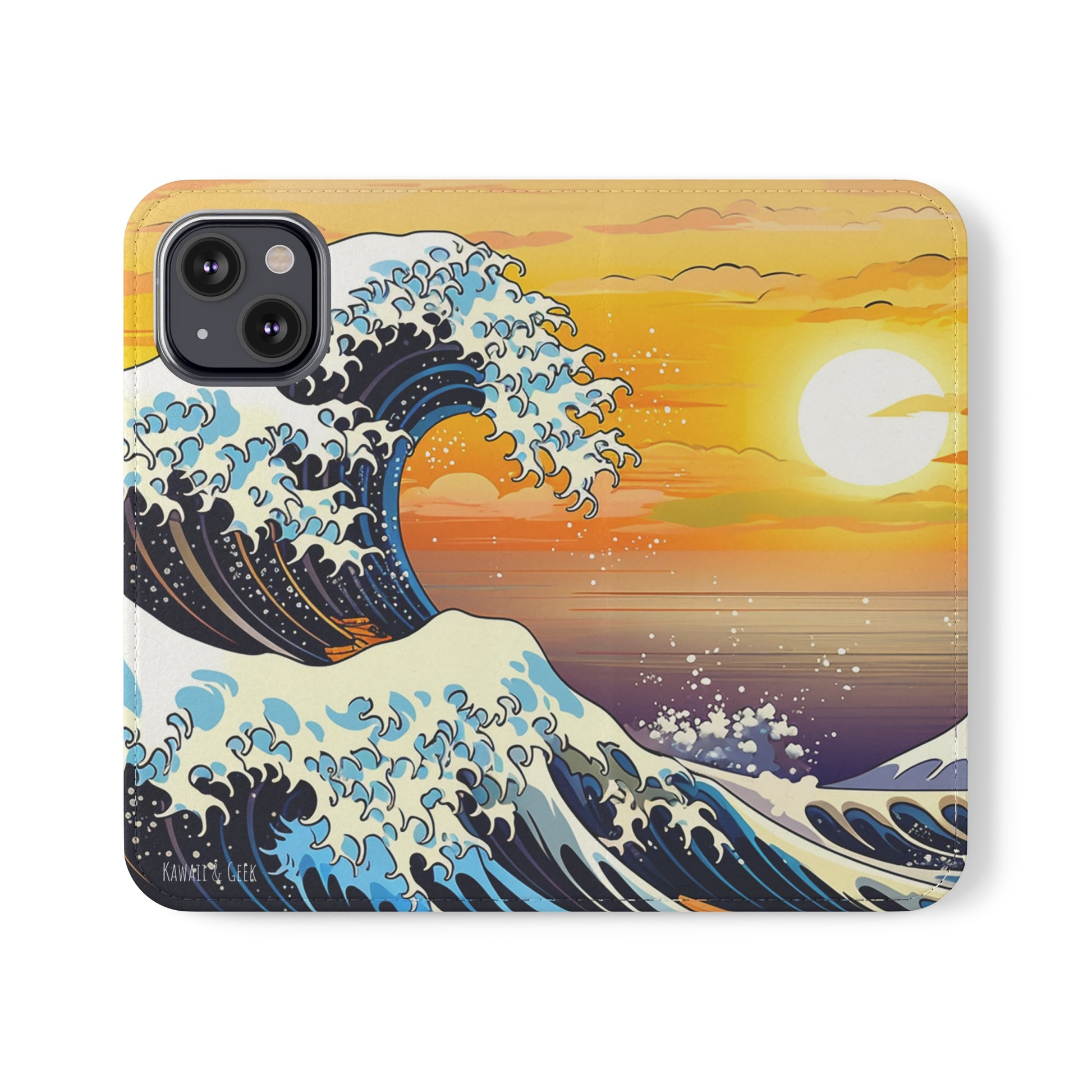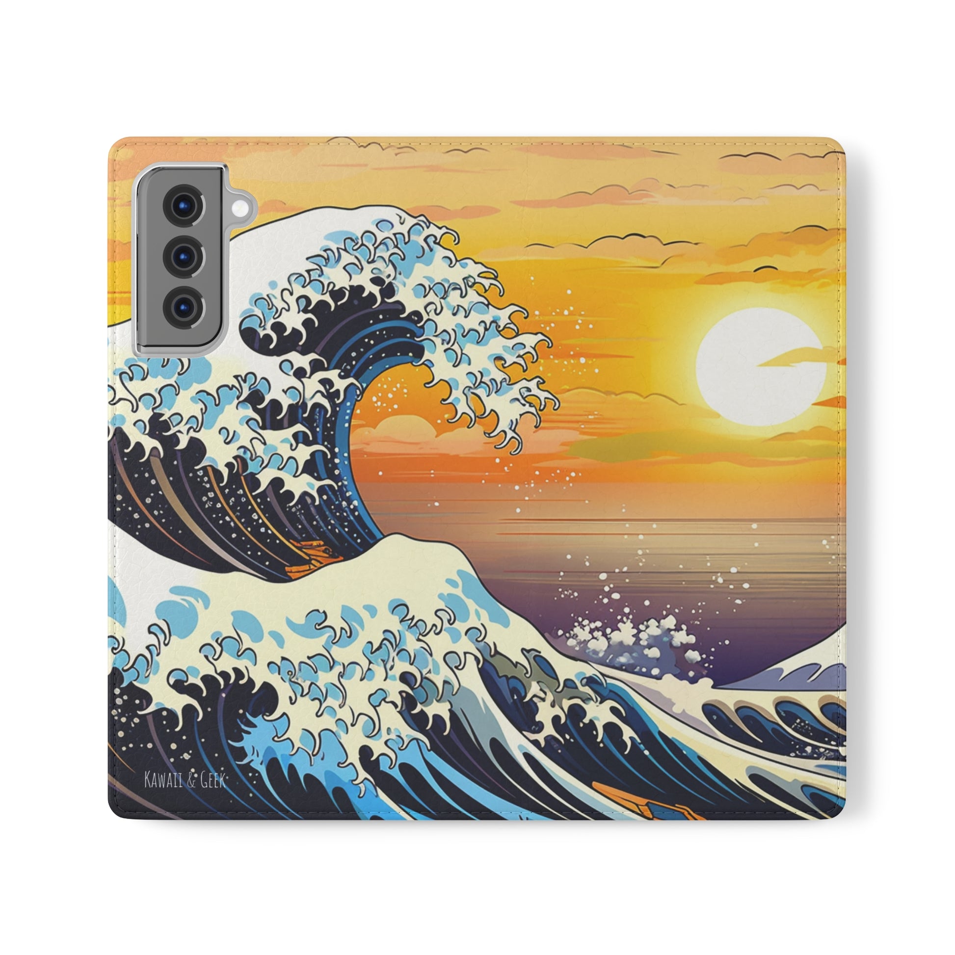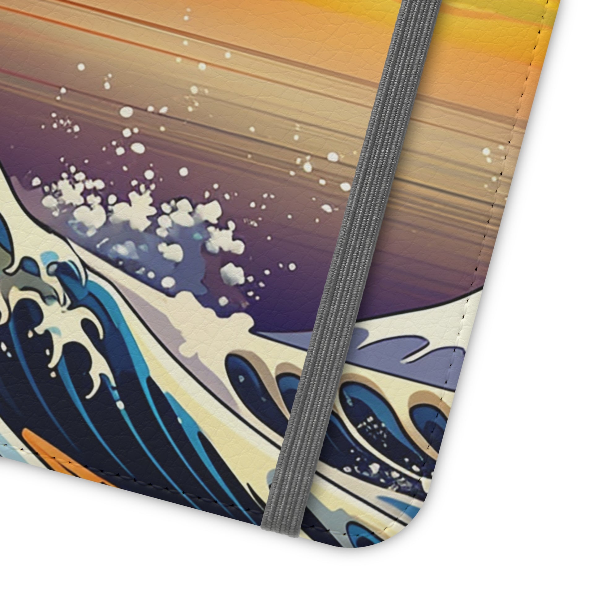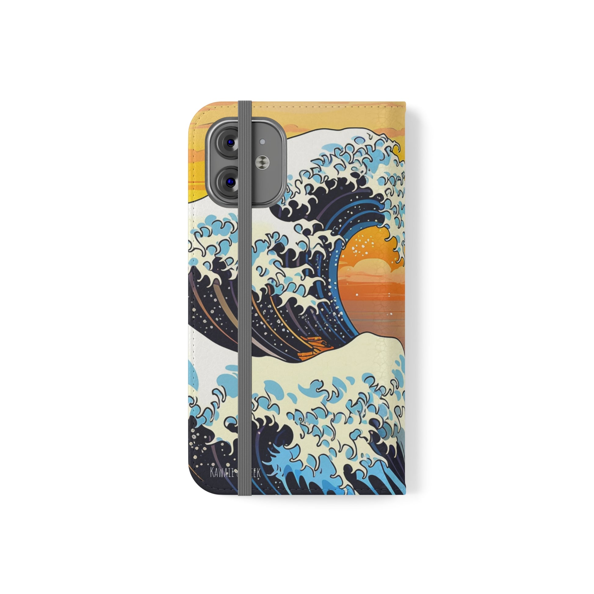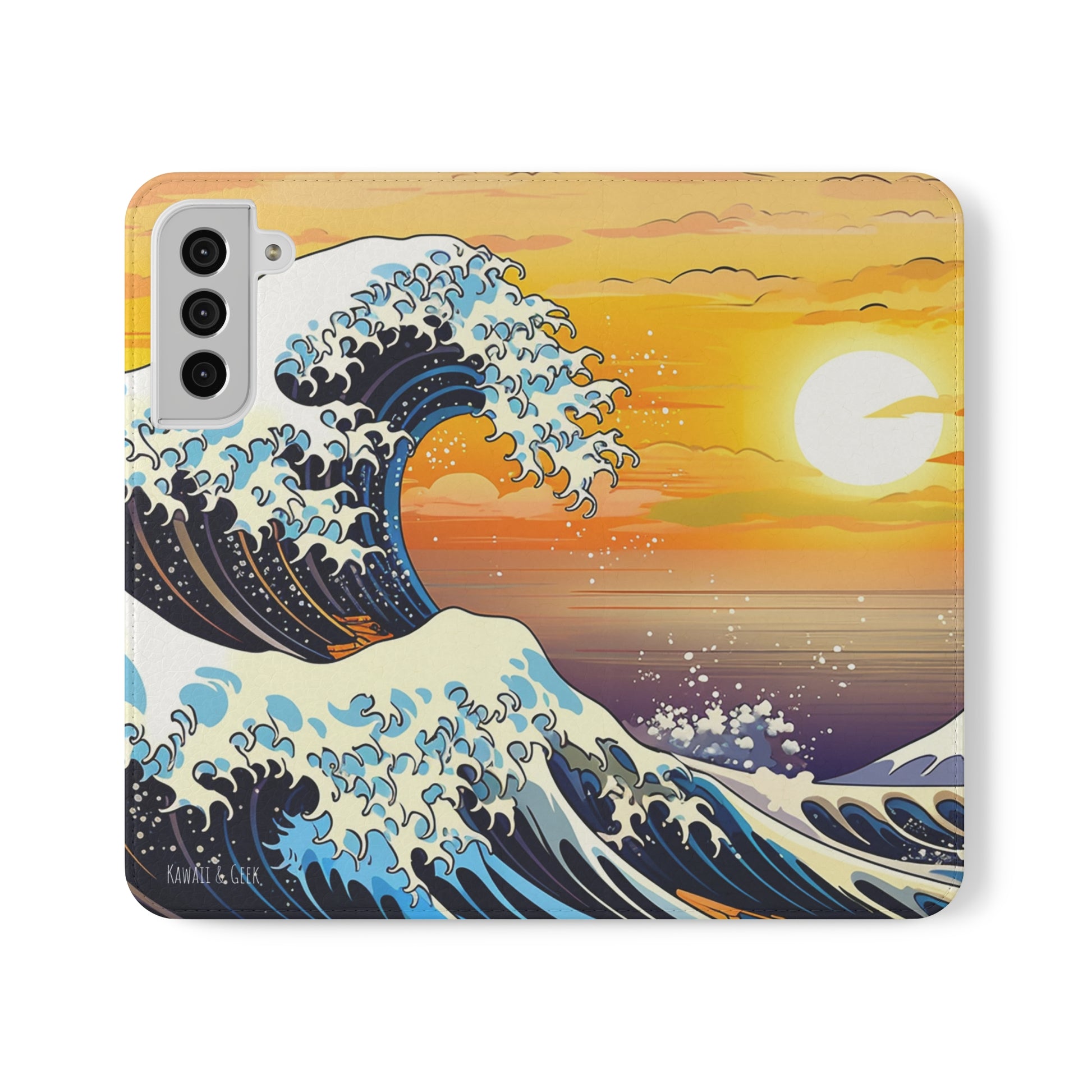Sunset Big Wave Flip Phone Case - Embrace the Majestic Hokusai Style in Your Hands