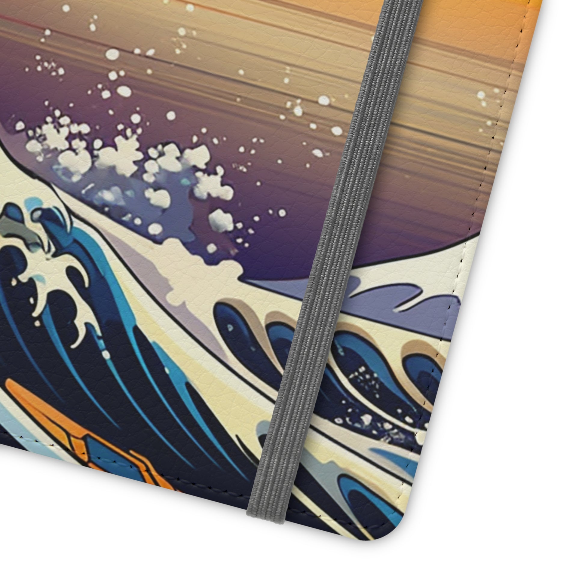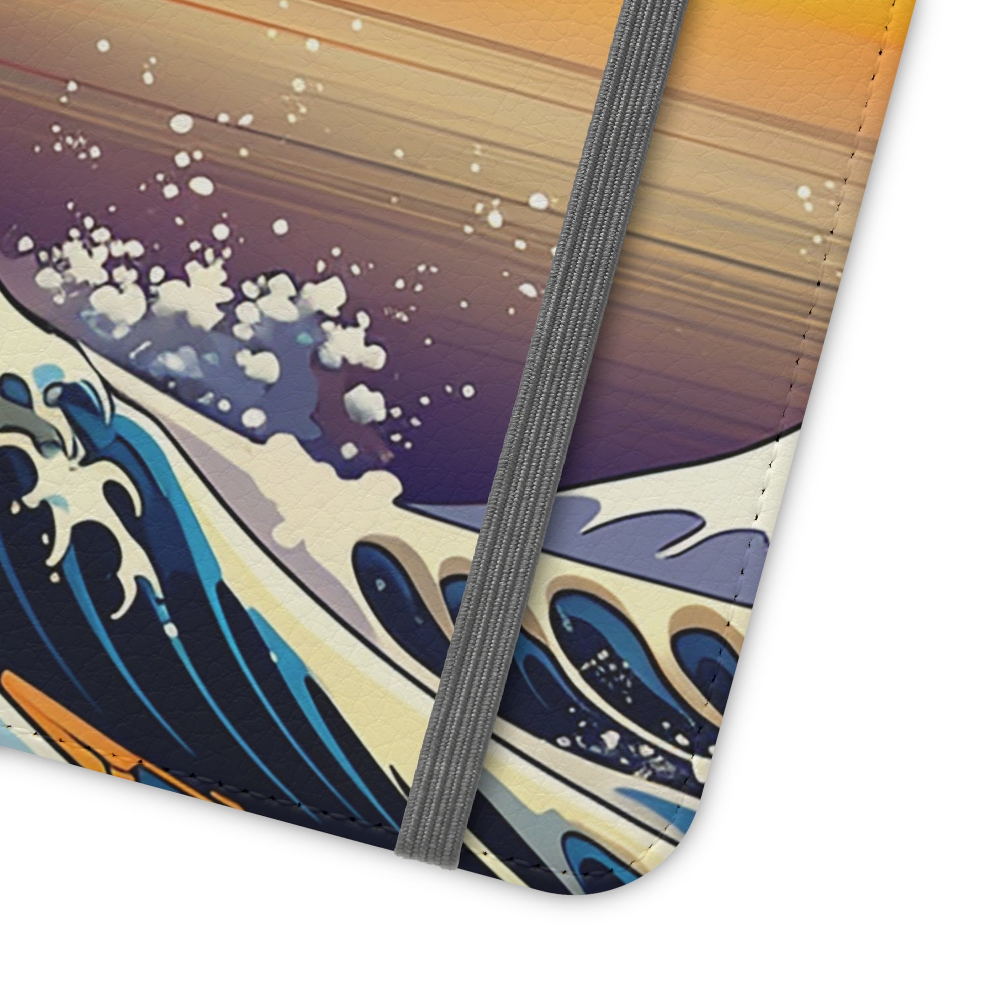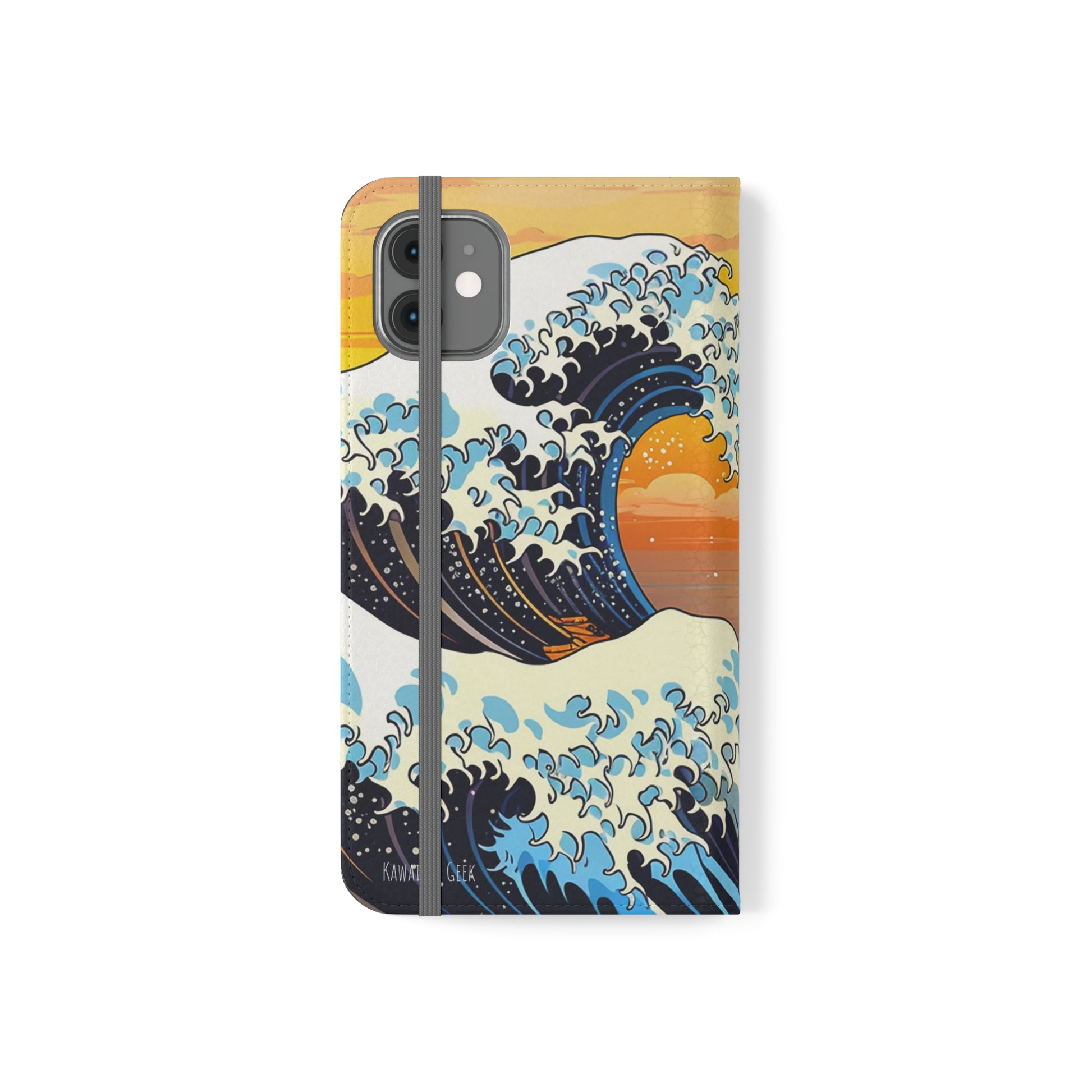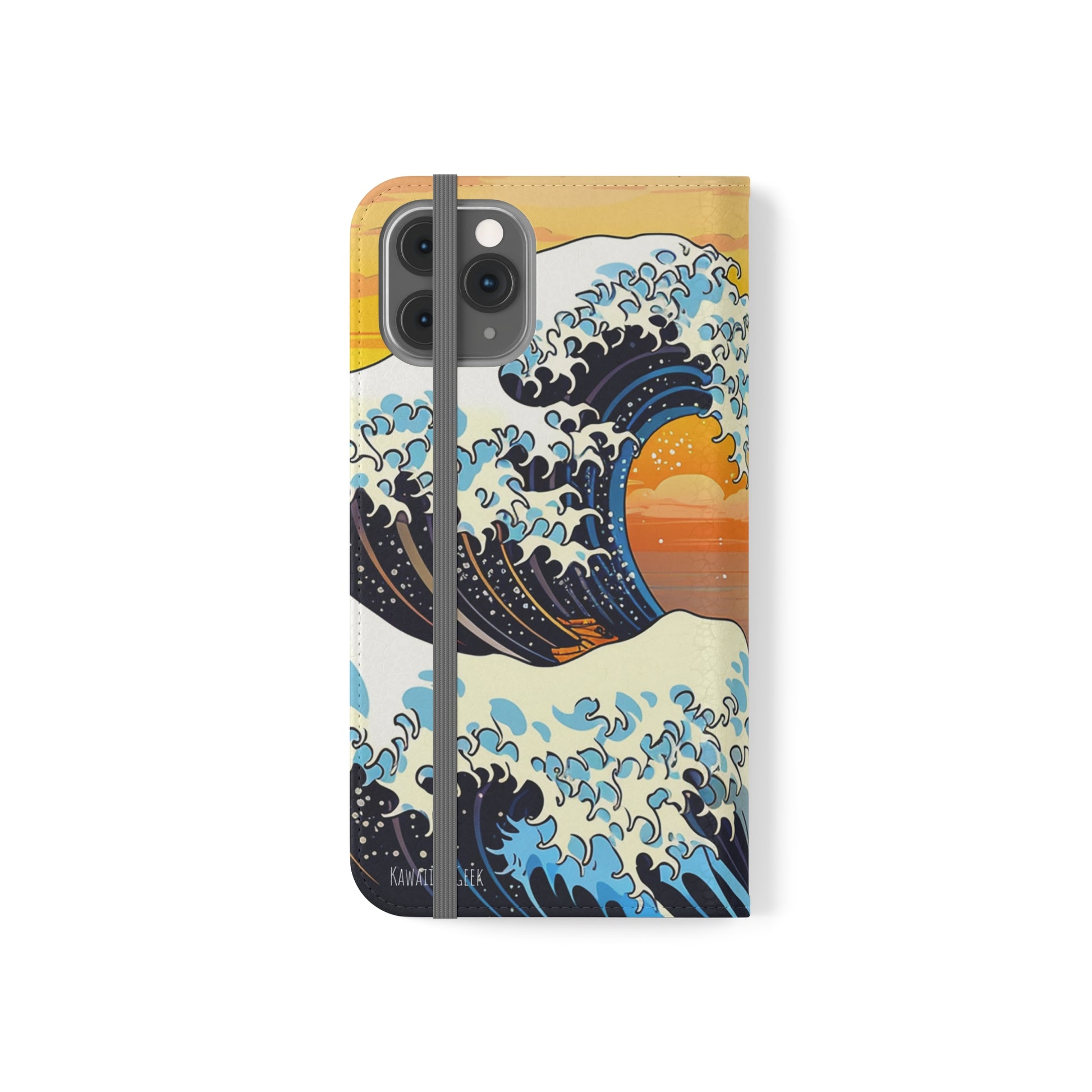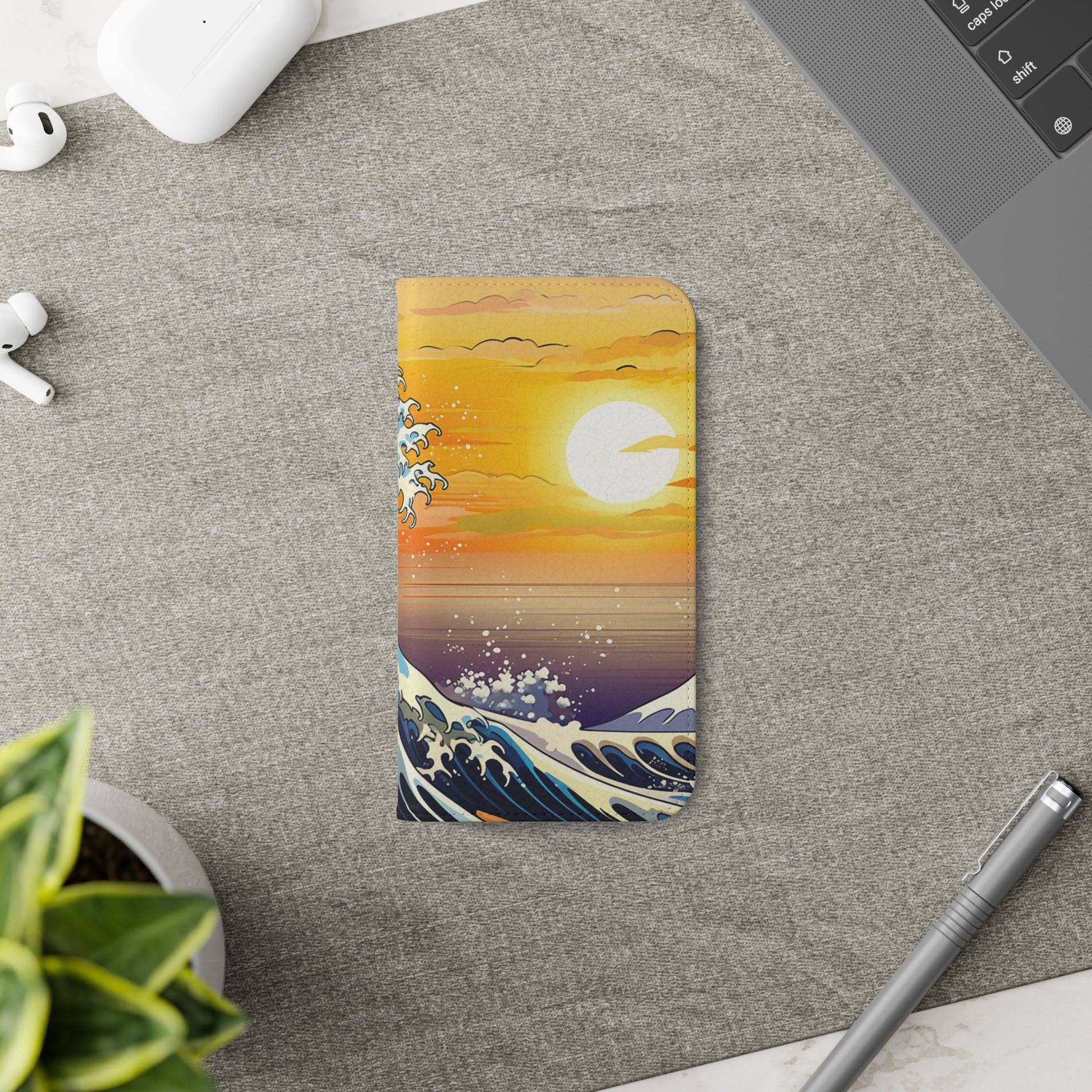 Sunset Big Wave Flip Phone Case - Embrace the Majestic Hokusai Style in Your Hands