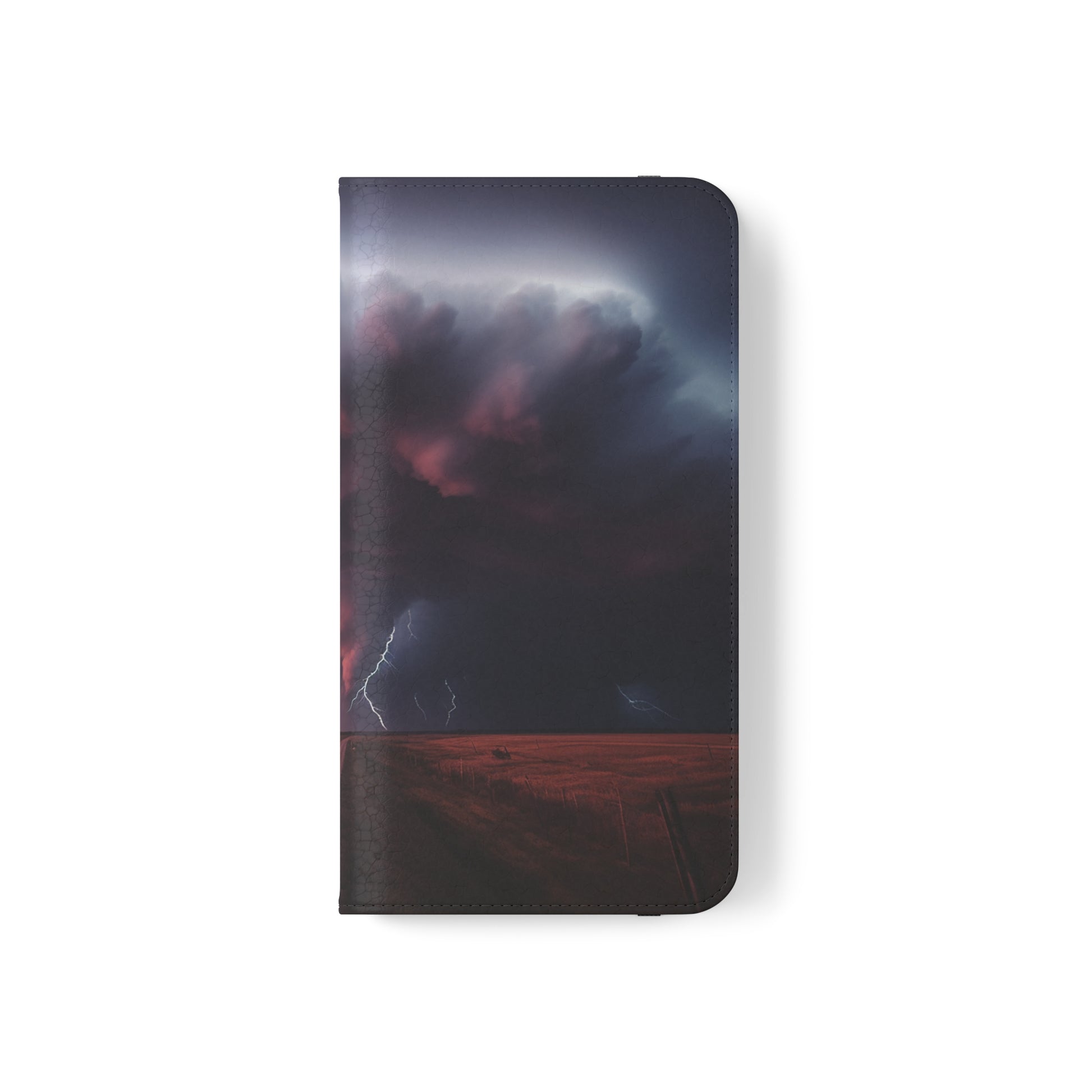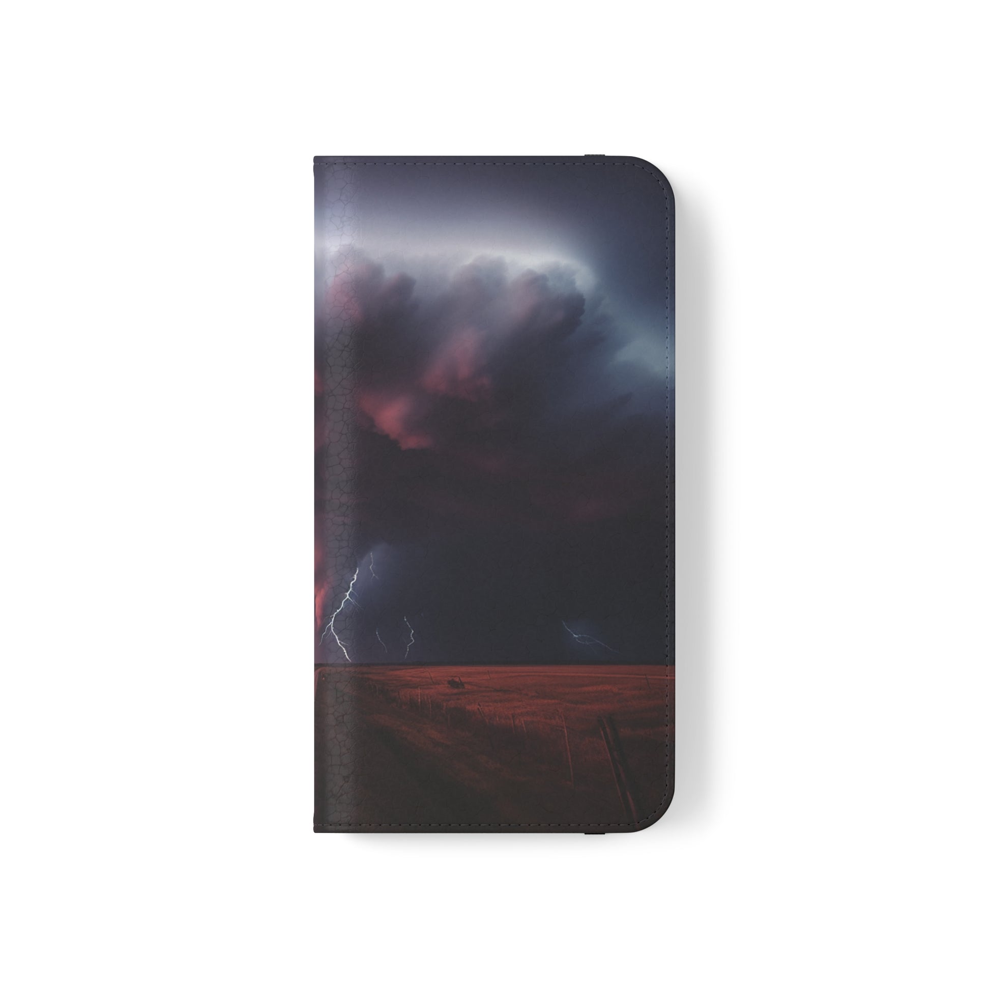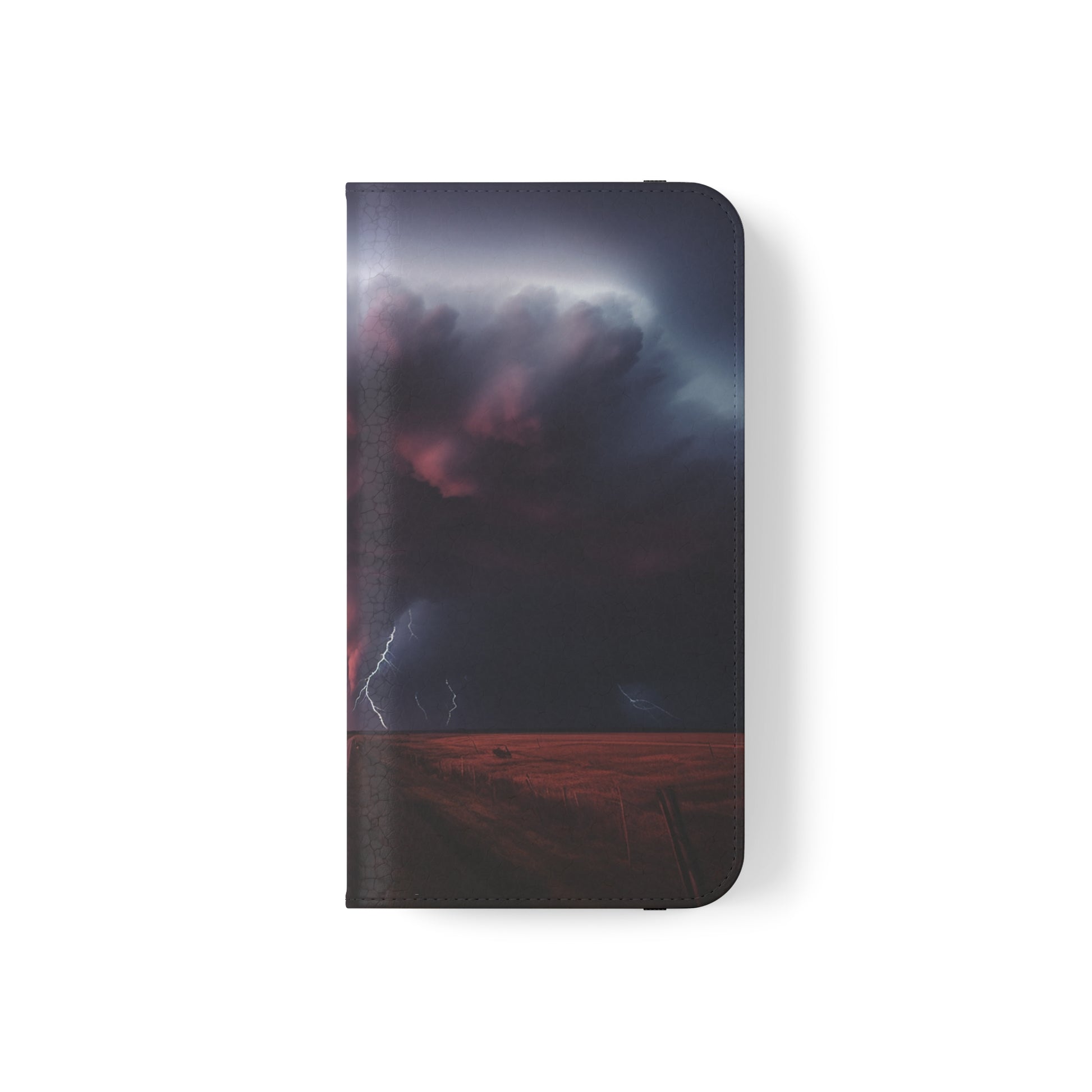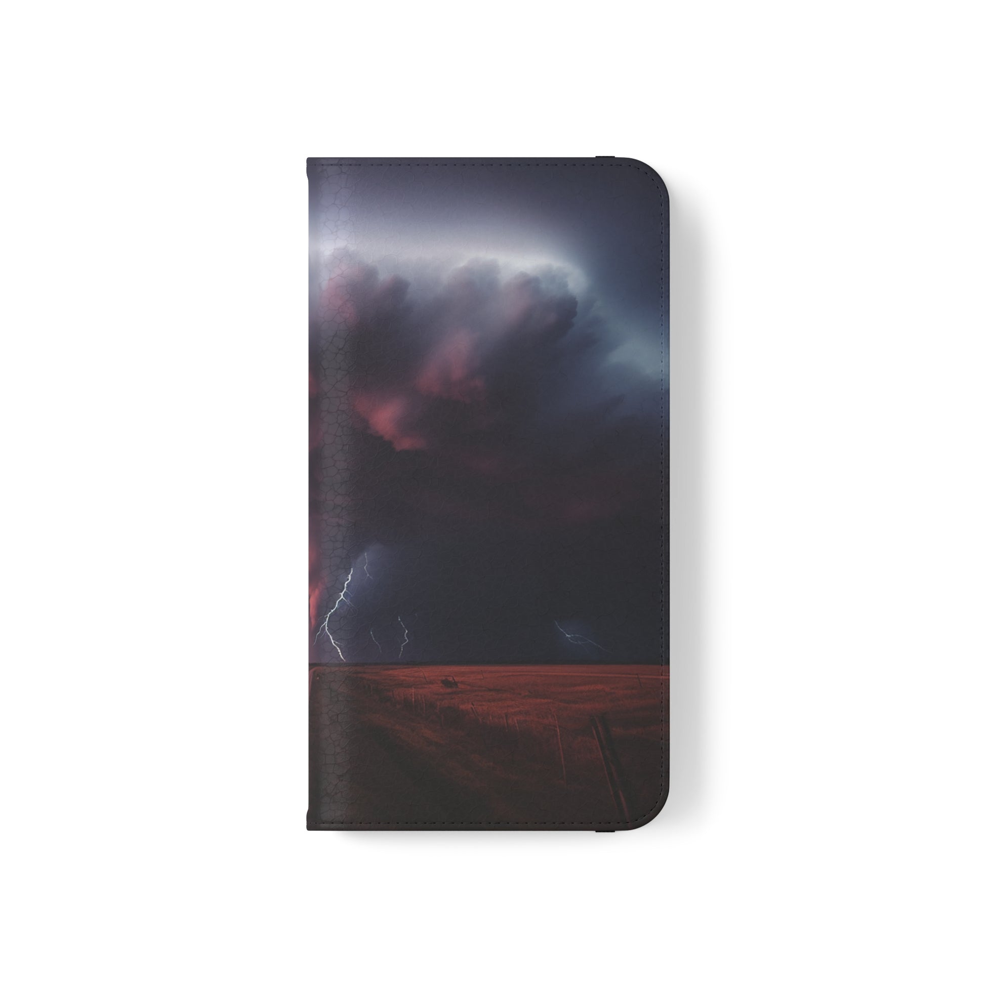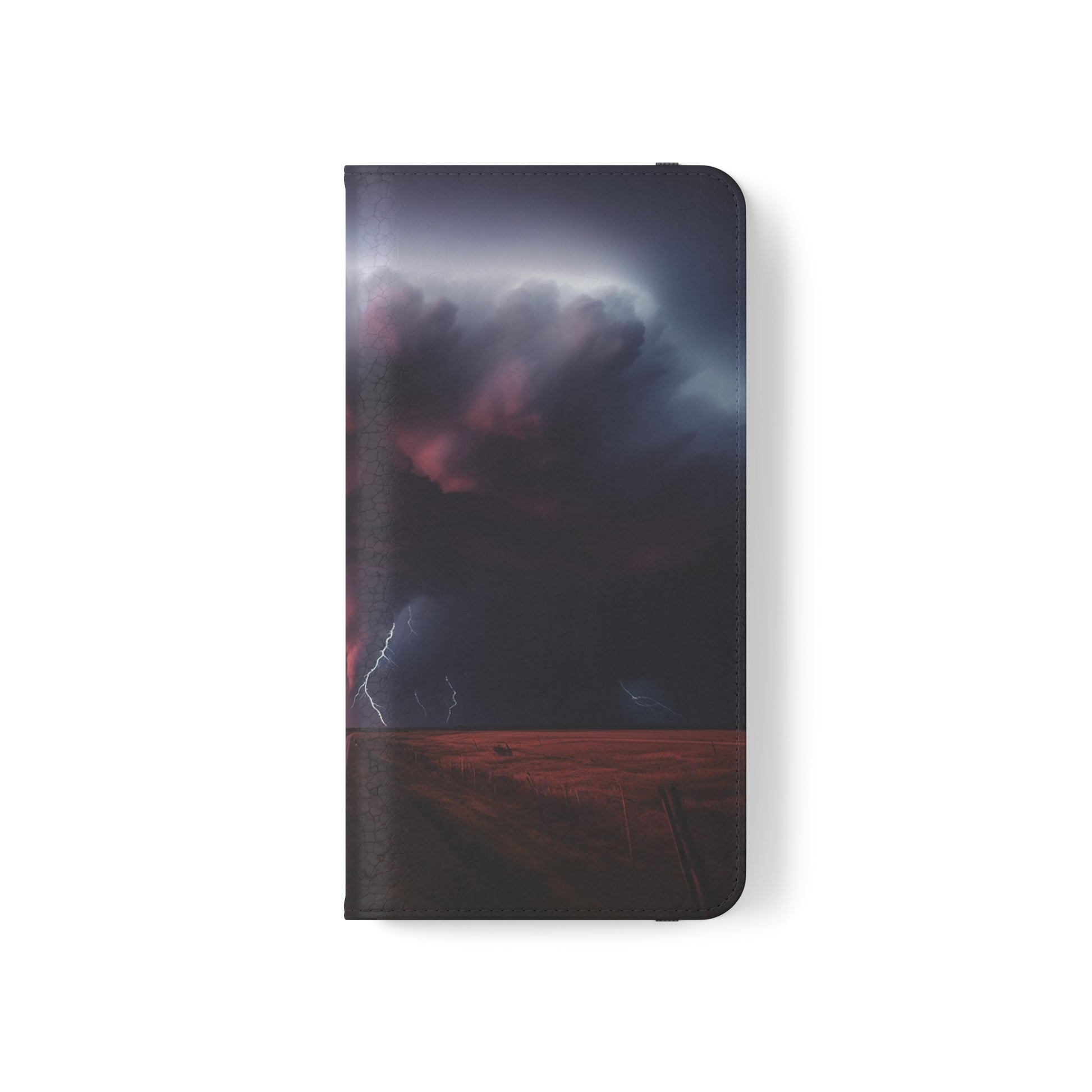 Keywords: Super cell case, Tornado phone case, Lightning case, Storm flip case, Weather enthusiast, Nature case, Electrifying design, Protective folio, Phone stand case, Faux leather case, Thunderstorm design, Swirl tornado, Storm chaser gear..