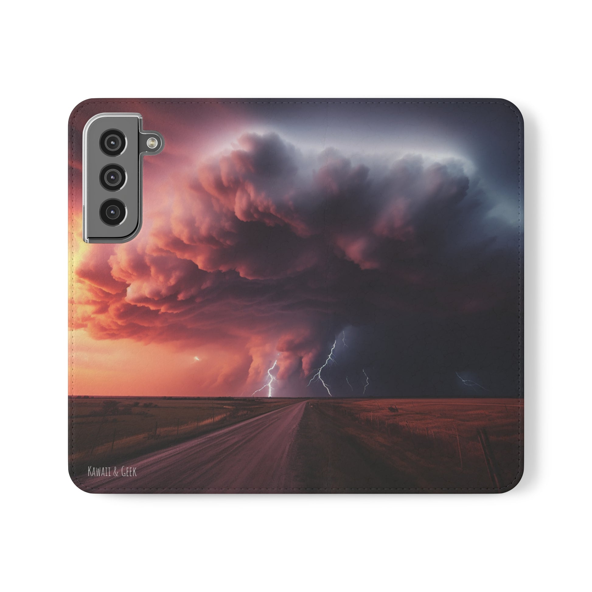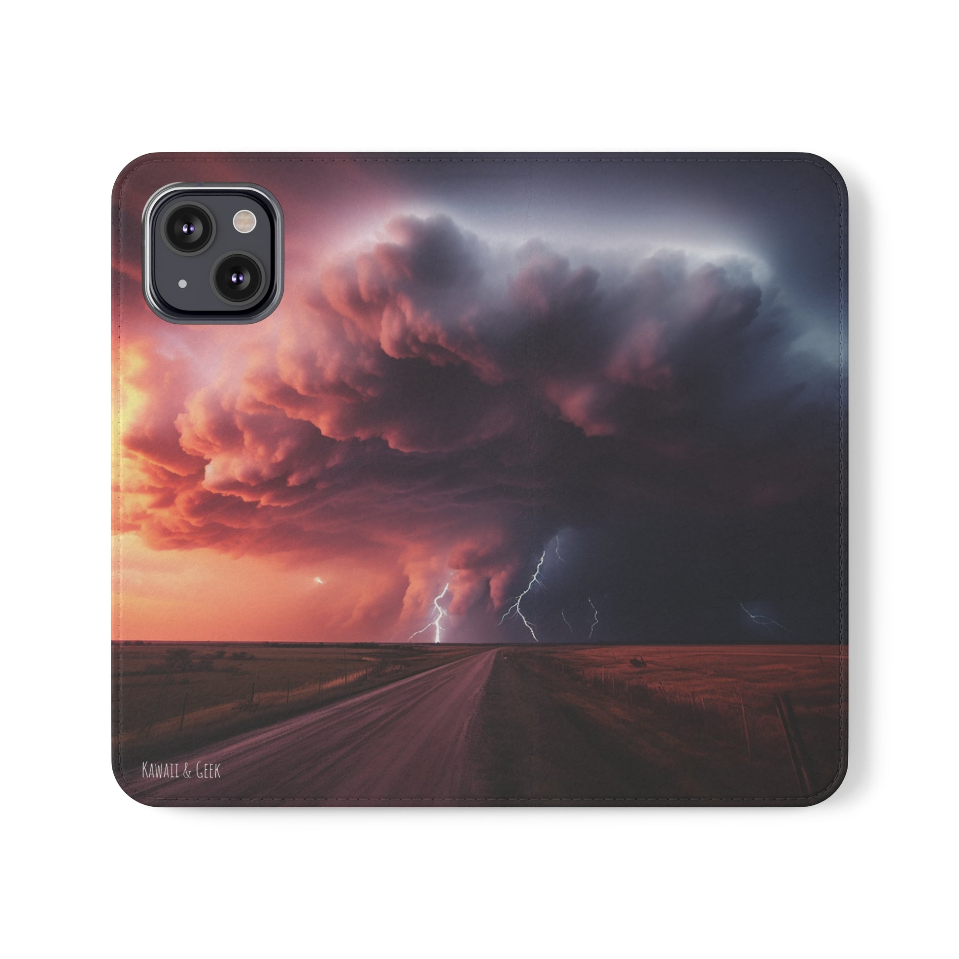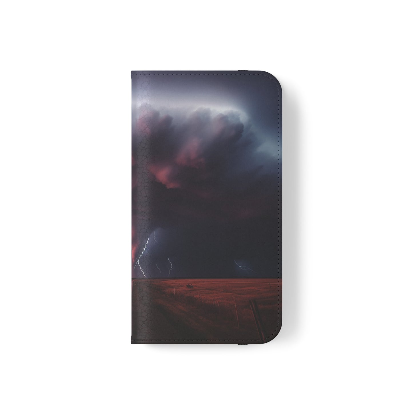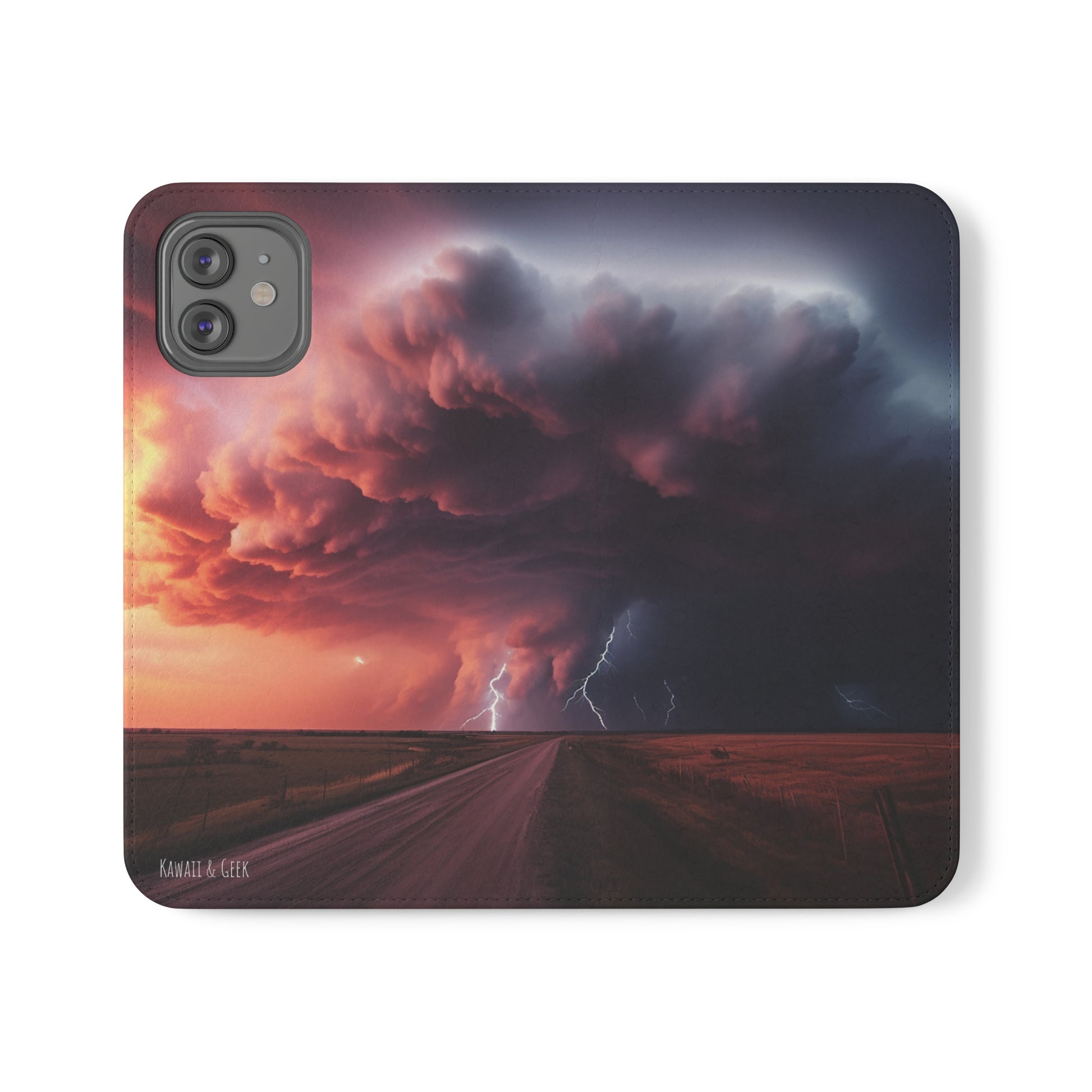 Keywords: Super cell case, Tornado phone case, Lightning case, Storm flip case, Weather enthusiast, Nature case, Electrifying design, Protective folio, Phone stand case, Faux leather case, Thunderstorm design, Swirl tornado, Storm chaser gear..