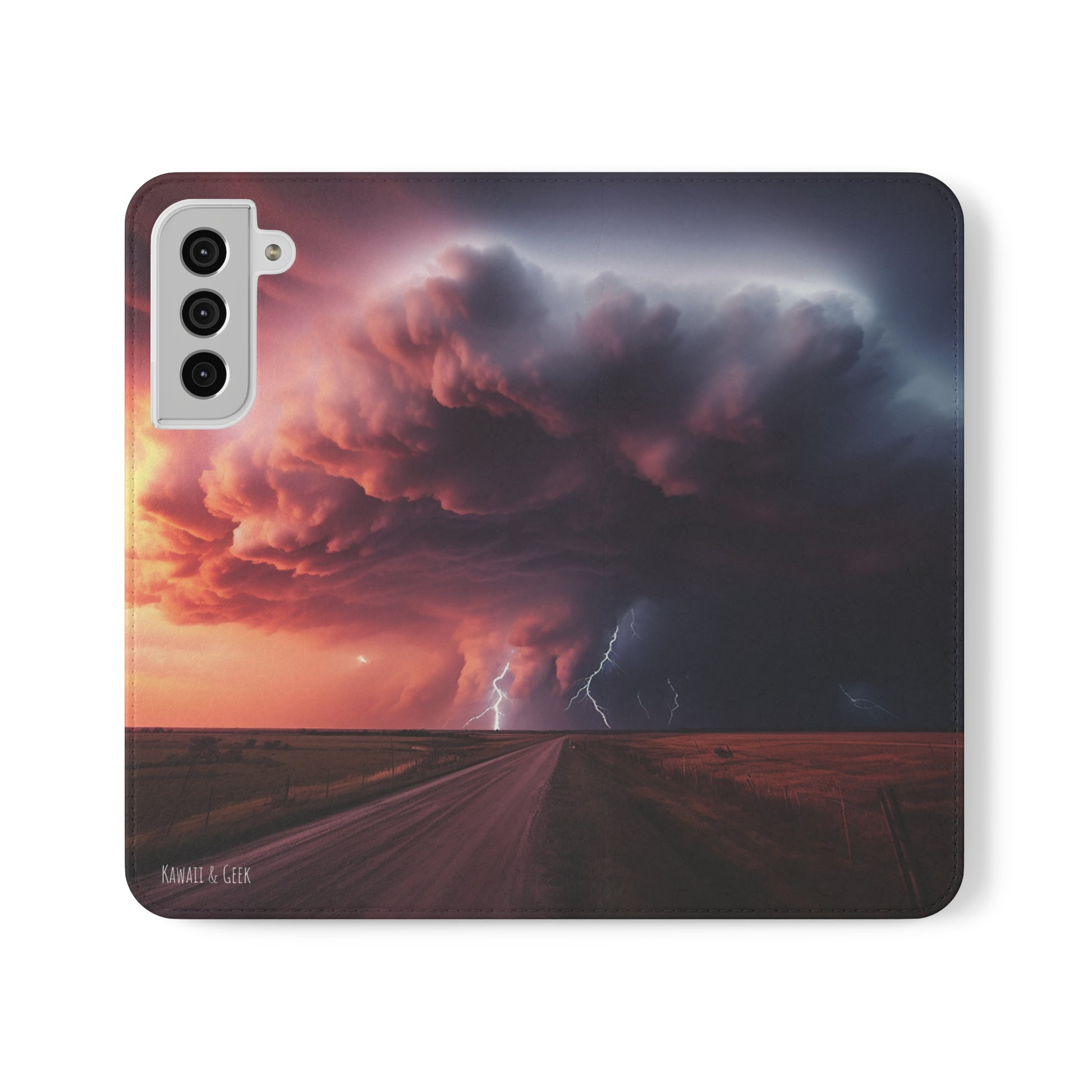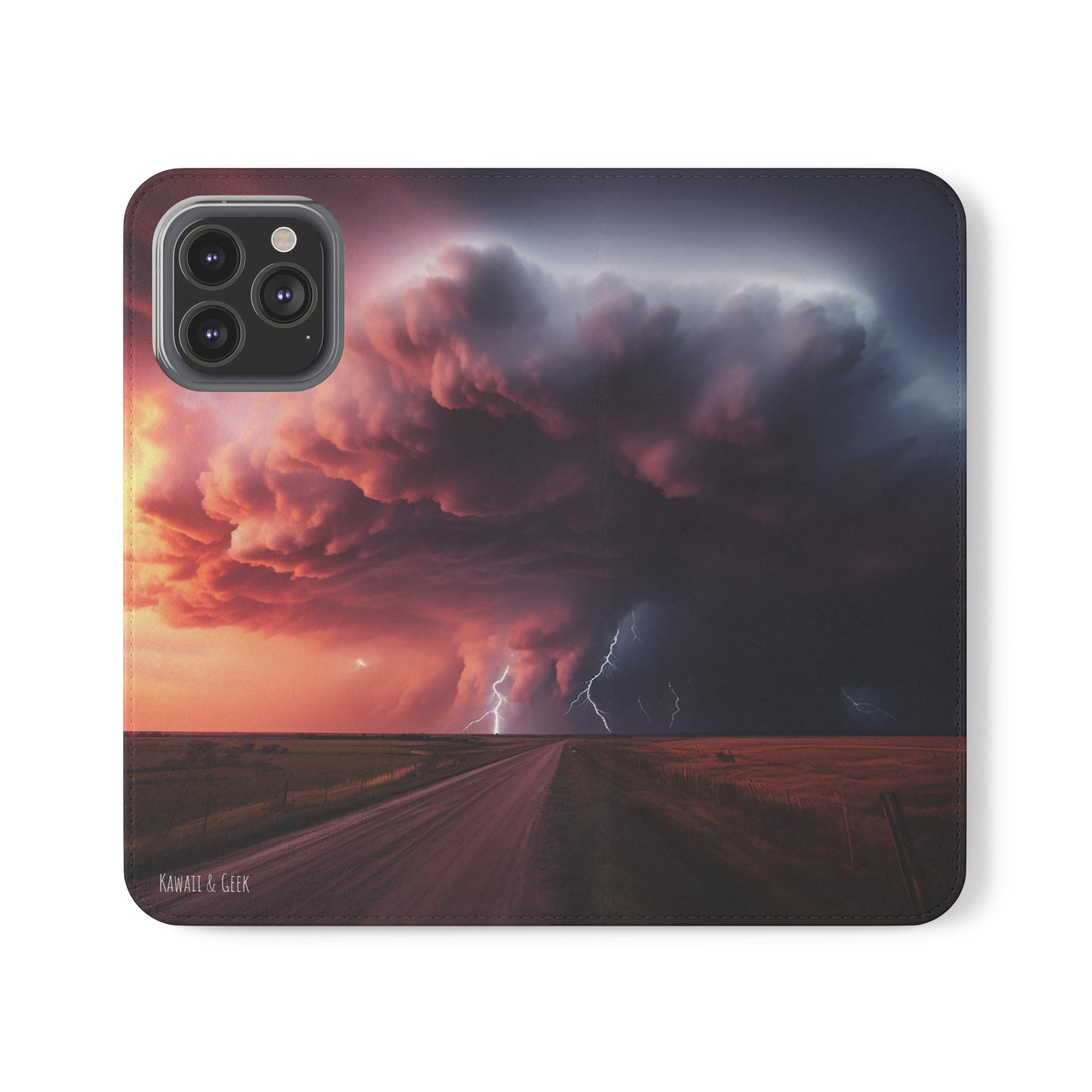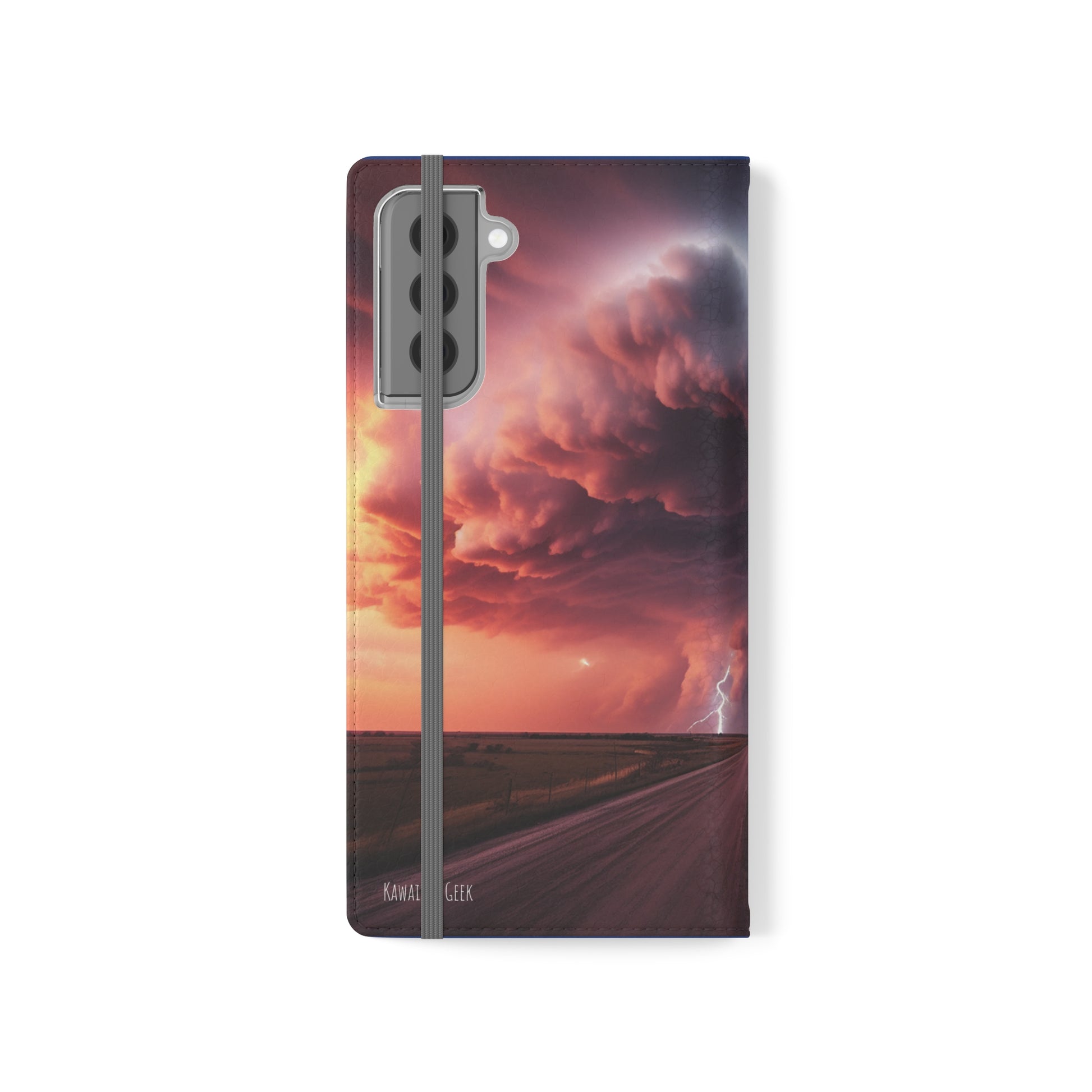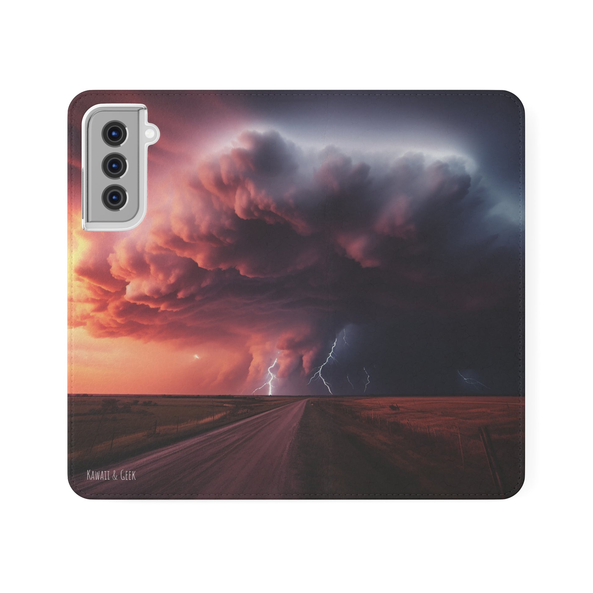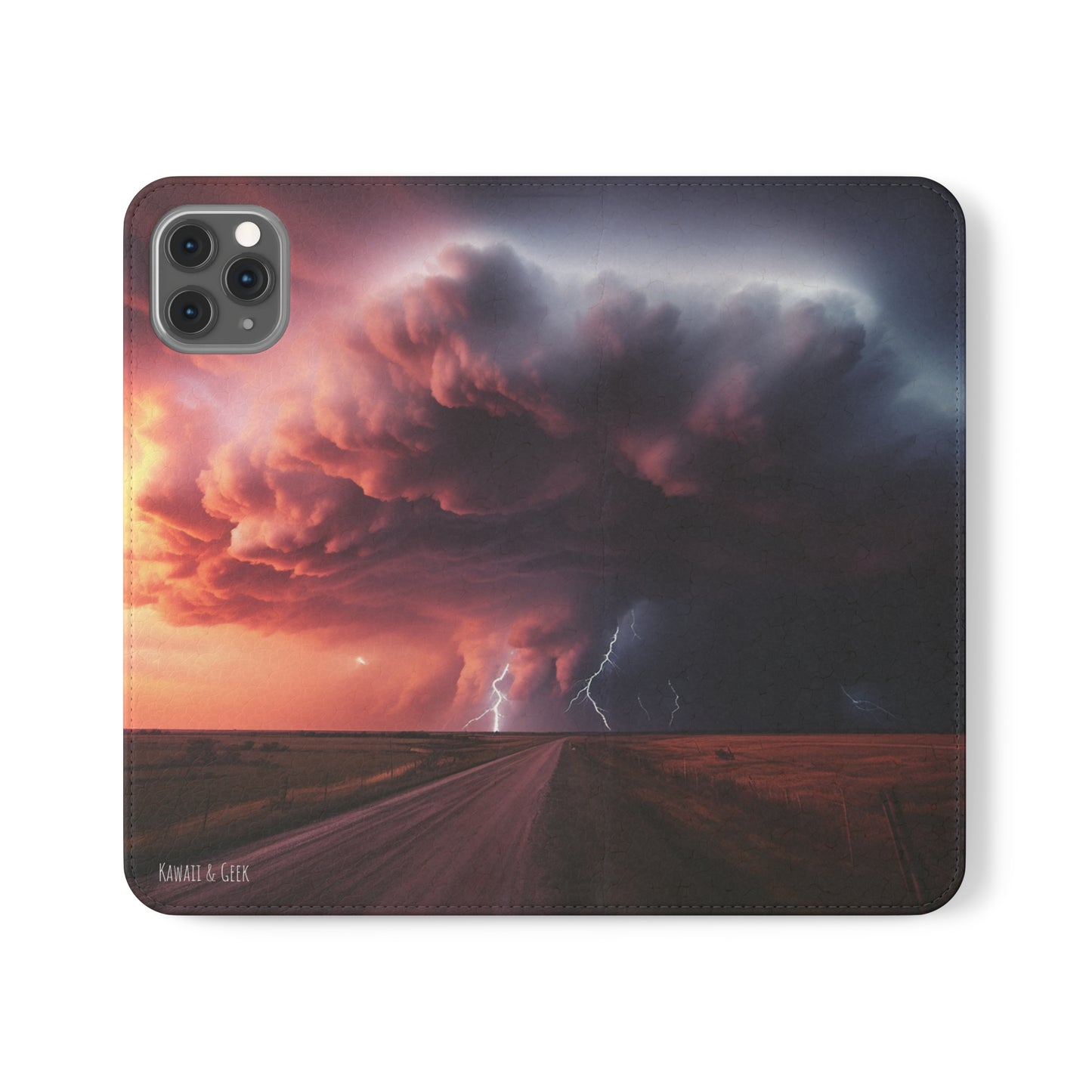 Keywords: Super cell case, Tornado phone case, Lightning case, Storm flip case, Weather enthusiast, Nature case, Electrifying design, Protective folio, Phone stand case, Faux leather case, Thunderstorm design, Swirl tornado, Storm chaser gear..