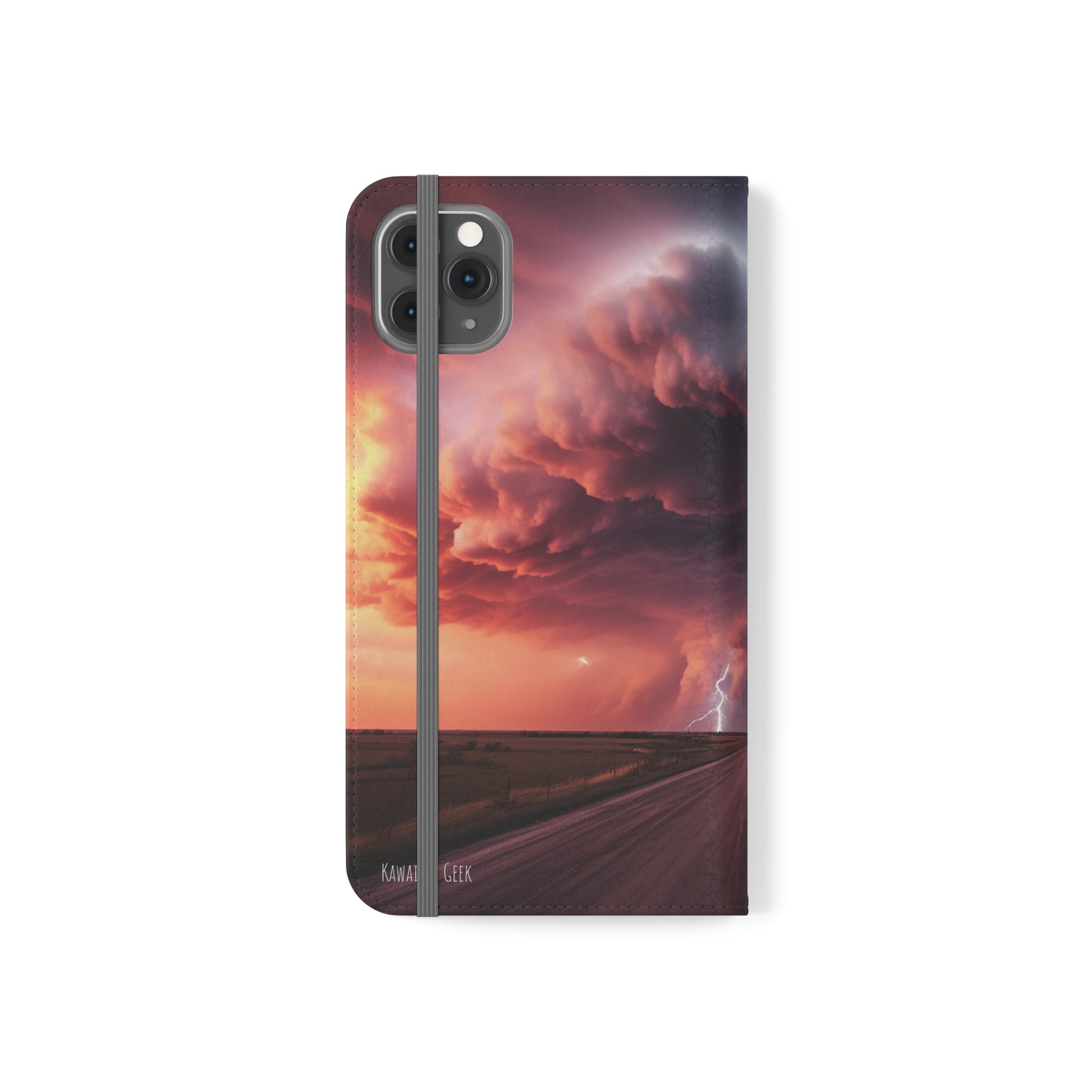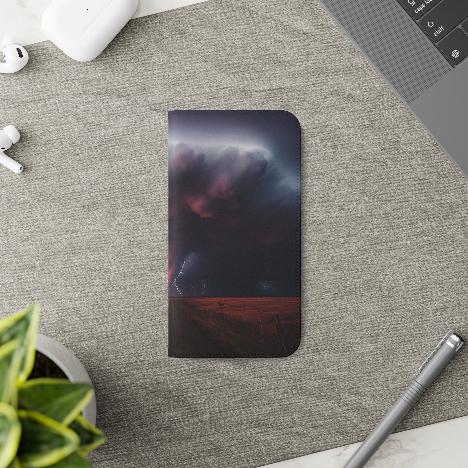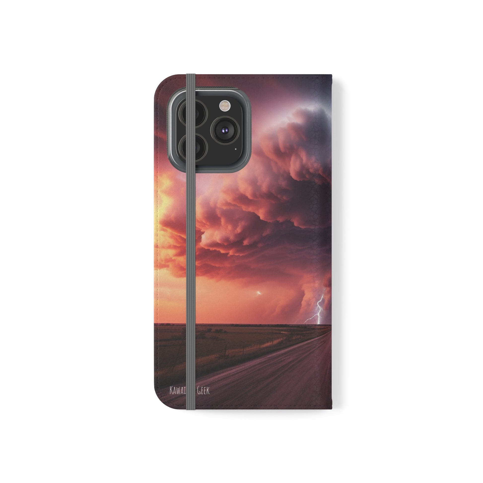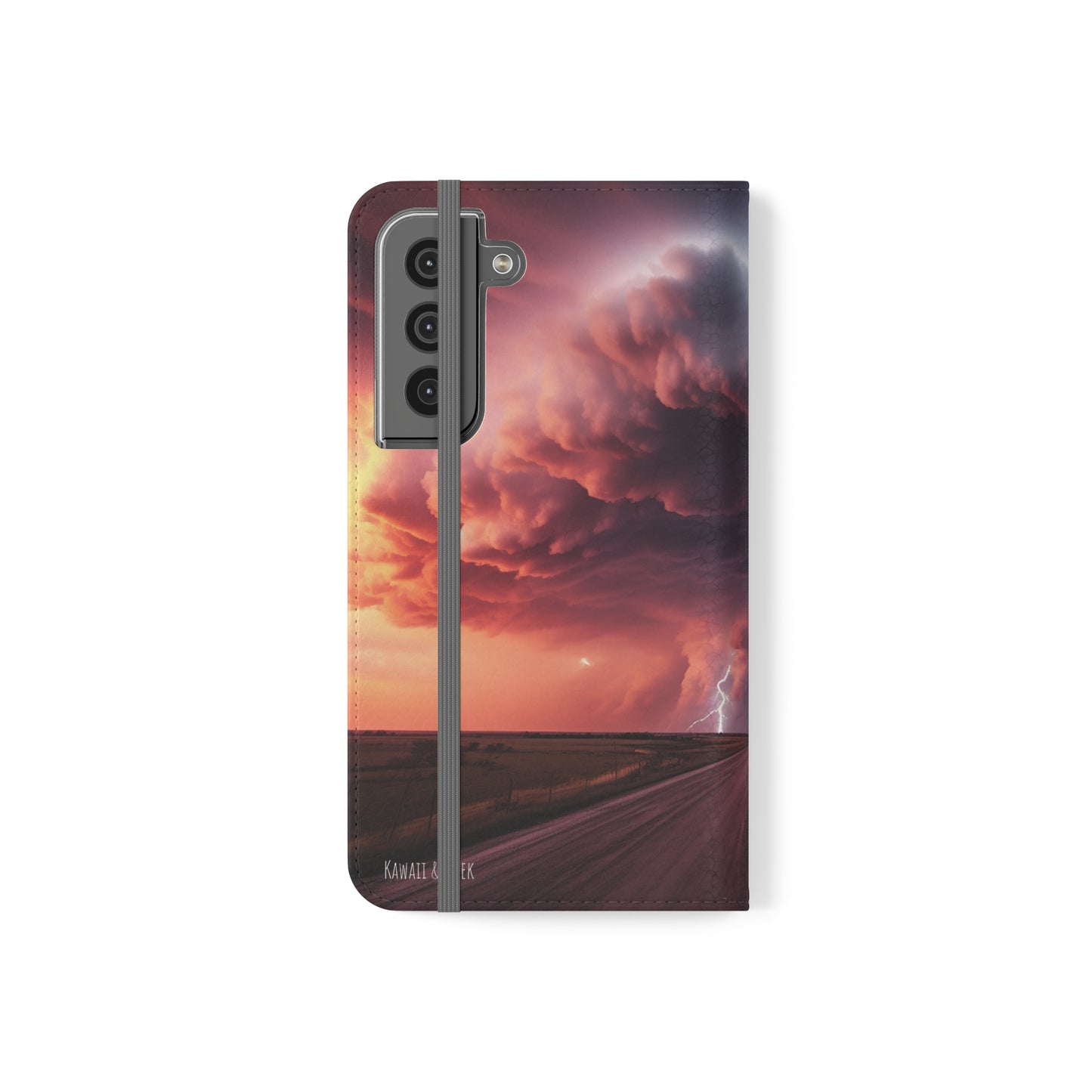 Keywords: Super cell case, Tornado phone case, Lightning case, Storm flip case, Weather enthusiast, Nature case, Electrifying design, Protective folio, Phone stand case, Faux leather case, Thunderstorm design, Swirl tornado, Storm chaser gear..