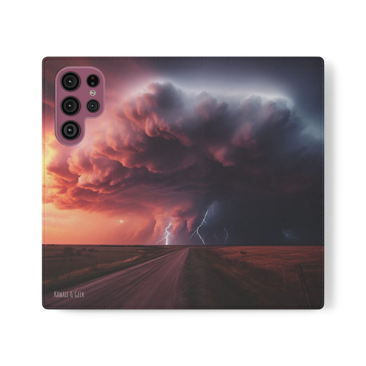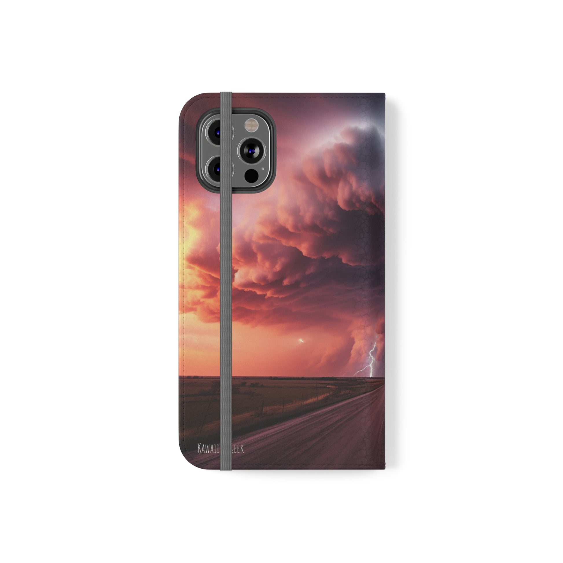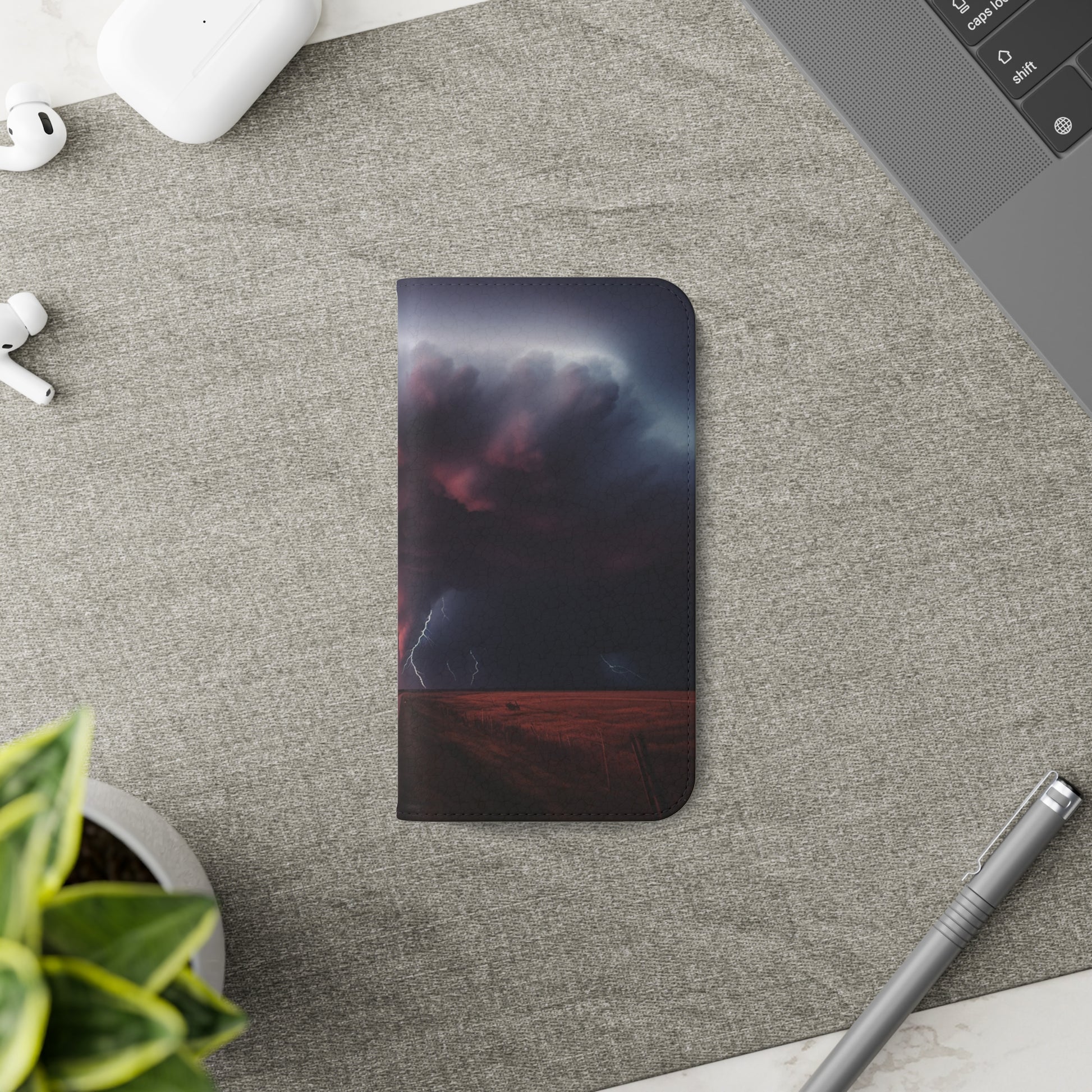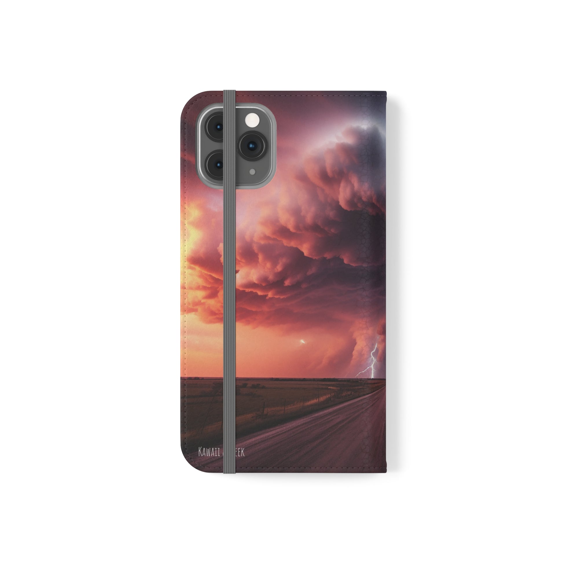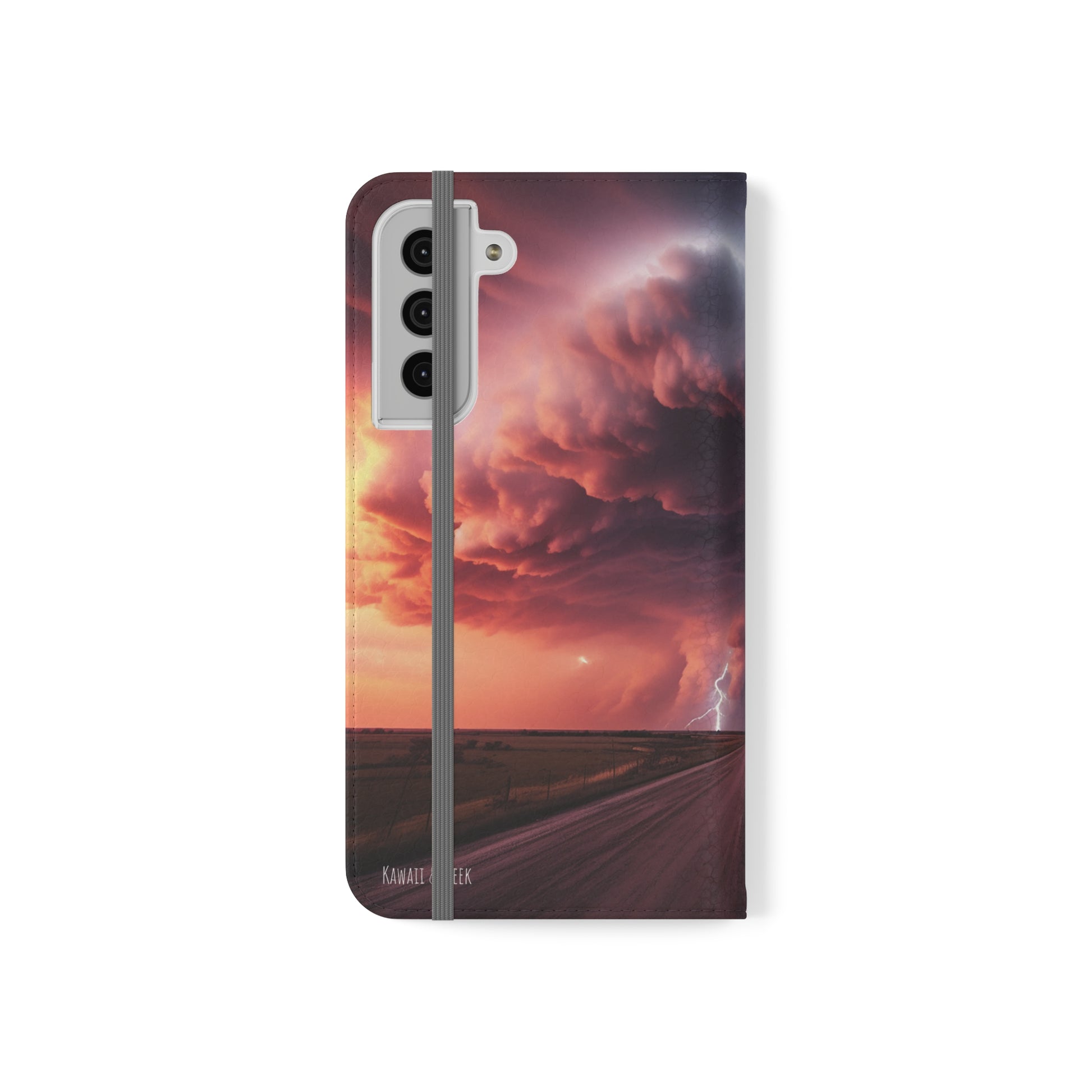 Keywords: Super cell case, Tornado phone case, Lightning case, Storm flip case, Weather enthusiast, Nature case, Electrifying design, Protective folio, Phone stand case, Faux leather case, Thunderstorm design, Swirl tornado, Storm chaser gear..
