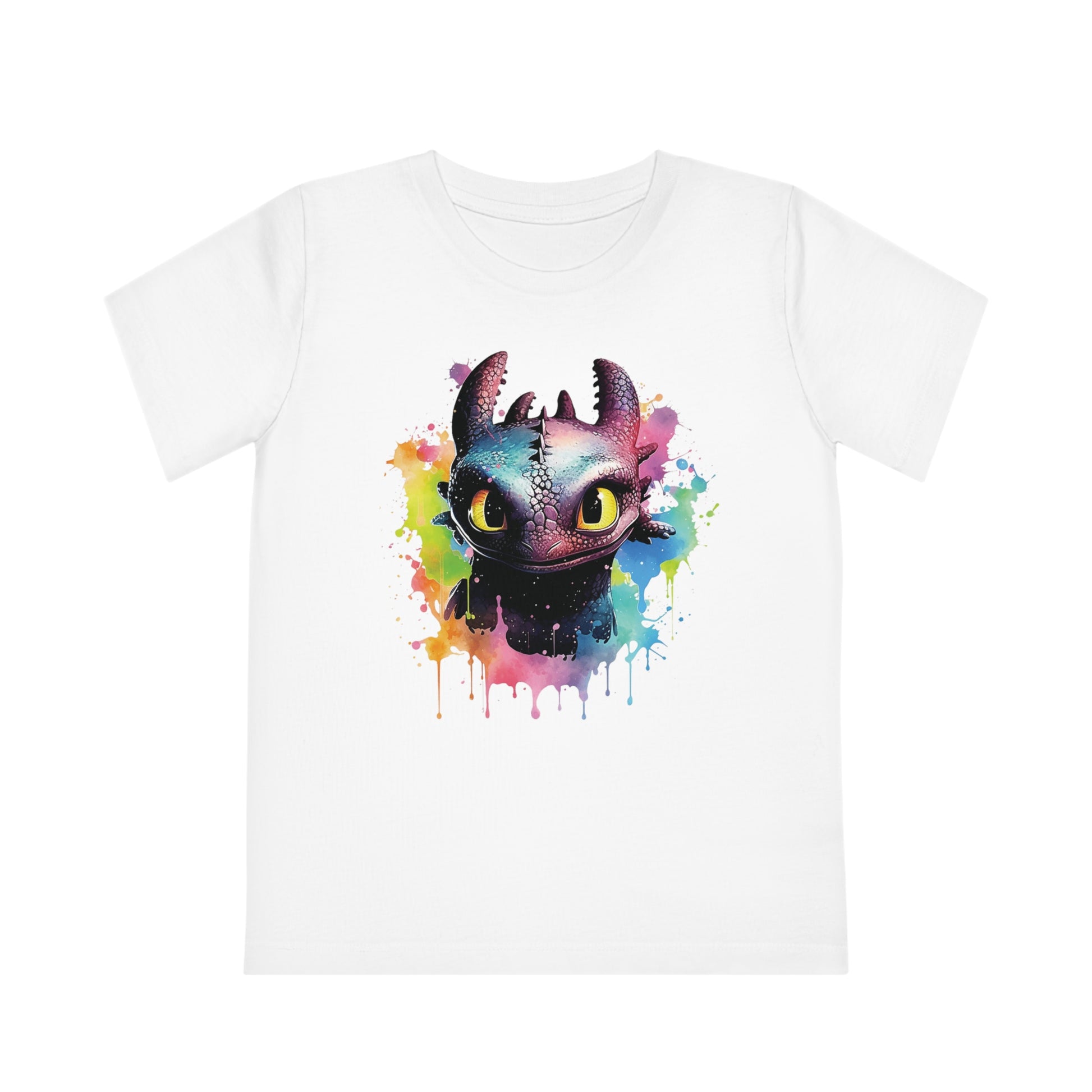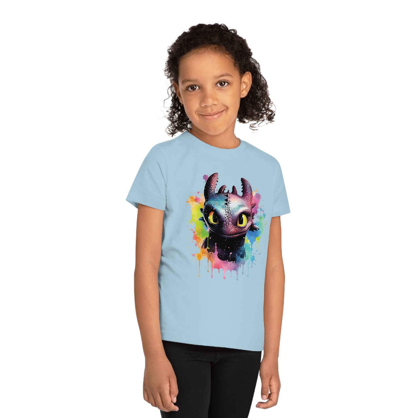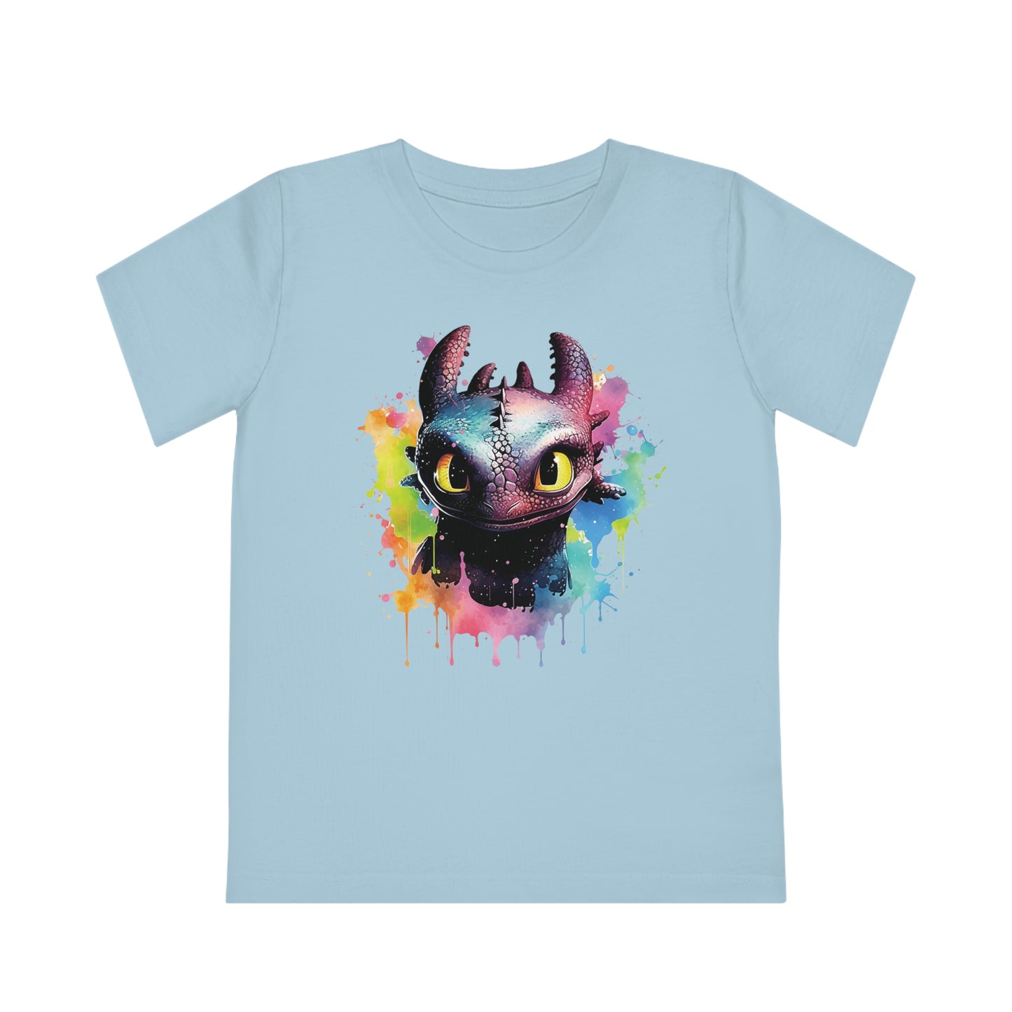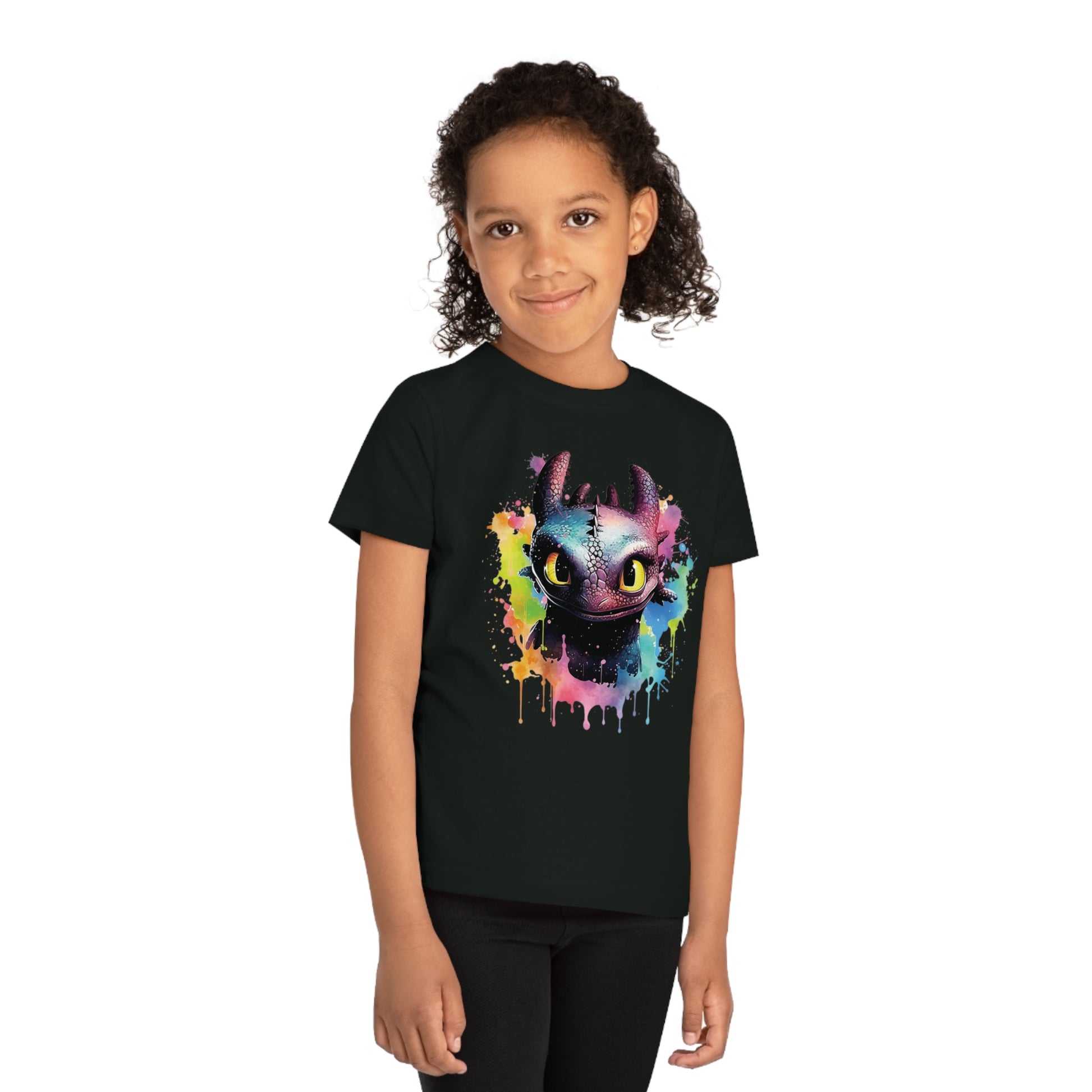Keywords: Toothless kids t-shirt, eco-friendly fashion, watercolored design, sustainable materials, "How to Train Your Dragon", comfortable fit, imaginative play, beloved characters.