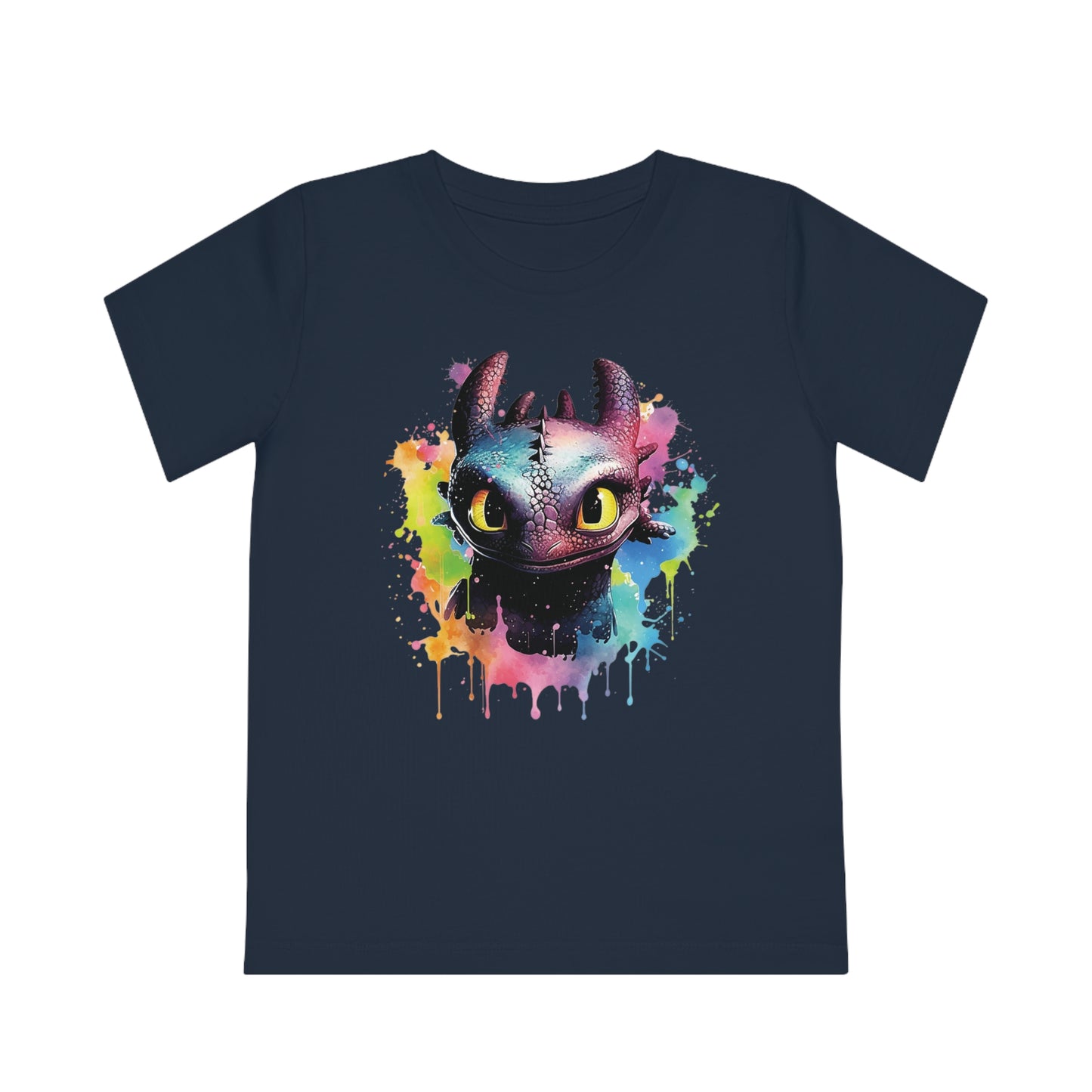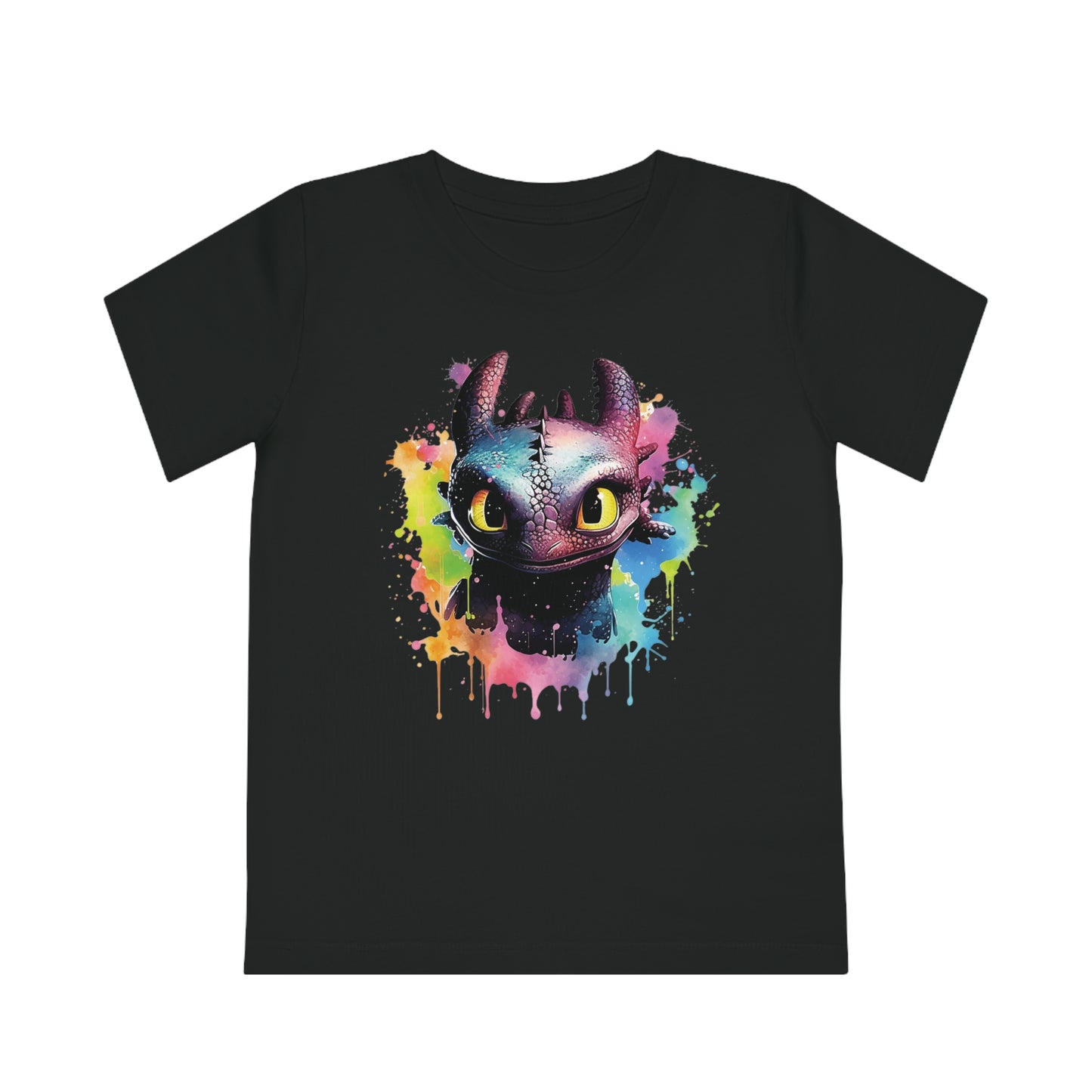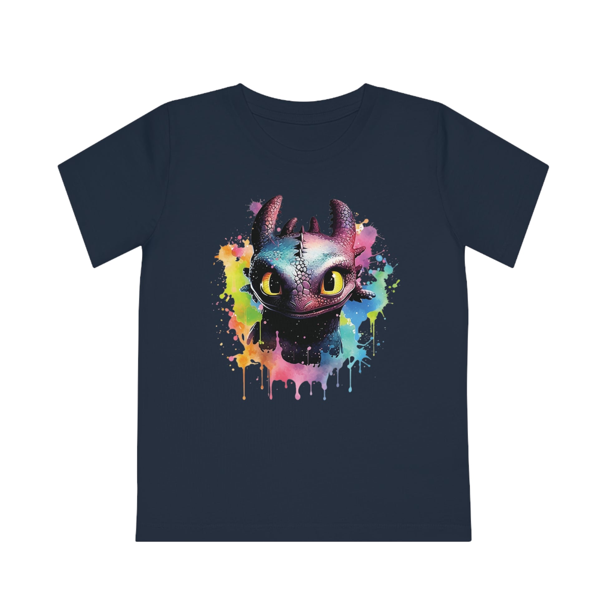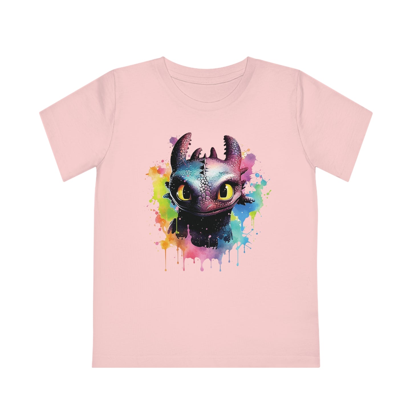 Keywords: Toothless kids t-shirt, eco-friendly fashion, watercolored design, sustainable materials, "How to Train Your Dragon", comfortable fit, imaginative play, beloved characters.