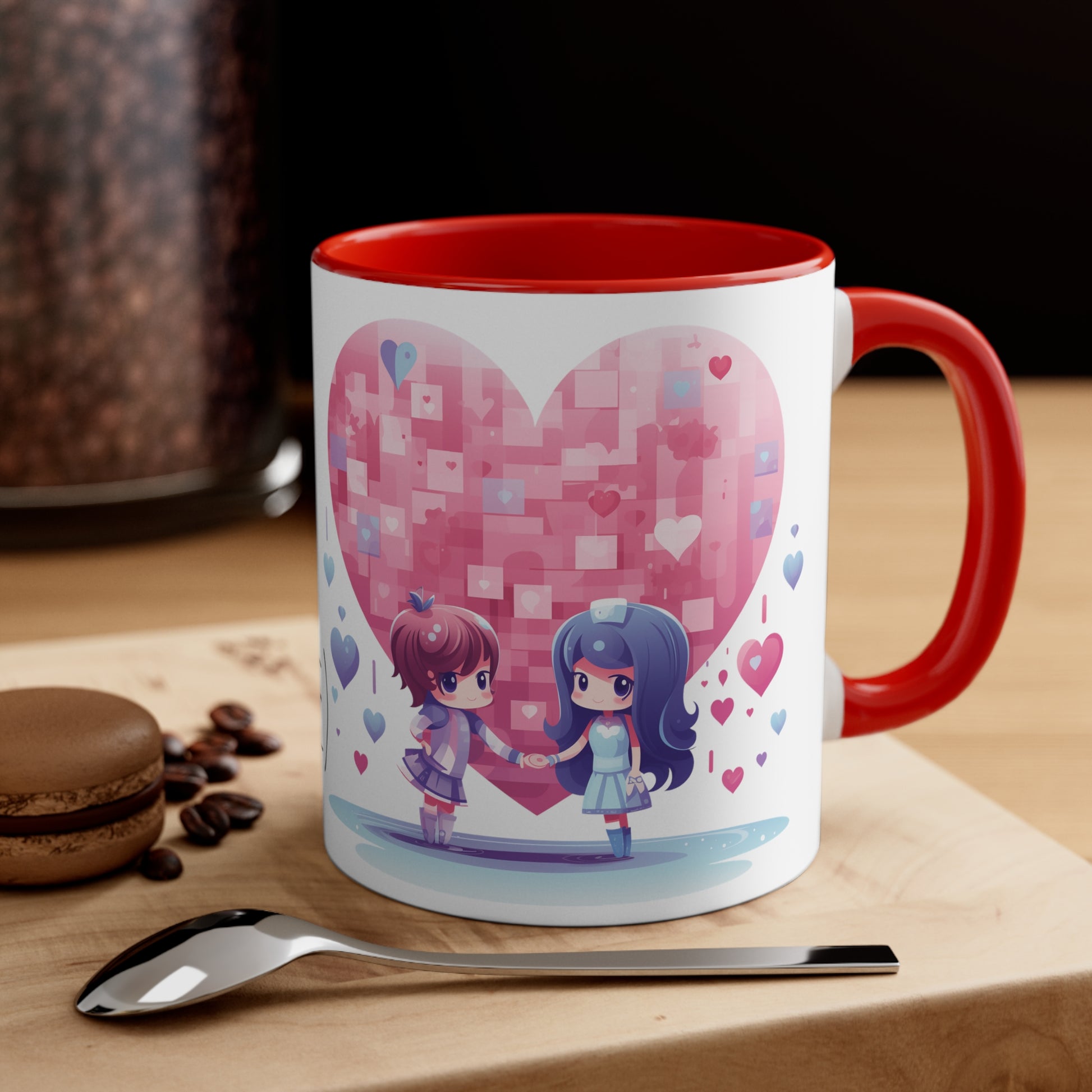 Keywords:Kawaii Mug, Pixel Heart, Love Coffee, Cute Cup, Girls Couple, Digital Art, Geek Mug, Romantic Drinkware, Adorable Cup, Unique Gift