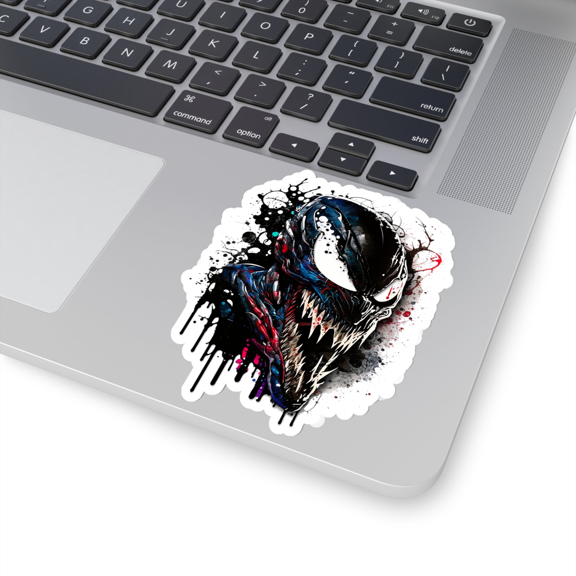 Keywords: Venom sticker, watercolor style sticker, Macbook sticker, smartphone sticker, Marvel Comics, dark sticker, unique sticker, colorful sticker.