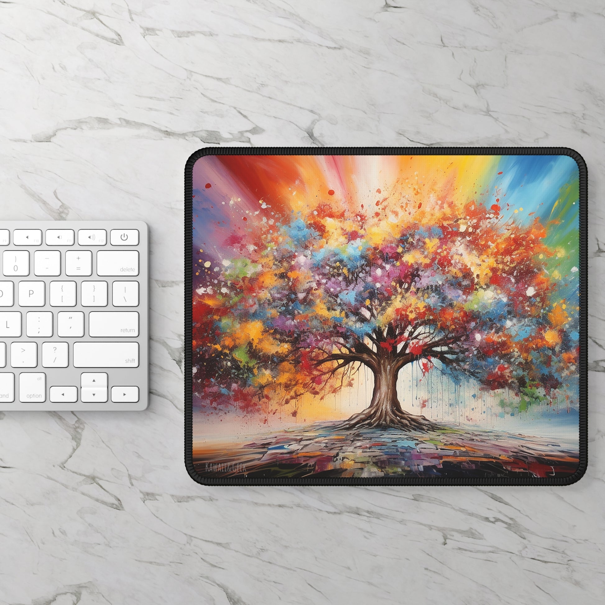 Keywords: Tree of Life, Colorful Mouse Pad, Gaming Accessory, Artistic Design, Gamer's Choice, Precision Pad, Vibrant Design, Life Tree Painting, Gaming Art, Color Burst, Inspired Gaming, Play in Style, Art Meets Tech.