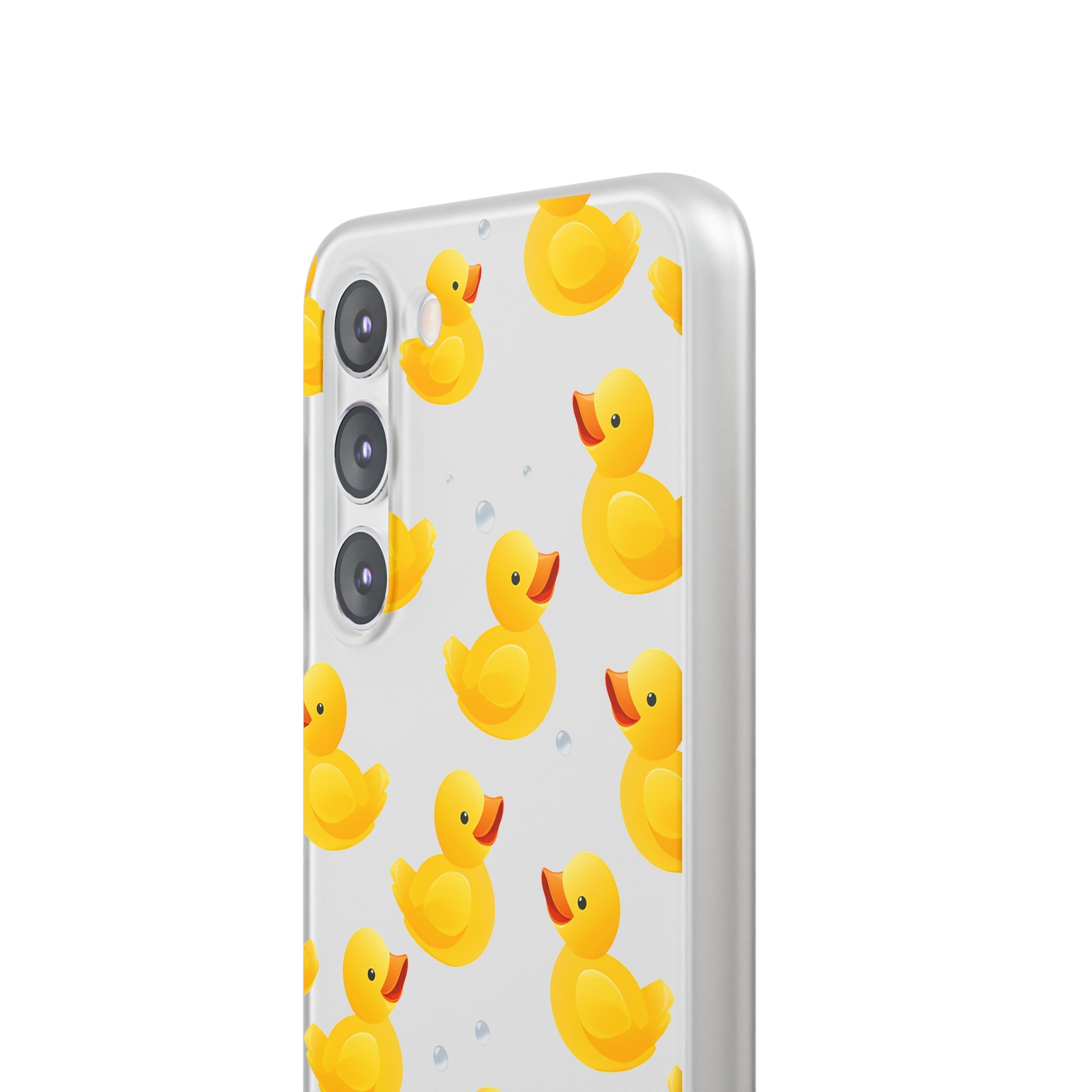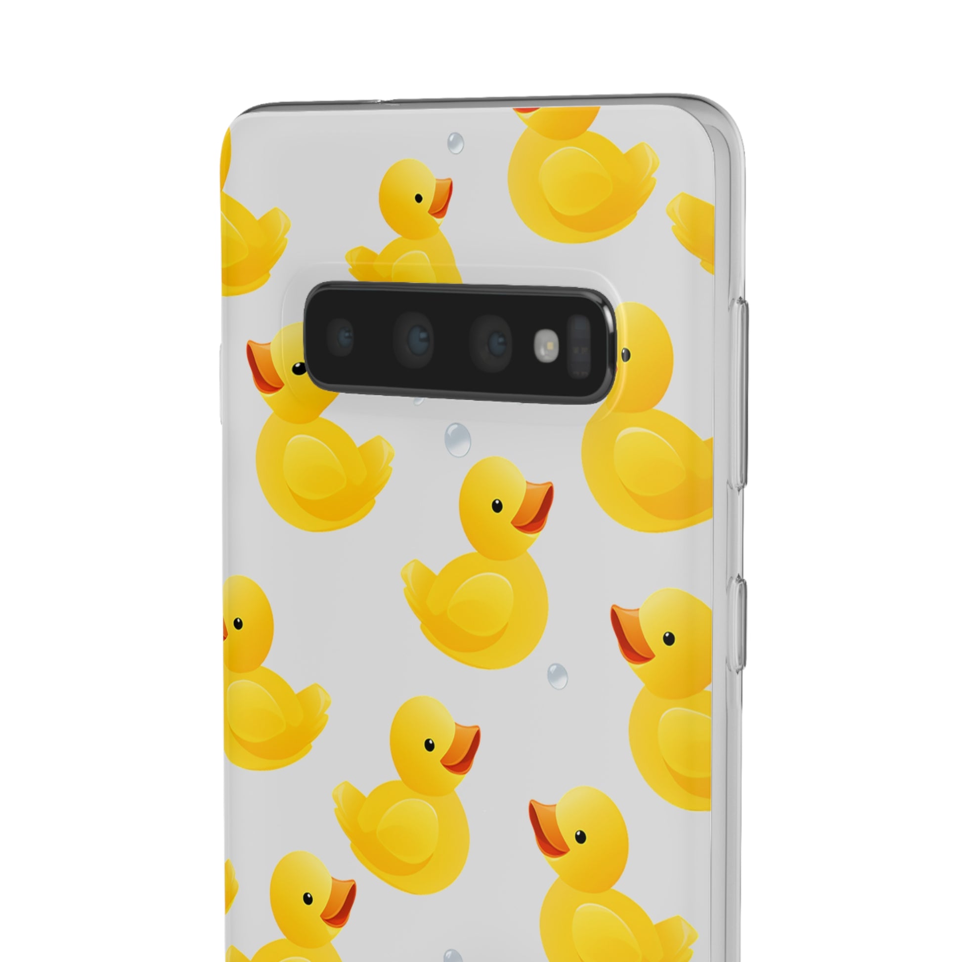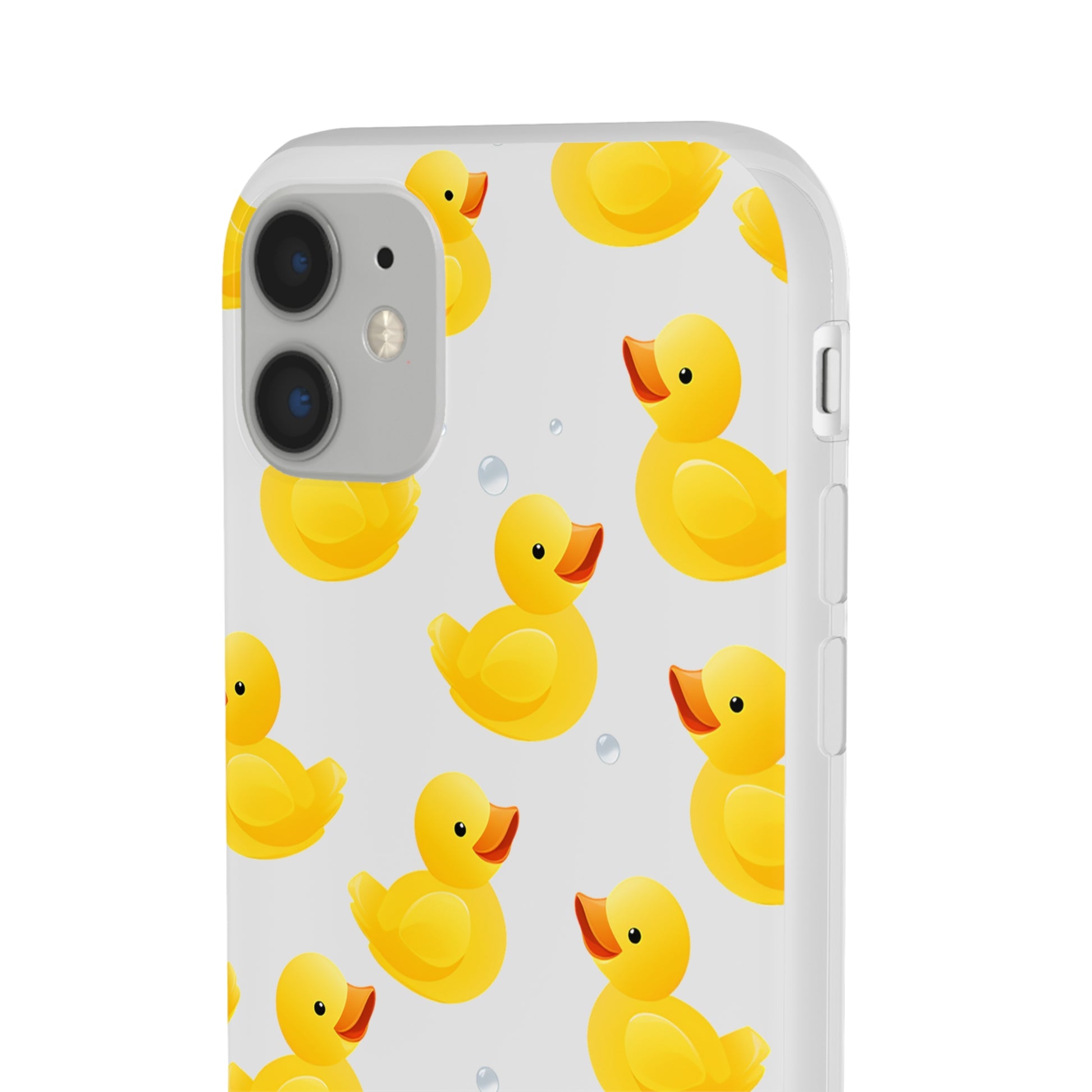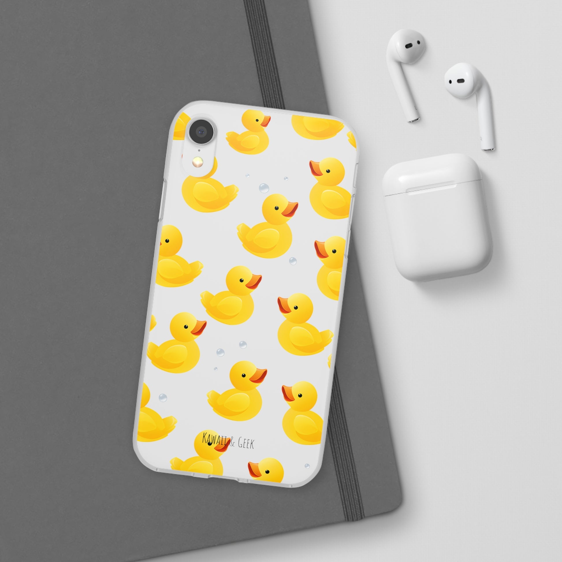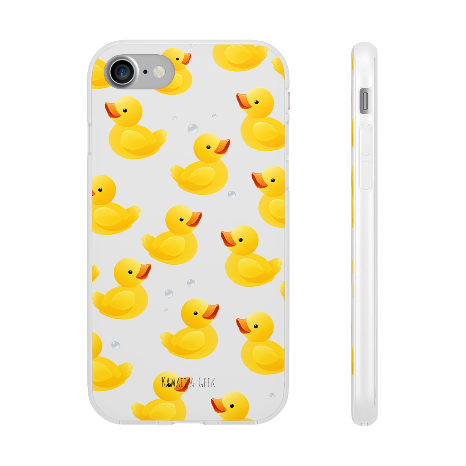 Keywords: Yellow duck case, Flexi phone cover, Transparent case, Playful design, Childhood nostalgia, Iconic ducks, Quirky style, Duck pattern, Premium protection, Retro vibe, Phone accessory, Classic design, Fun phone case.