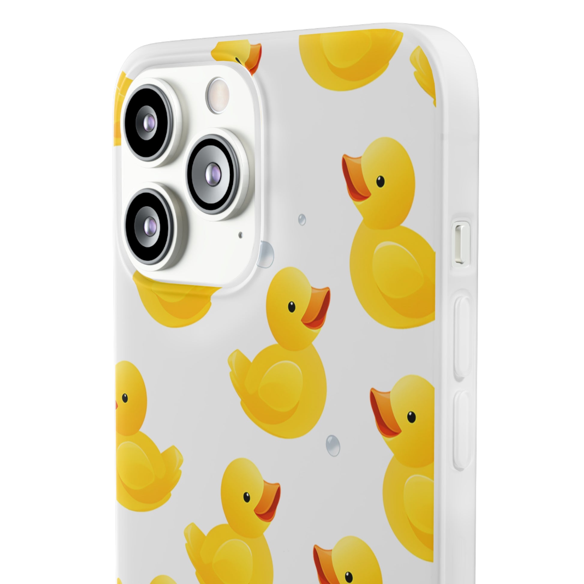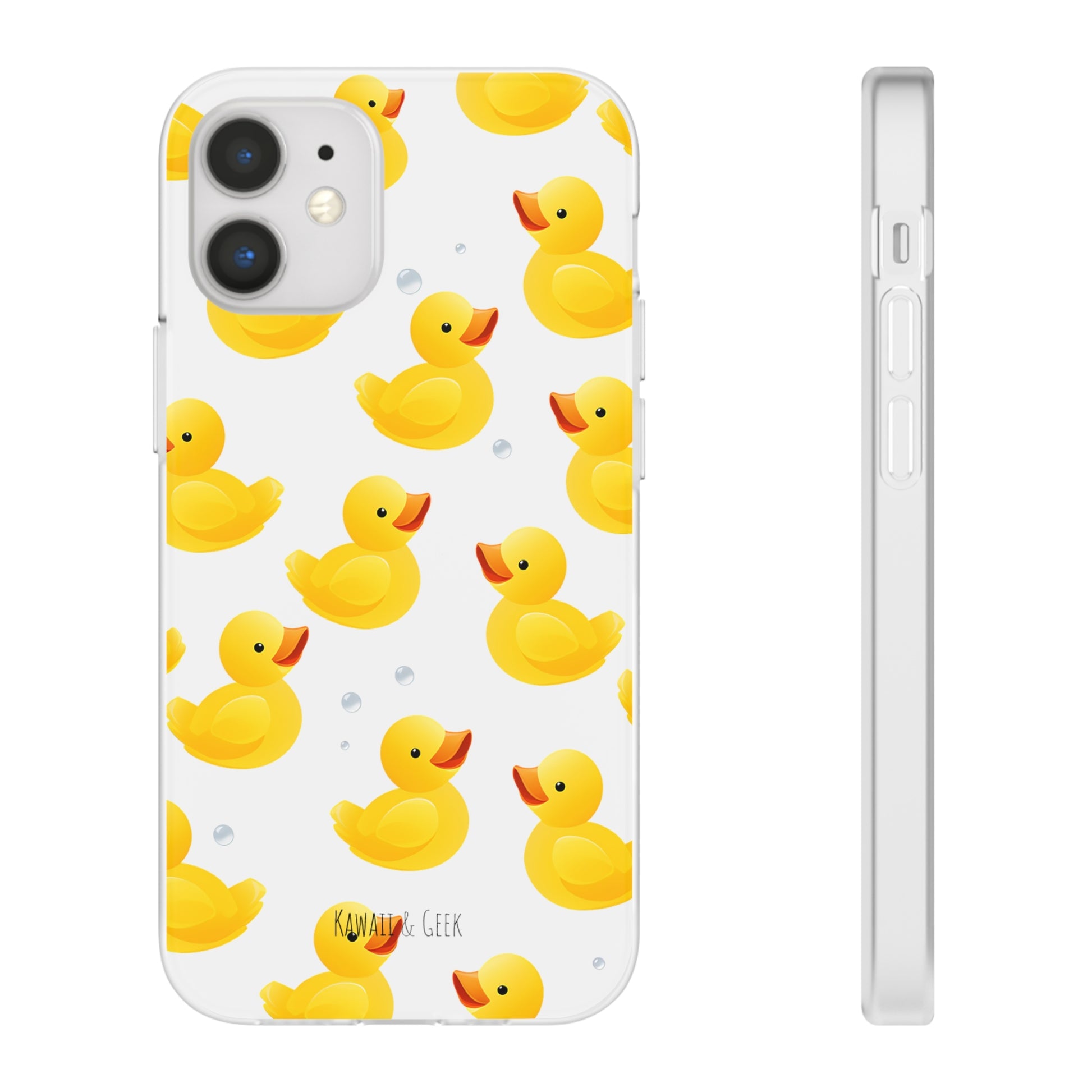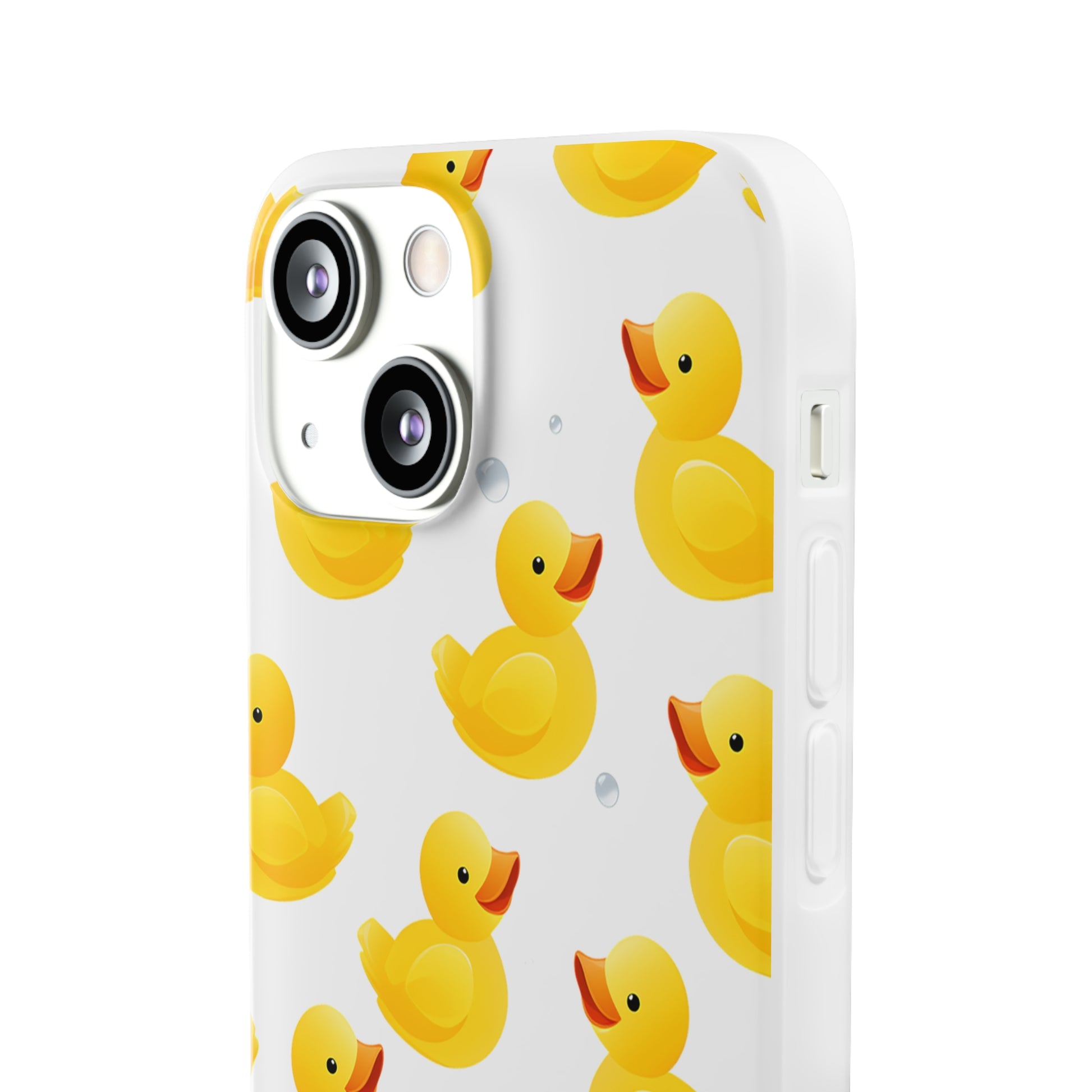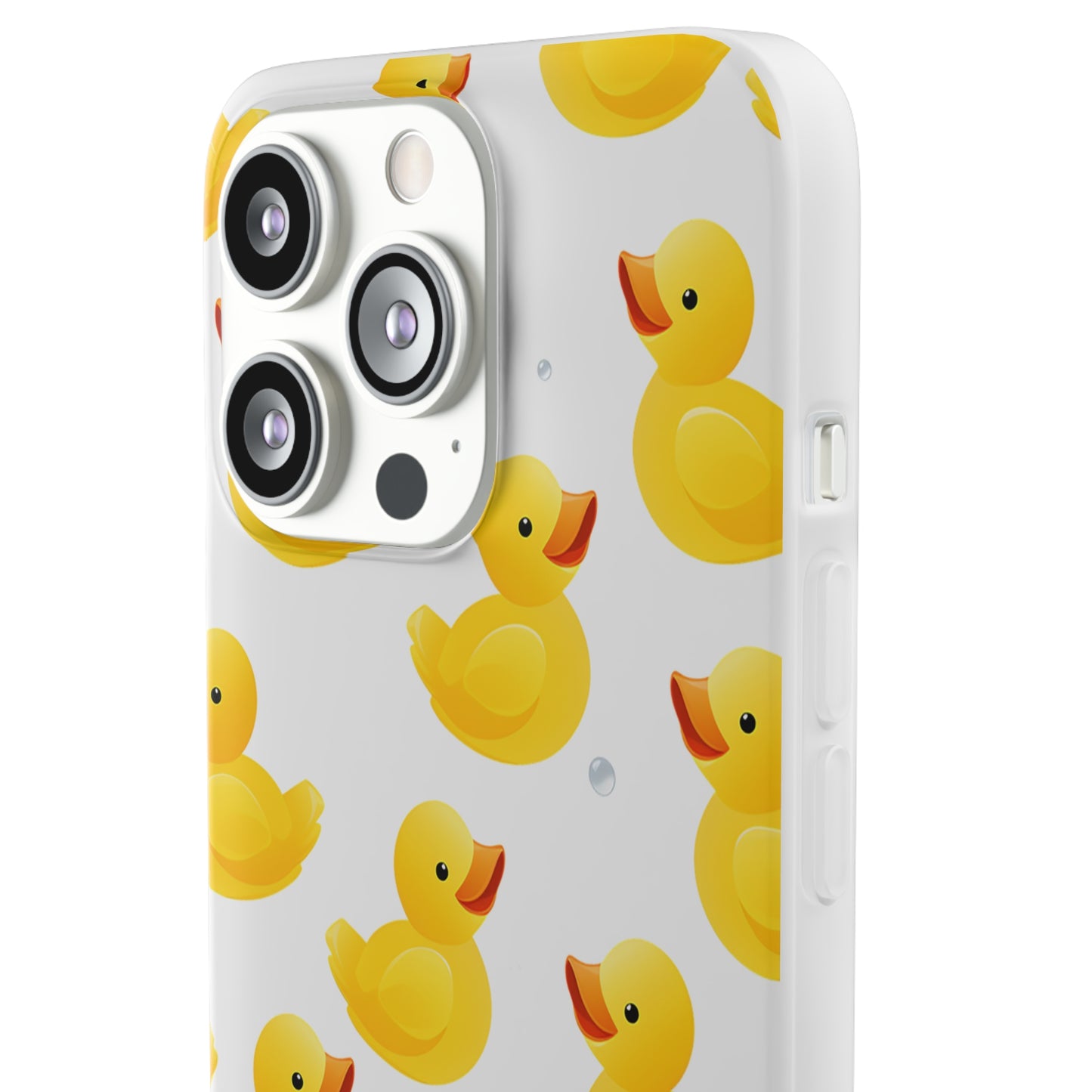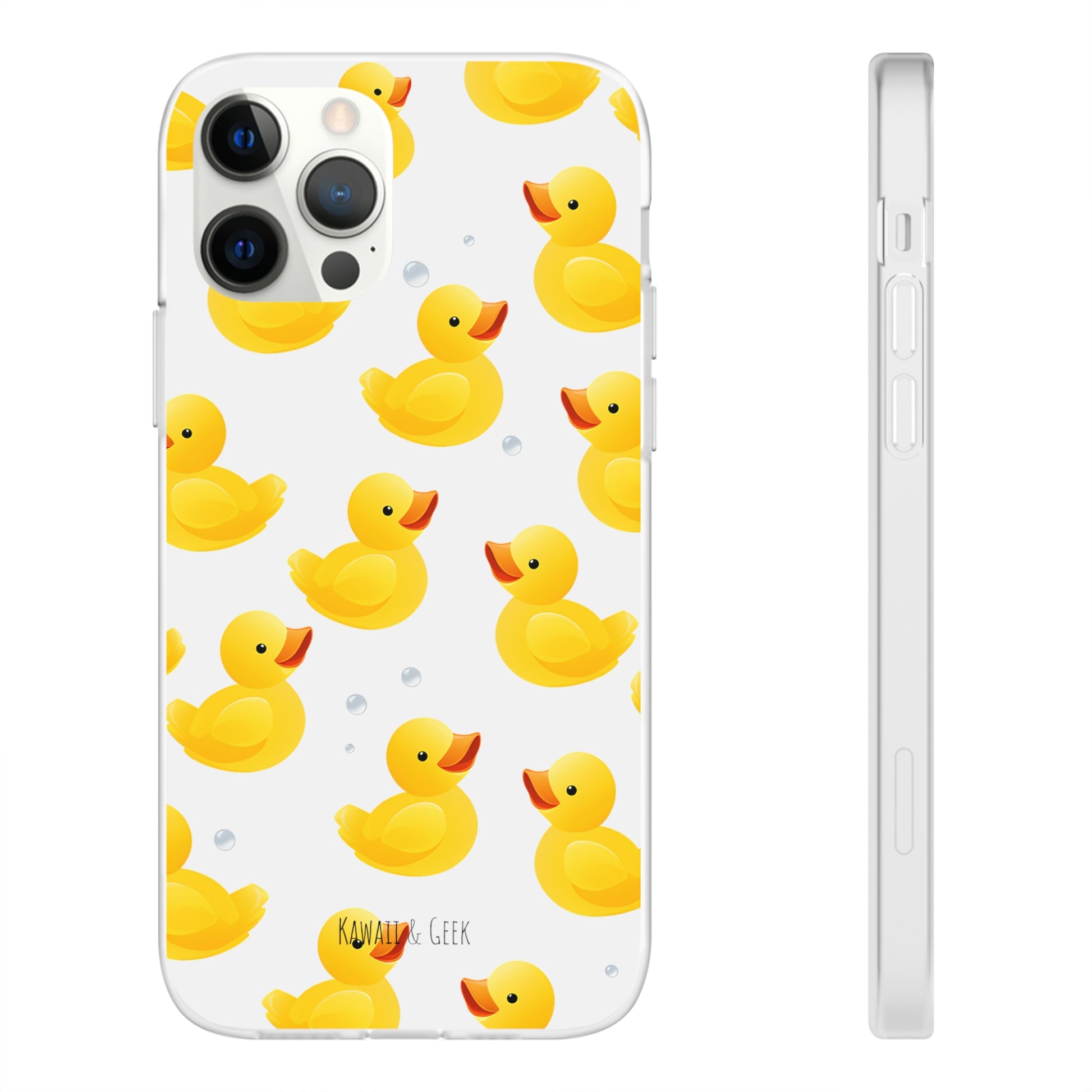 Keywords: Yellow duck case, Flexi phone cover, Transparent case, Playful design, Childhood nostalgia, Iconic ducks, Quirky style, Duck pattern, Premium protection, Retro vibe, Phone accessory, Classic design, Fun phone case.