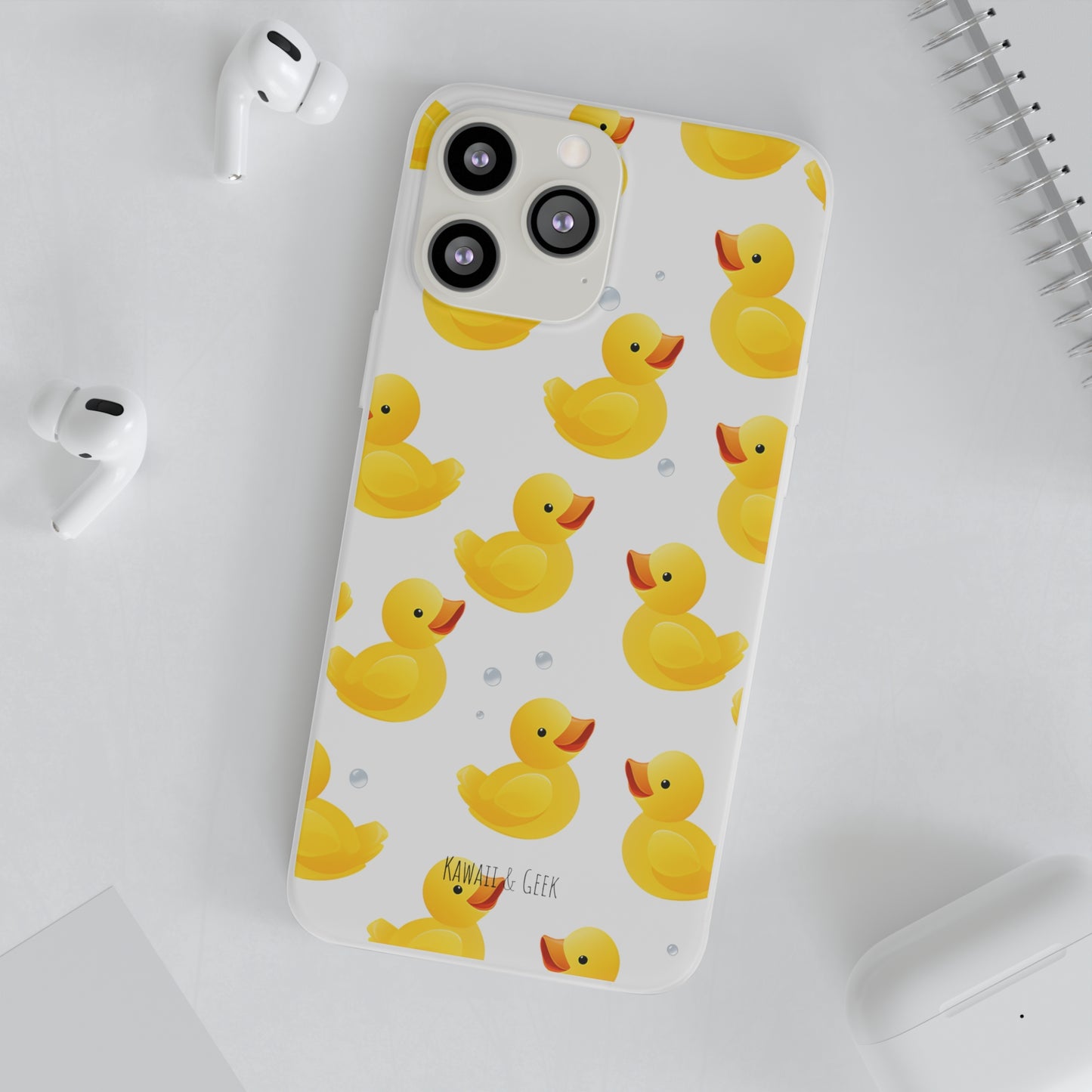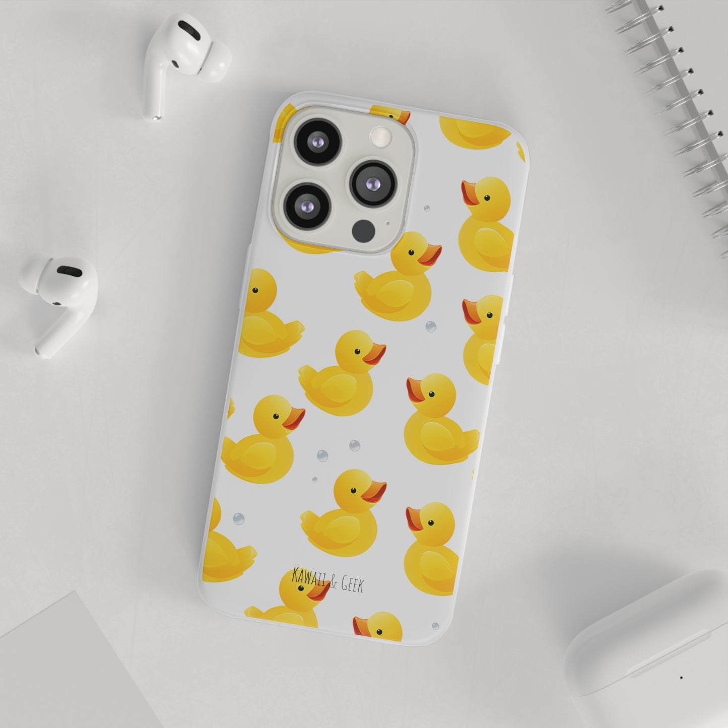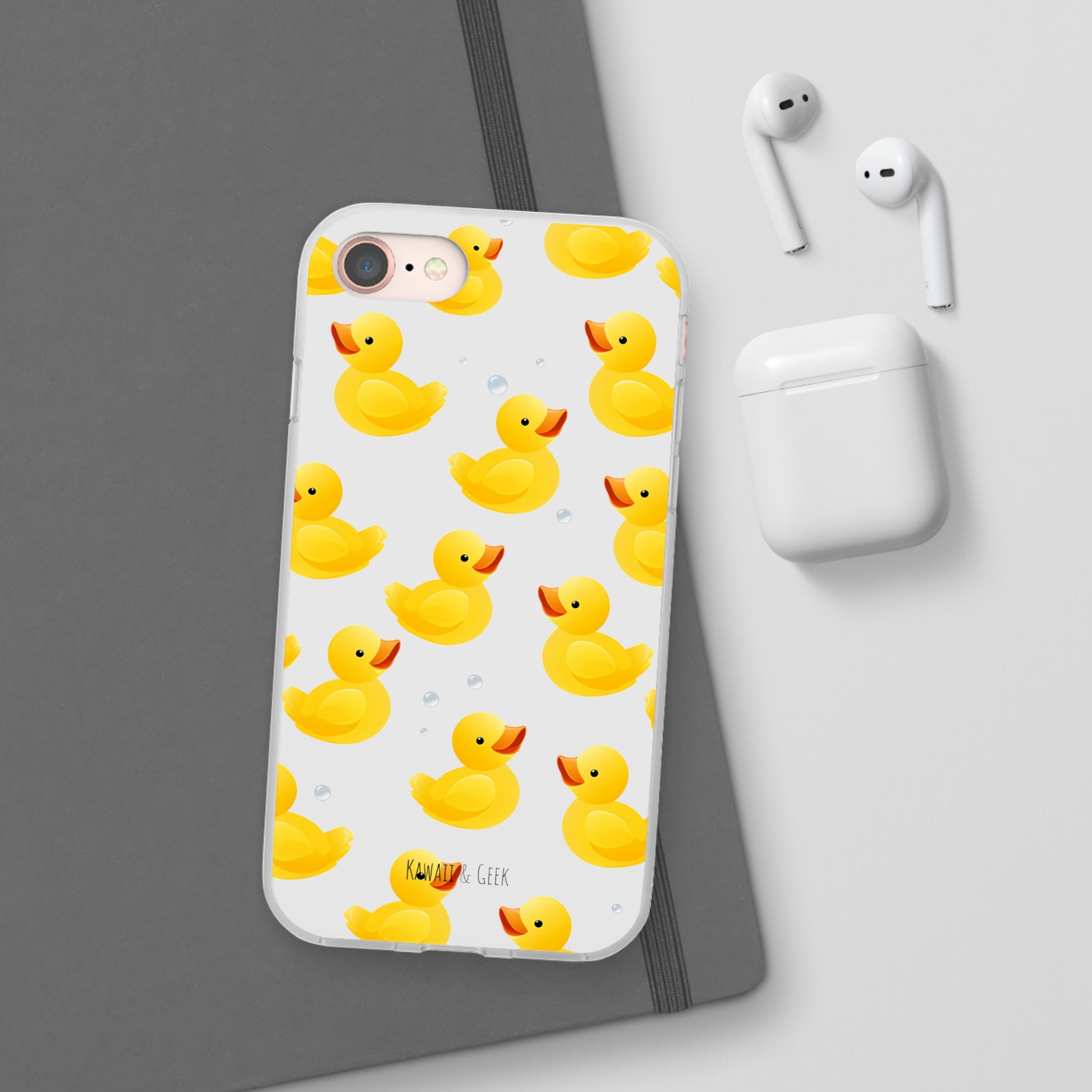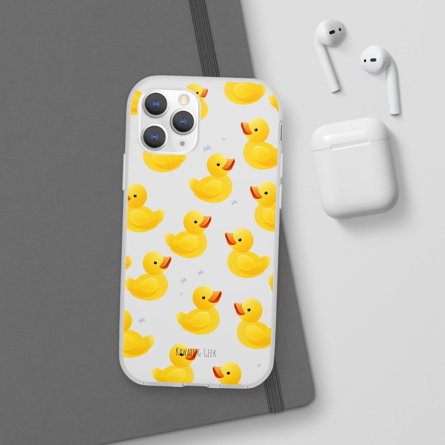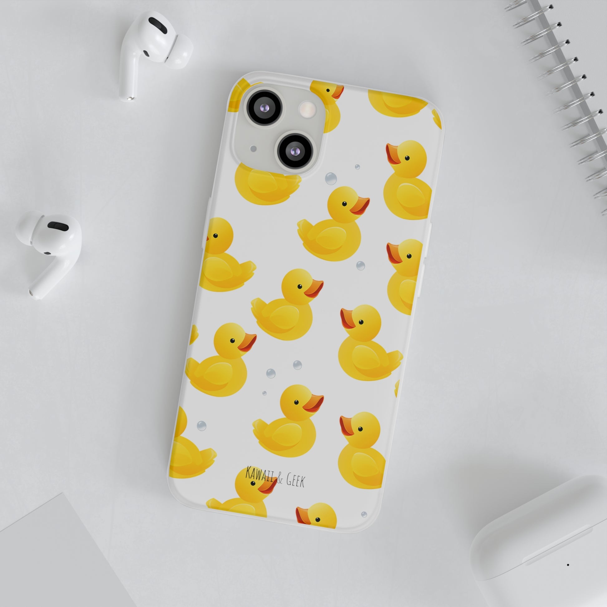 Keywords: Yellow duck case, Flexi phone cover, Transparent case, Playful design, Childhood nostalgia, Iconic ducks, Quirky style, Duck pattern, Premium protection, Retro vibe, Phone accessory, Classic design, Fun phone case.