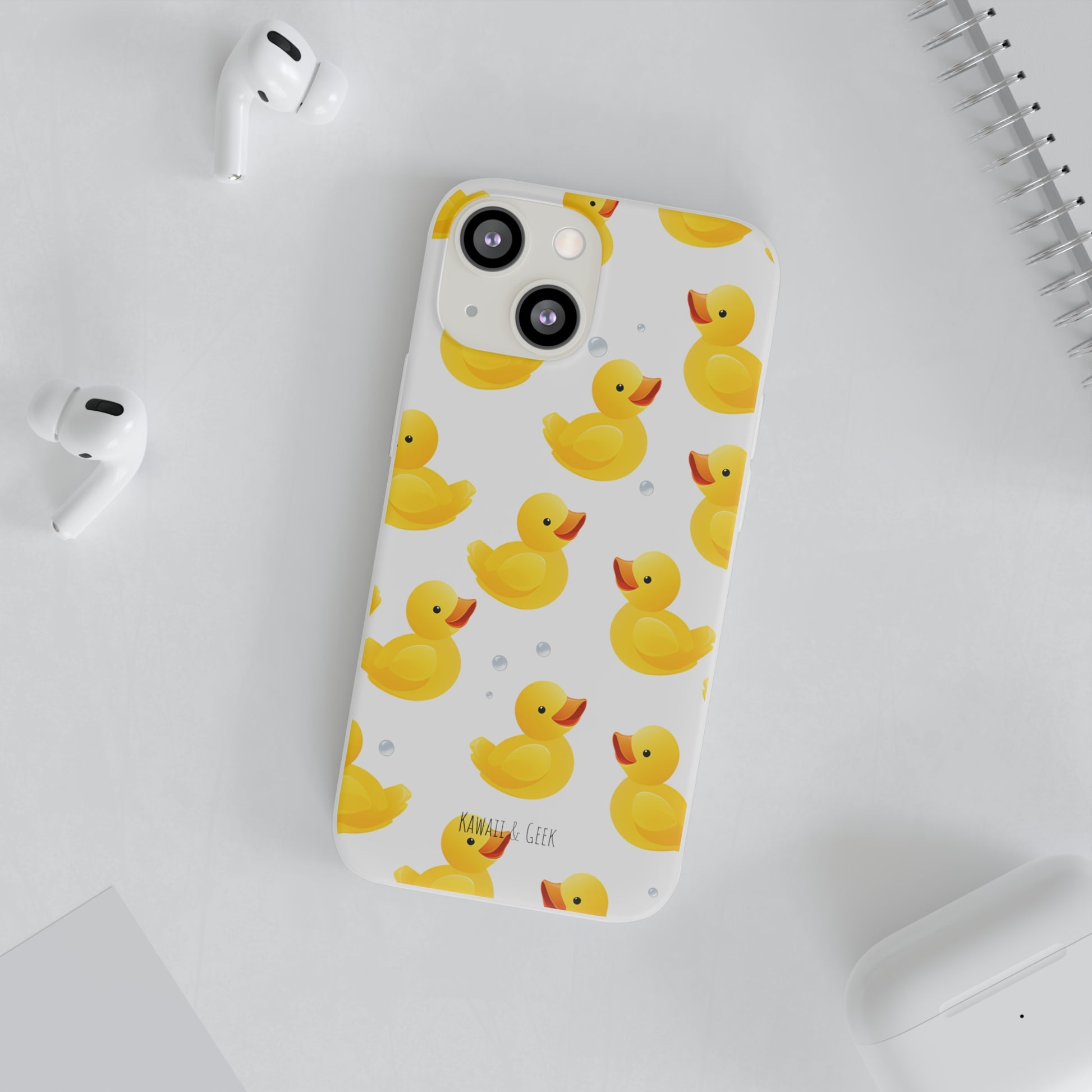 Introducing our delightfully quirky and vibrant Yellow Duck Flexi Phone Case, a design that evokes nostalgia and pure joy. Perfect for those who cherish a blend of playfulness and style, this case showcases iconic yellow plastic ducks, instantly recognizable and loved by many. Crafted from a flexible and semi-transparent material, this case offers an optimal balance between protection and sleek aesthetics, ensuring your device remains safe while flaunting its unique personality. Add a splash of color and whimsy to your phone with this standout piece!