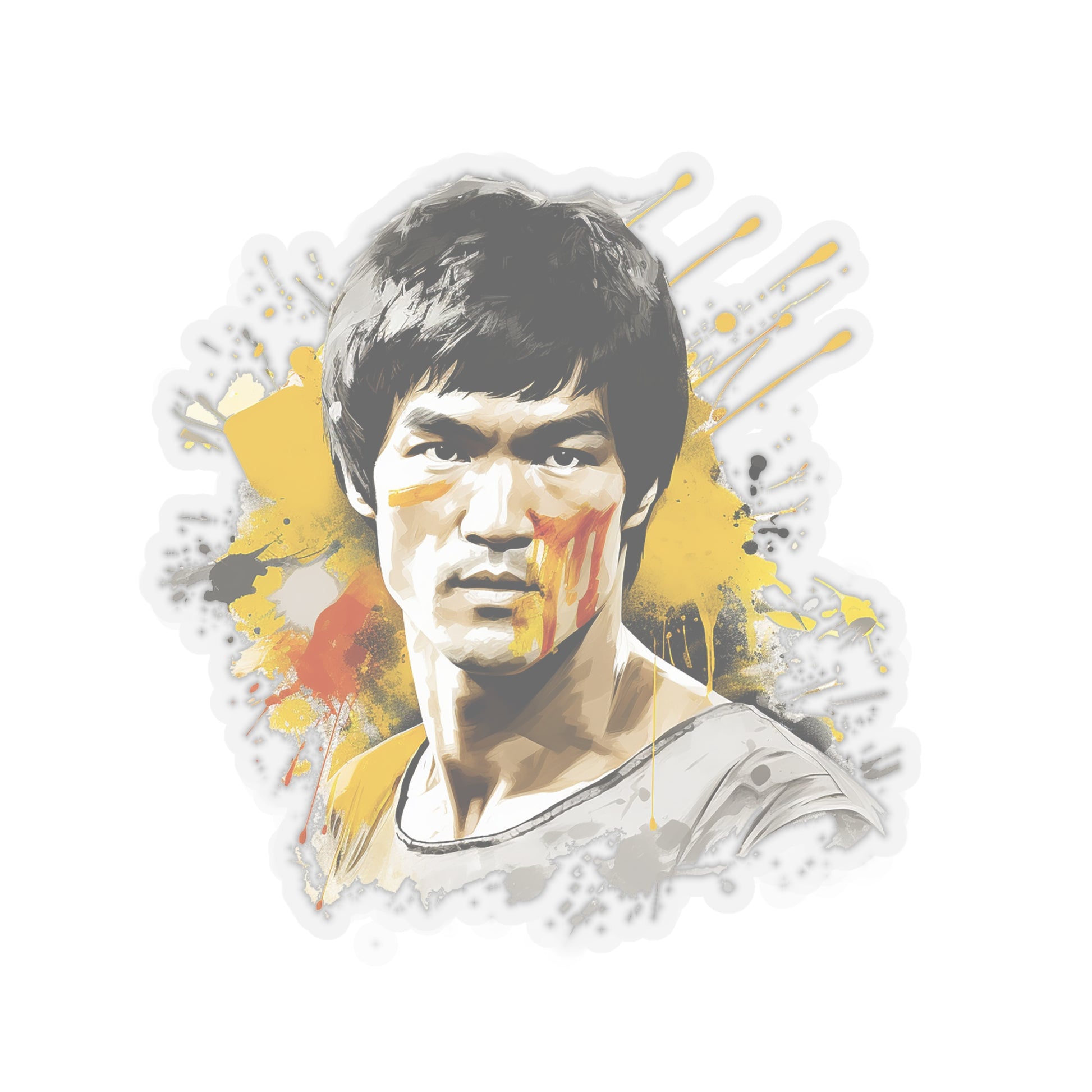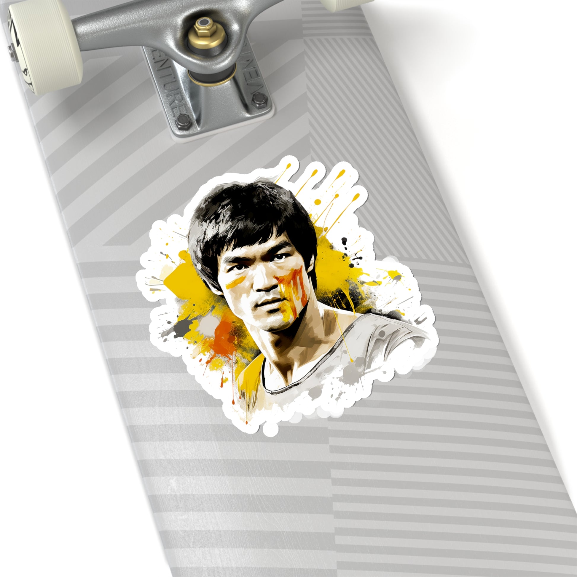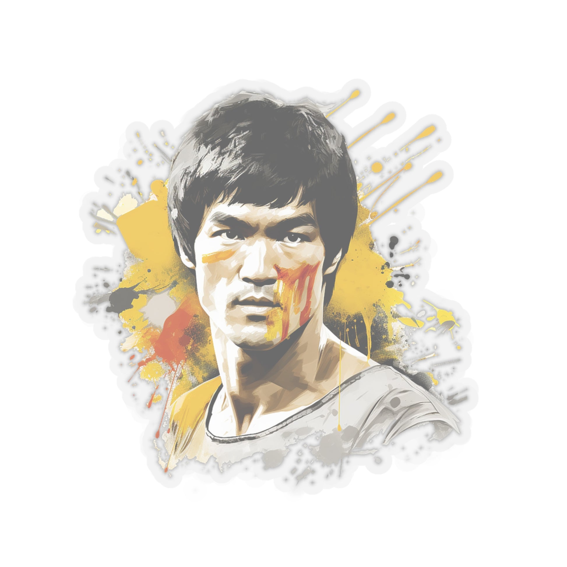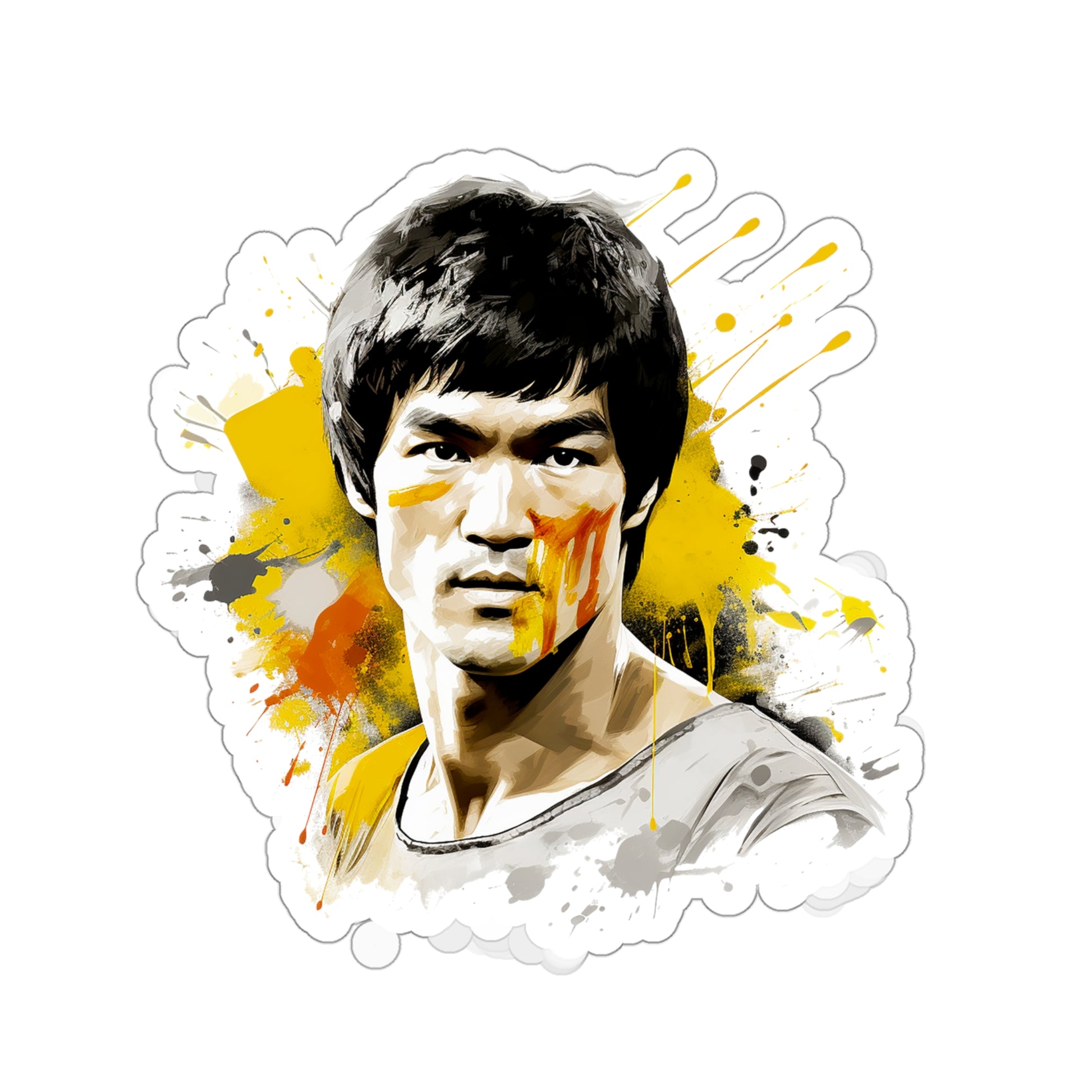 Keywords: Bruce Lee, Martial Arts, Watercolor Sticker, Film Legend, Iconic Design, Vintage Hero, Kung Fu Master, Cinematic Icon, Timeless Appeal, Martial Arts Decal, Action Star, Classic Movie, Dynamic Pose.