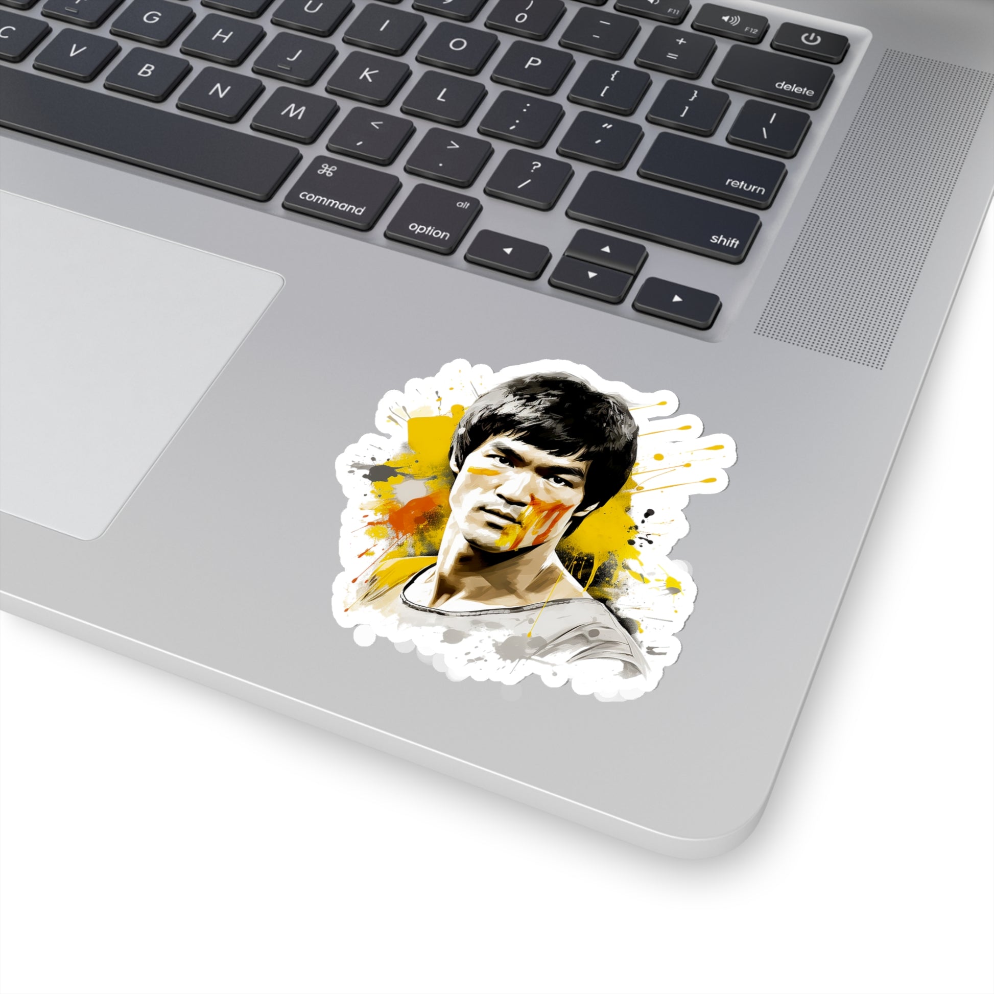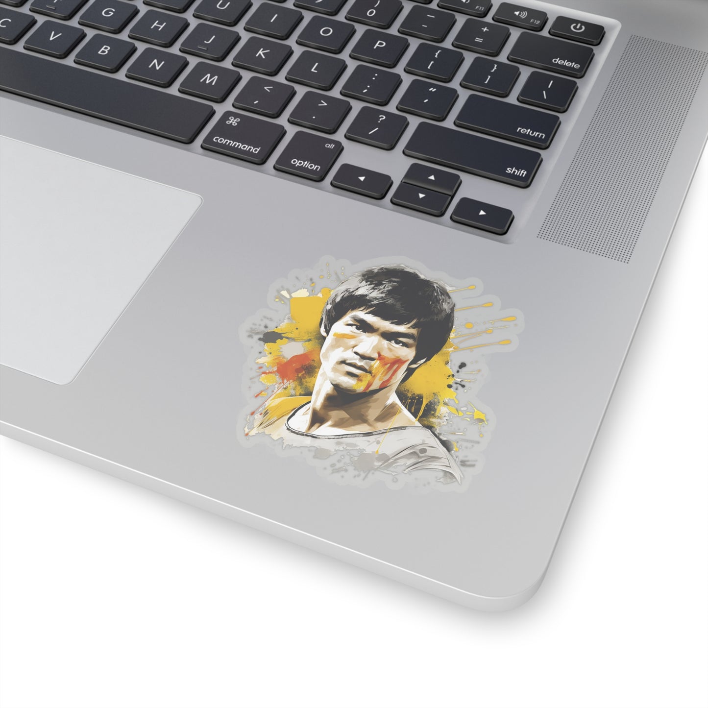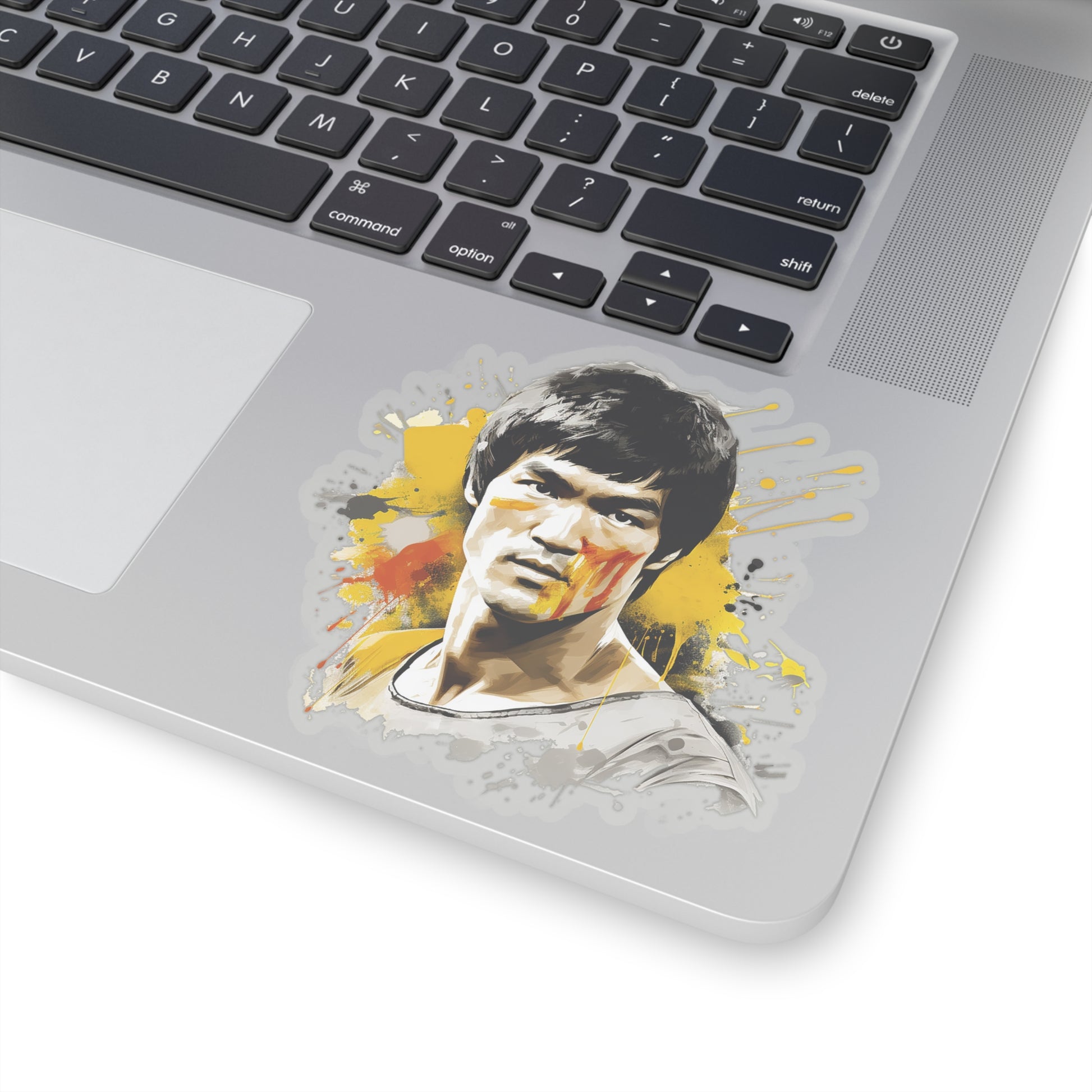 Keywords: Bruce Lee, Martial Arts, Watercolor Sticker, Film Legend, Iconic Design, Vintage Hero, Kung Fu Master, Cinematic Icon, Timeless Appeal, Martial Arts Decal, Action Star, Classic Movie, Dynamic Pose.