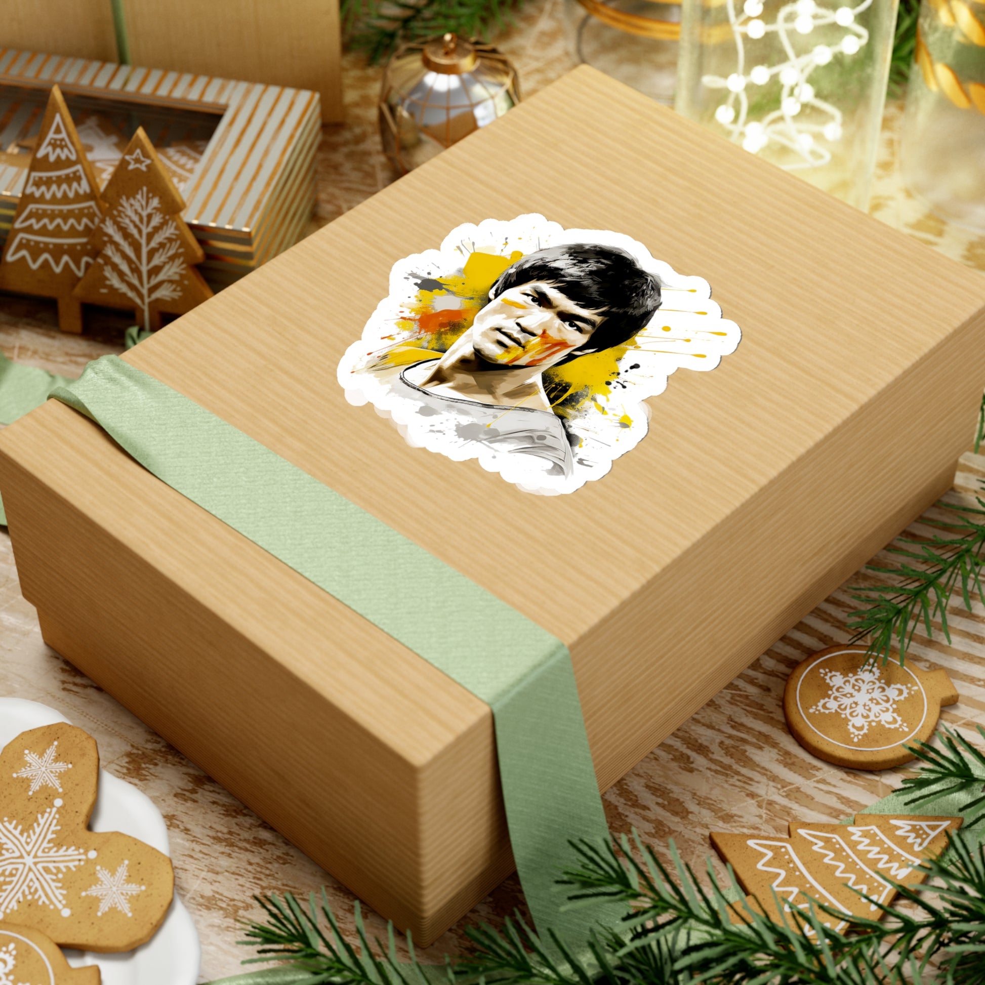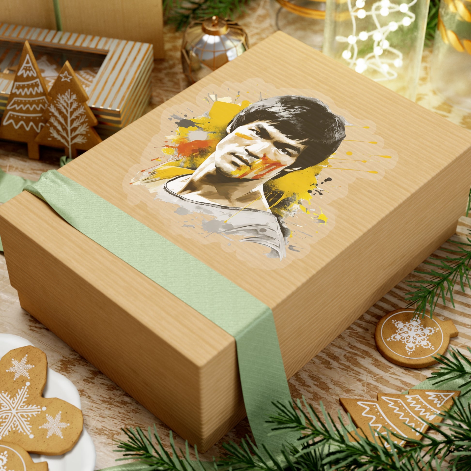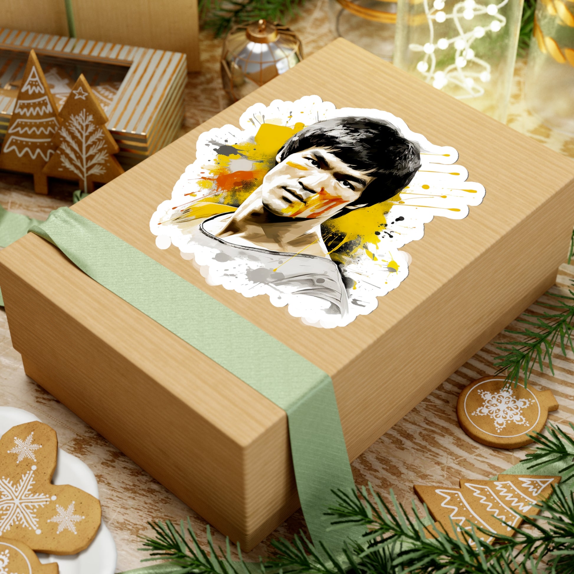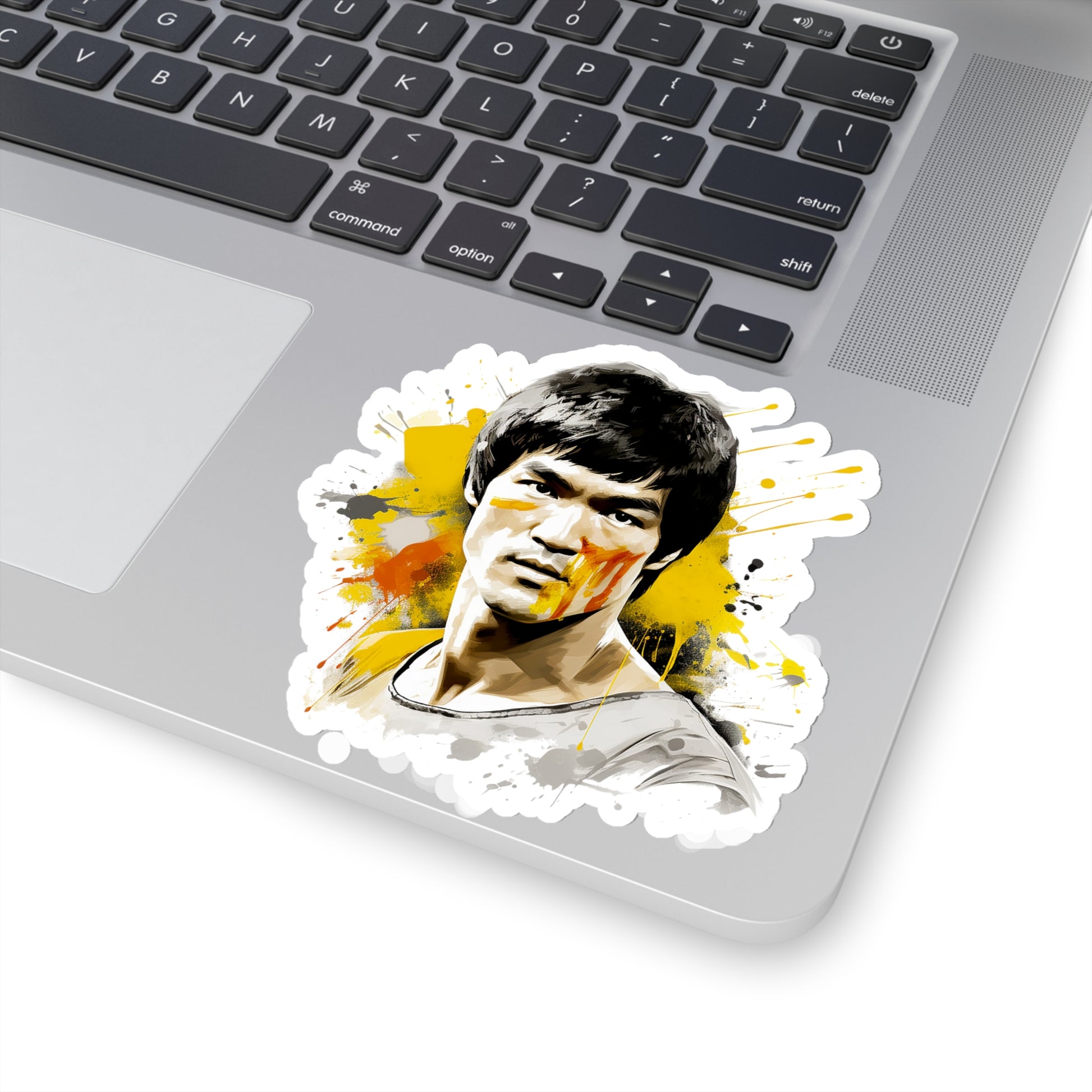 Keywords: Bruce Lee, Martial Arts, Watercolor Sticker, Film Legend, Iconic Design, Vintage Hero, Kung Fu Master, Cinematic Icon, Timeless Appeal, Martial Arts Decal, Action Star, Classic Movie, Dynamic Pose.