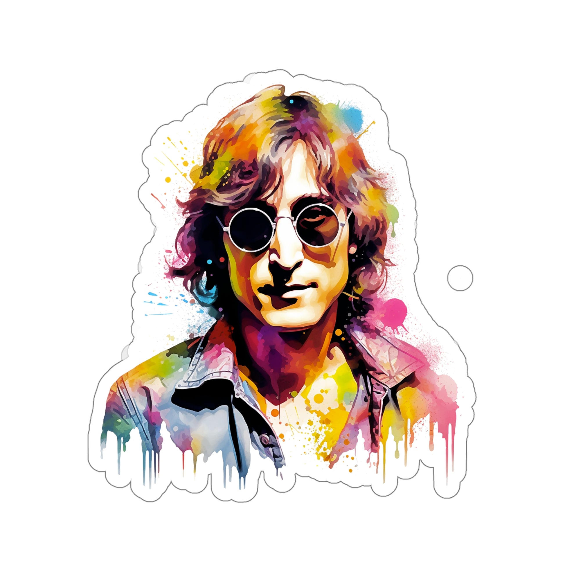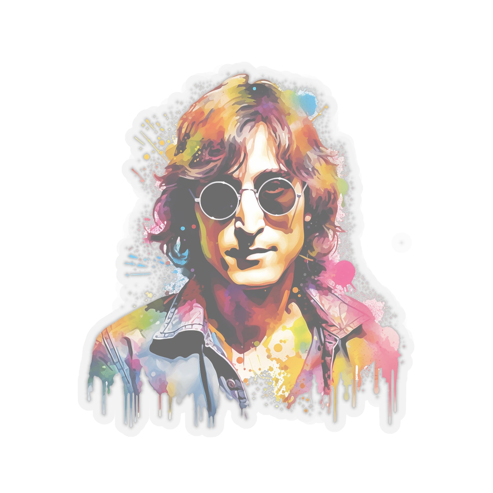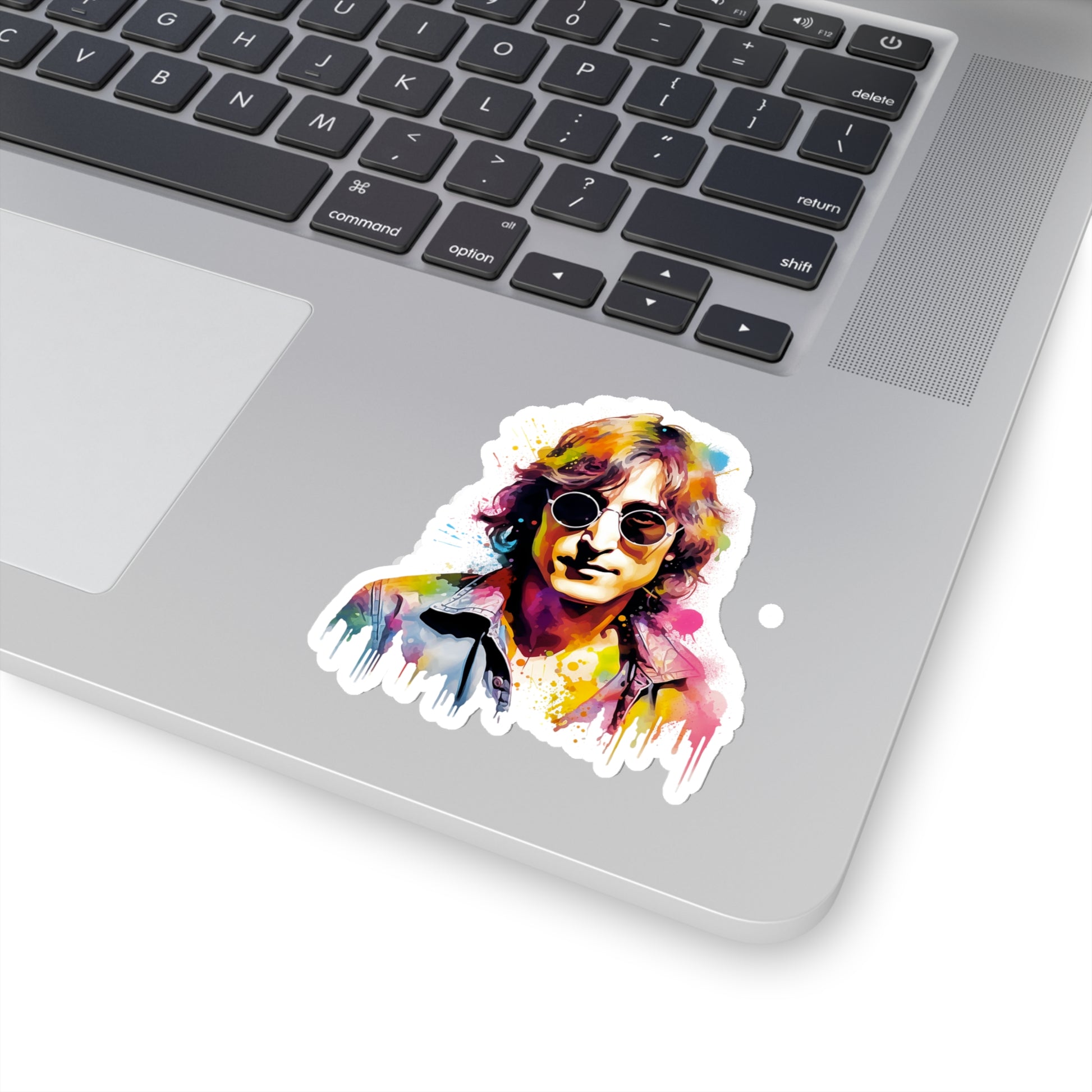 Keywords: John Lennon, Watercolor Art, Music Icon, Beatle Sticker, Artistic Design, Retro Music, Lennon Portrait, Classic Rock, Vinyl Decor, Notebook Accessory, Legendary Artist, Music Sticker, Peace Sign.