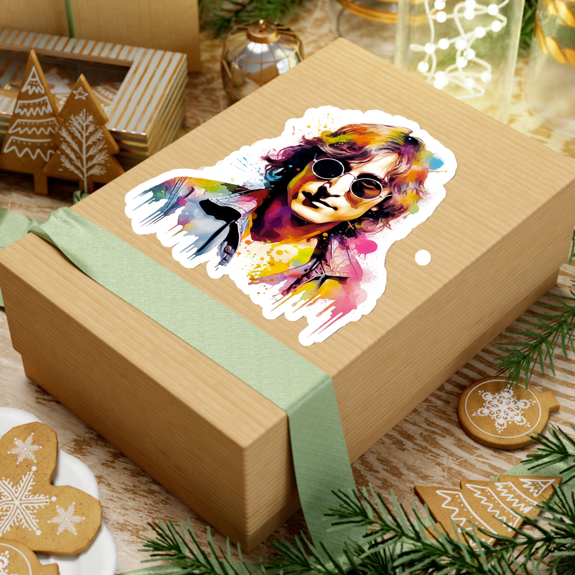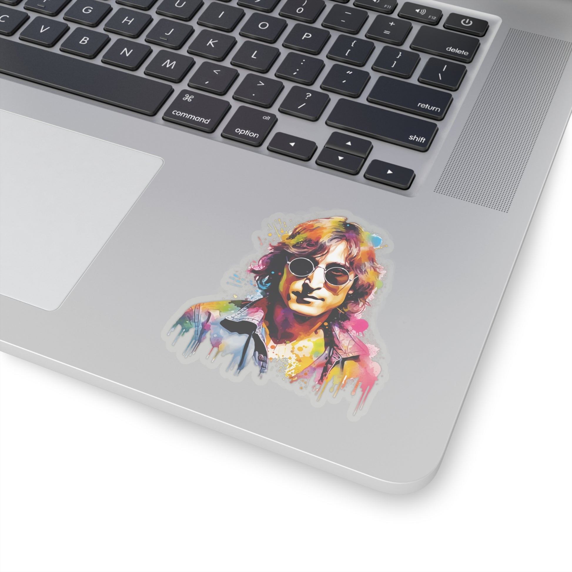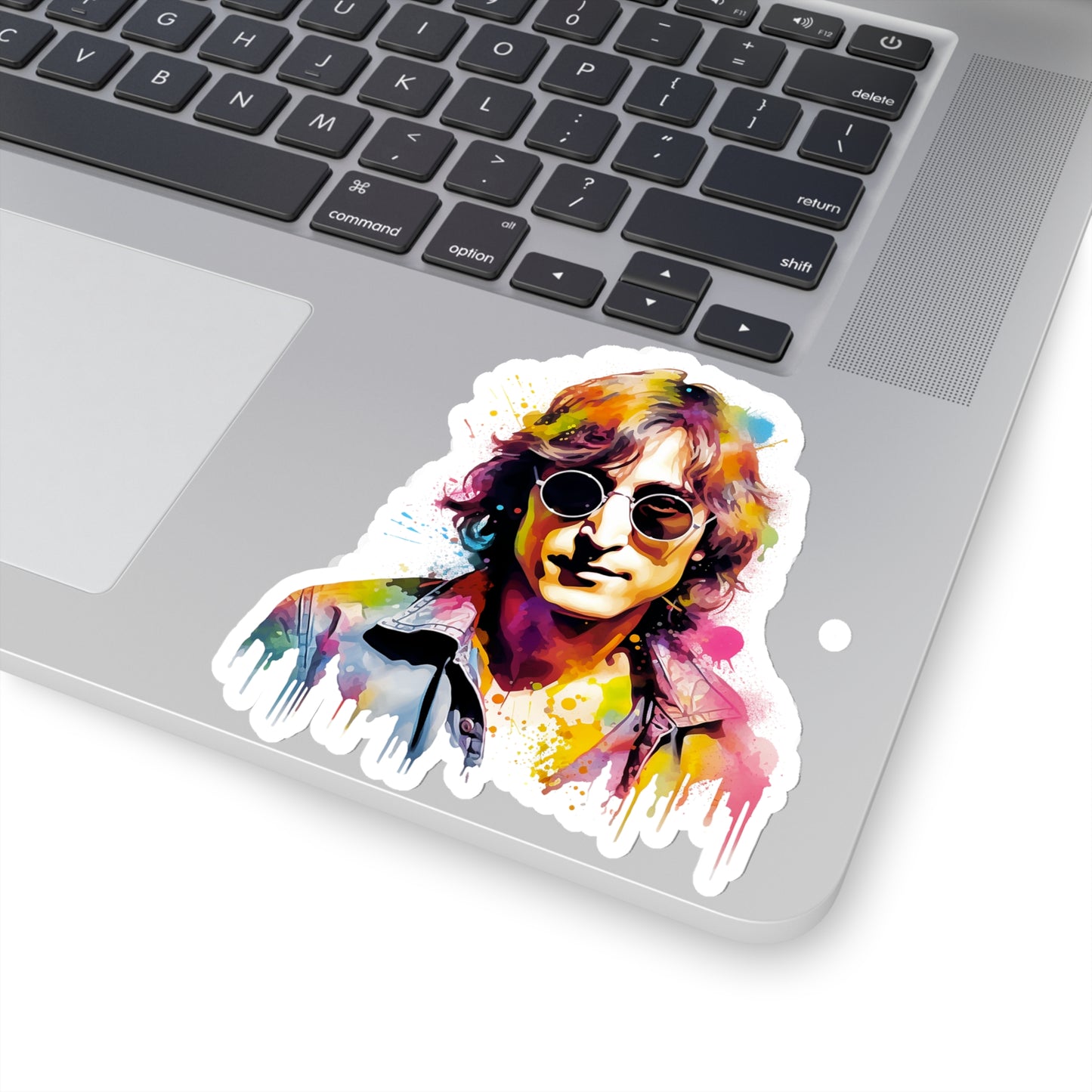 Keywords: John Lennon, Watercolor Art, Music Icon, Beatle Sticker, Artistic Design, Retro Music, Lennon Portrait, Classic Rock, Vinyl Decor, Notebook Accessory, Legendary Artist, Music Sticker, Peace Sign.