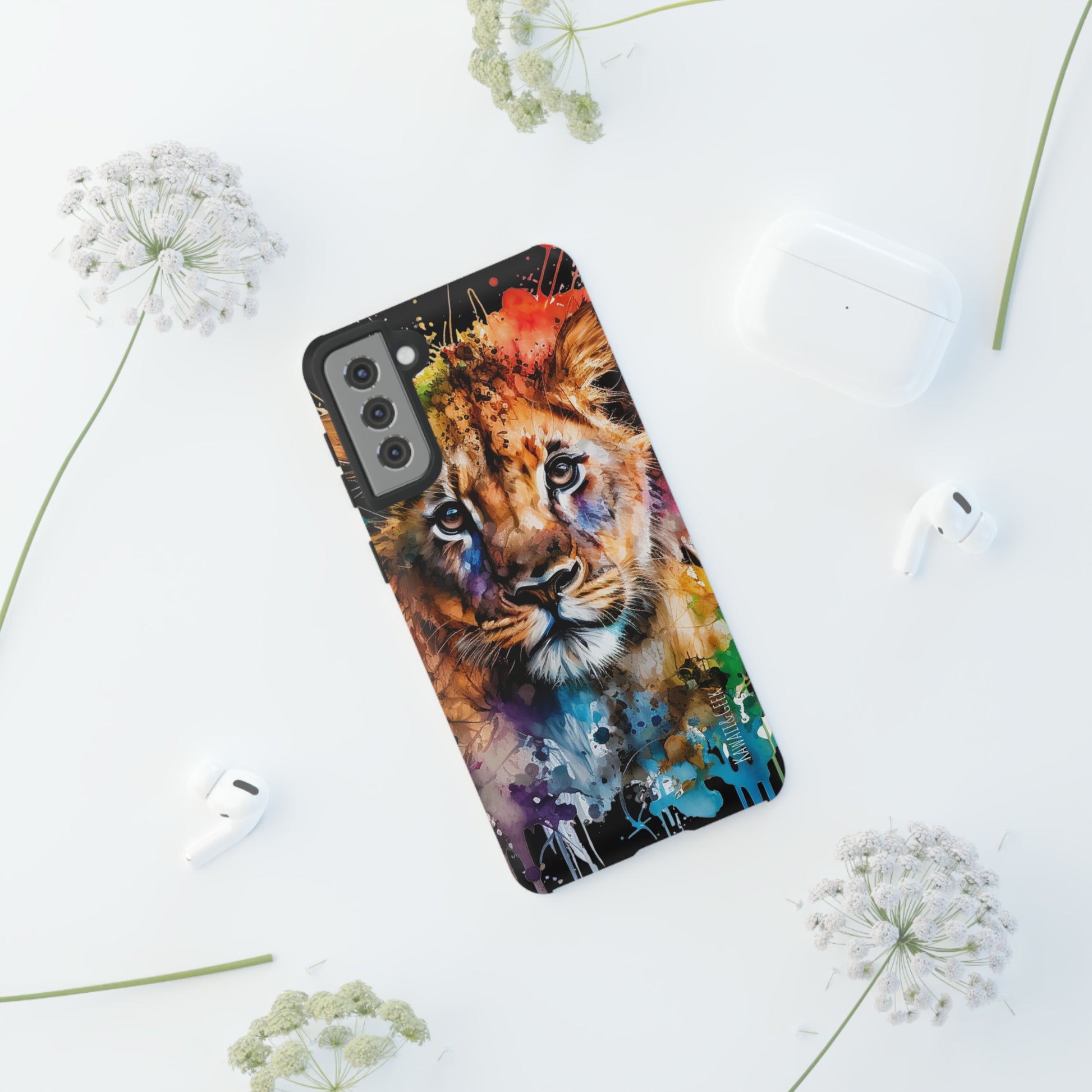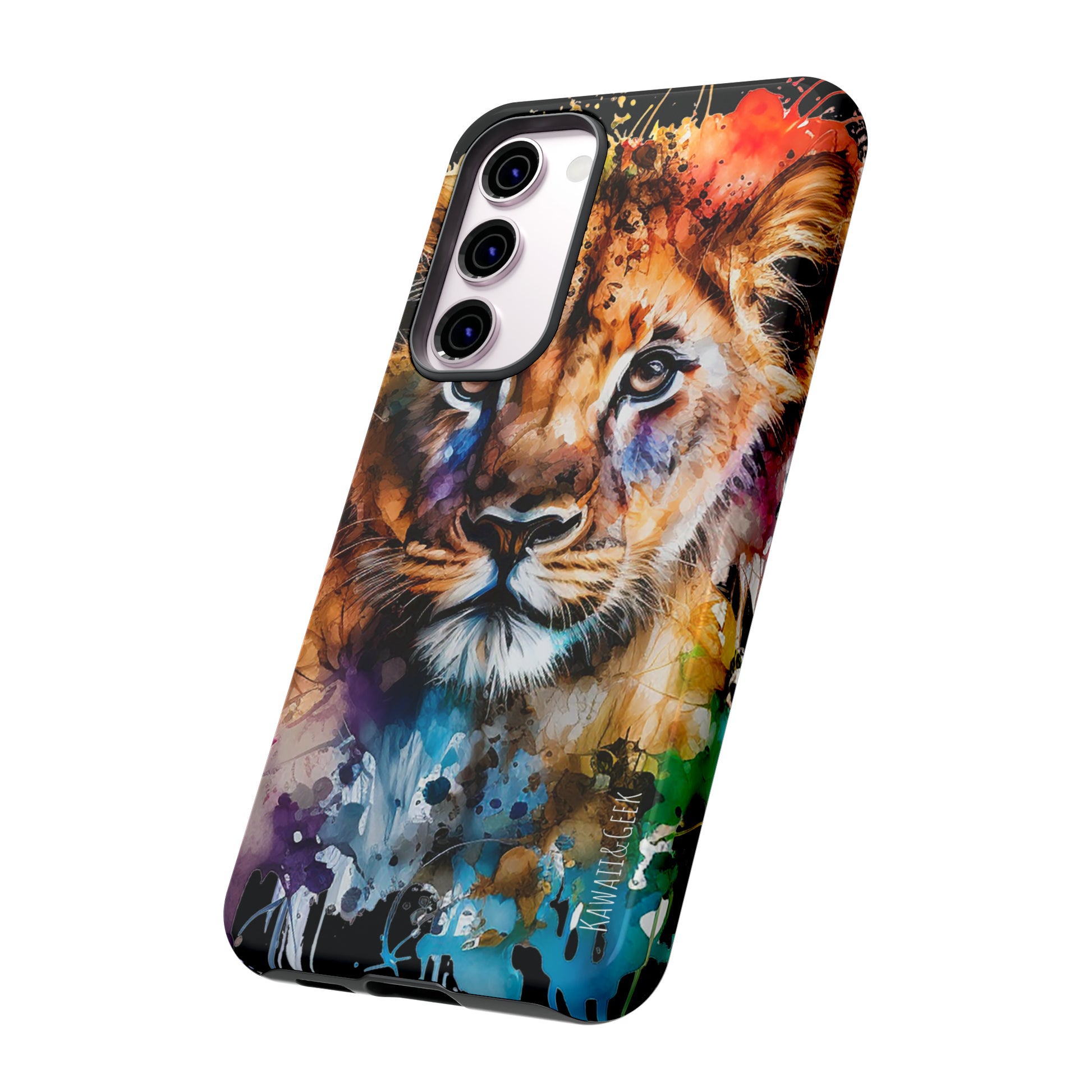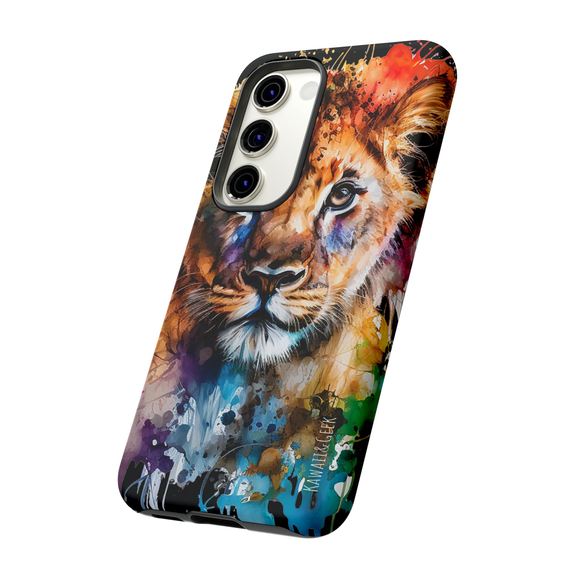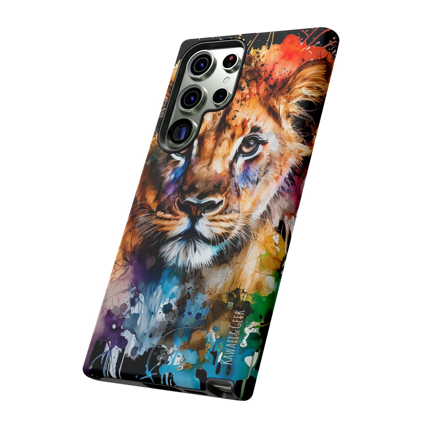 lion cub phone case, watercolor case, premium lion cover, cute animal case, artistic phone skin, wildlife phone case, adorable lion design, luxury phone accessory, stylish case, unique phone protect, watercolor art, lion art case, nature-inspired cover.