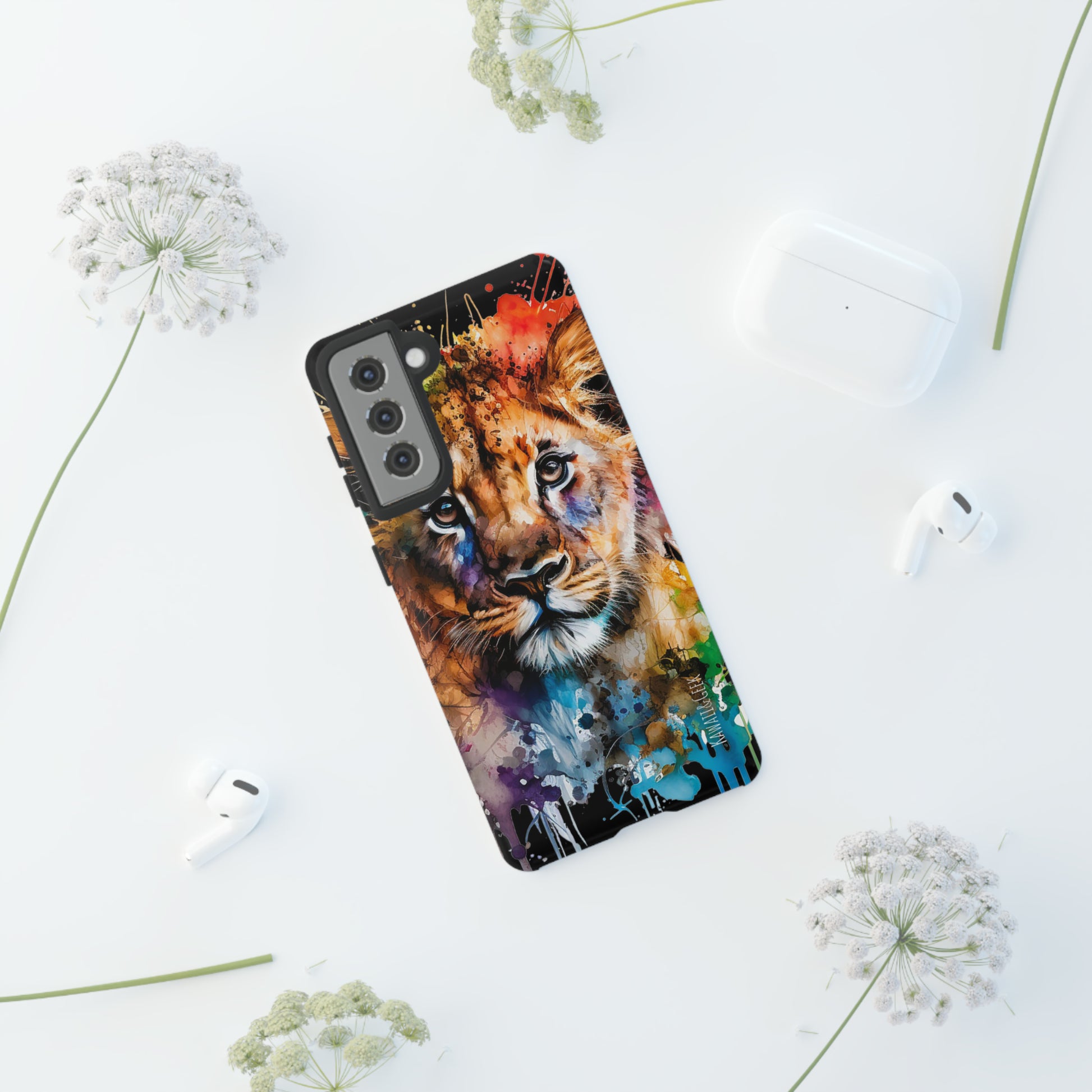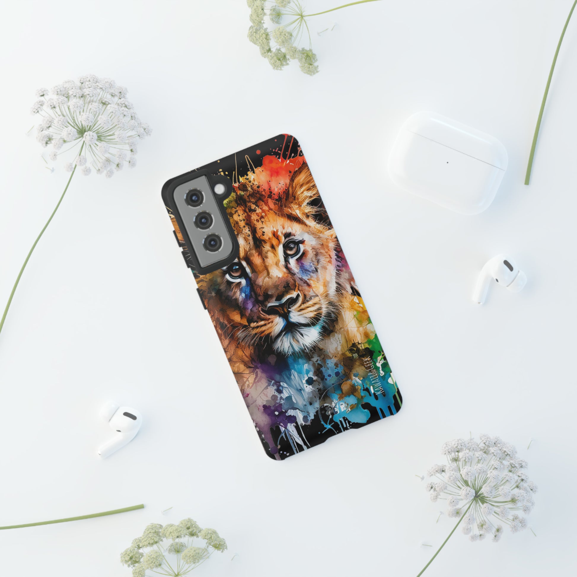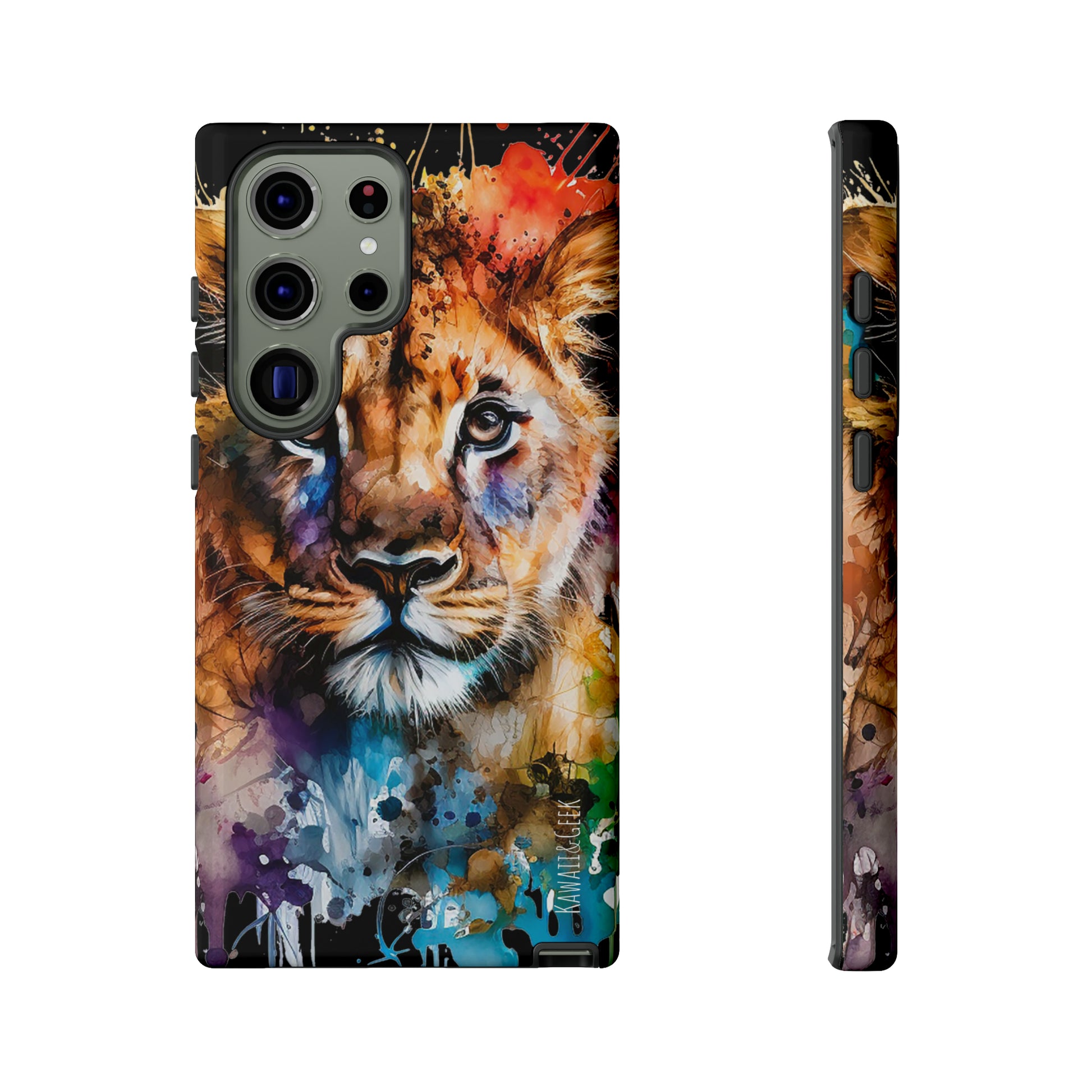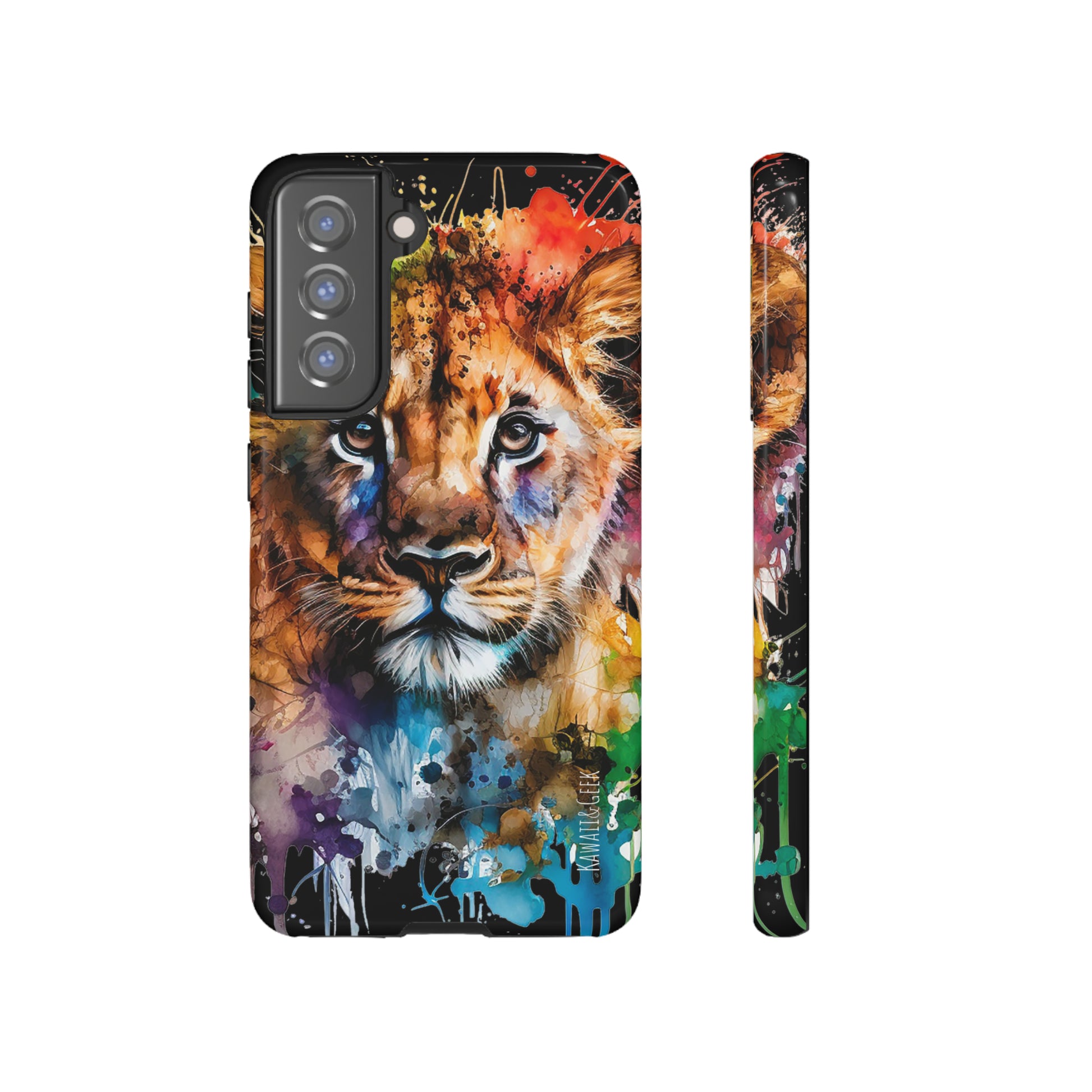 lion cub phone case, watercolor case, premium lion cover, cute animal case, artistic phone skin, wildlife phone case, adorable lion design, luxury phone accessory, stylish case, unique phone protect, watercolor art, lion art case, nature-inspired cover.
