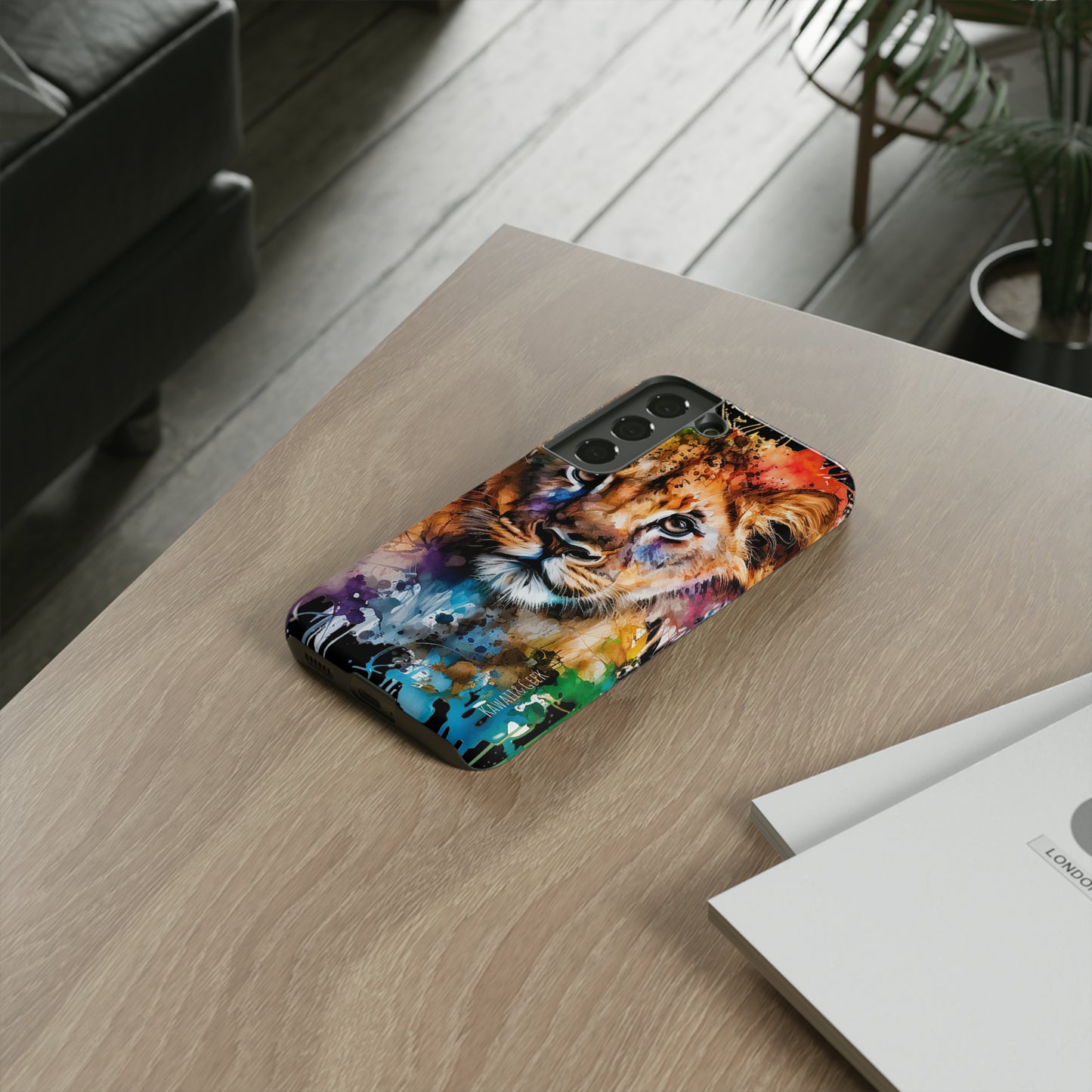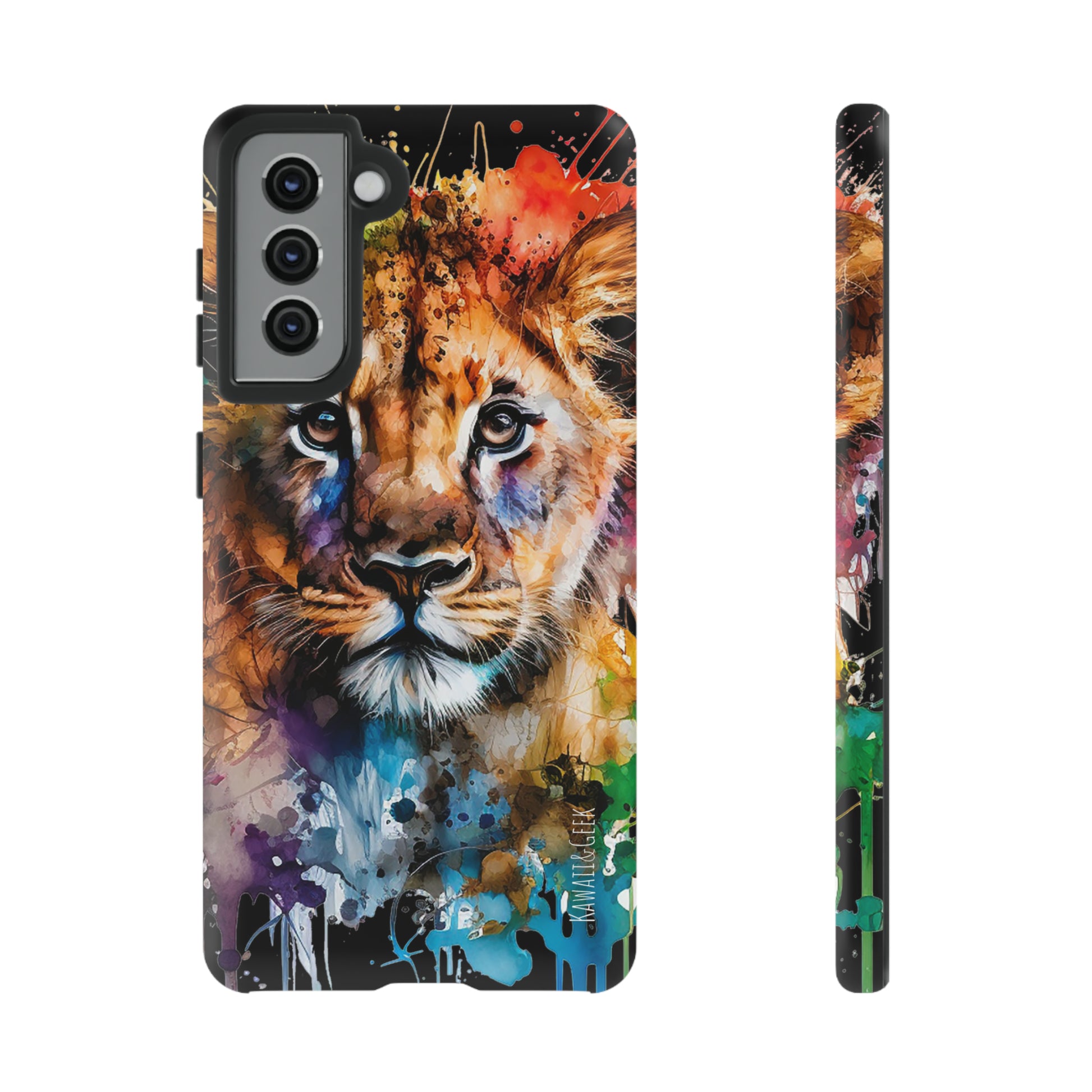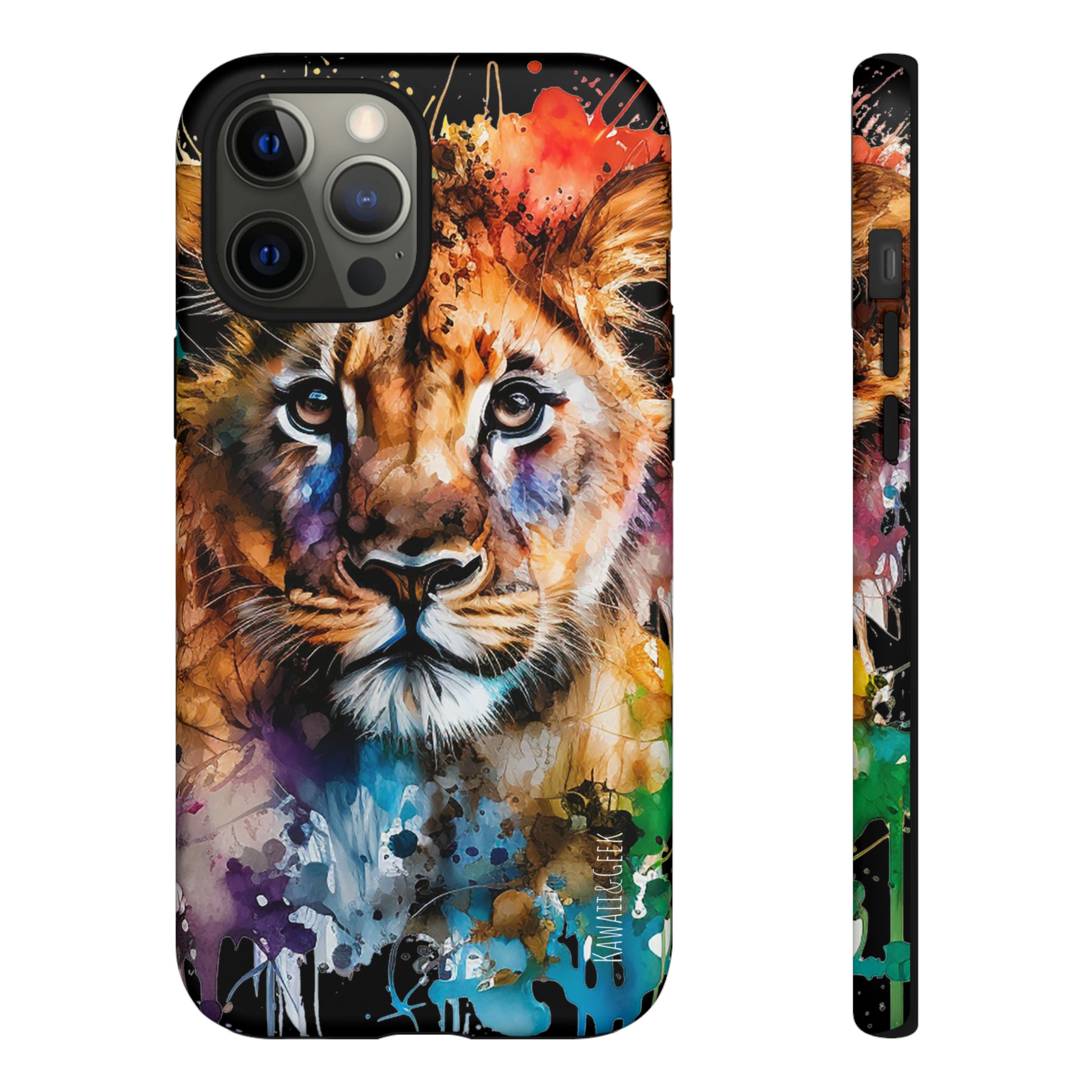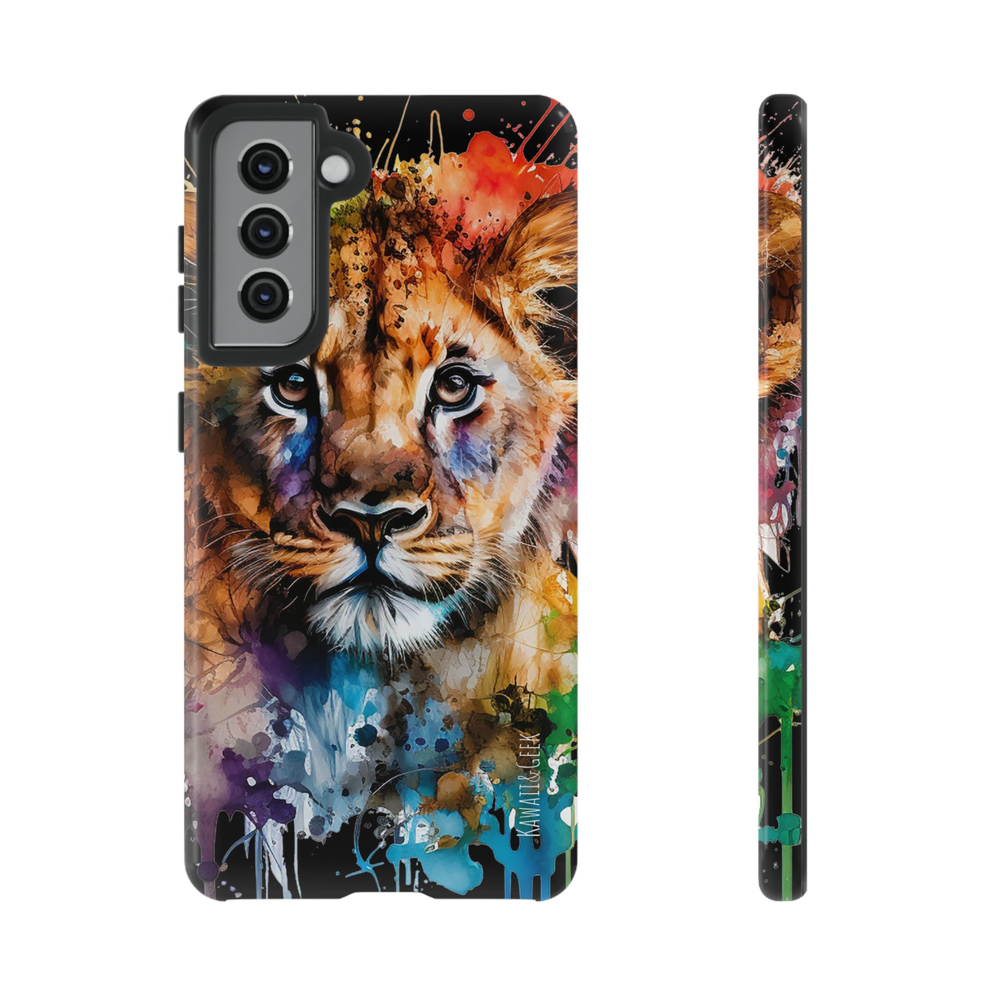 lion cub phone case, watercolor case, premium lion cover, cute animal case, artistic phone skin, wildlife phone case, adorable lion design, luxury phone accessory, stylish case, unique phone protect, watercolor art, lion art case, nature-inspired cover.
