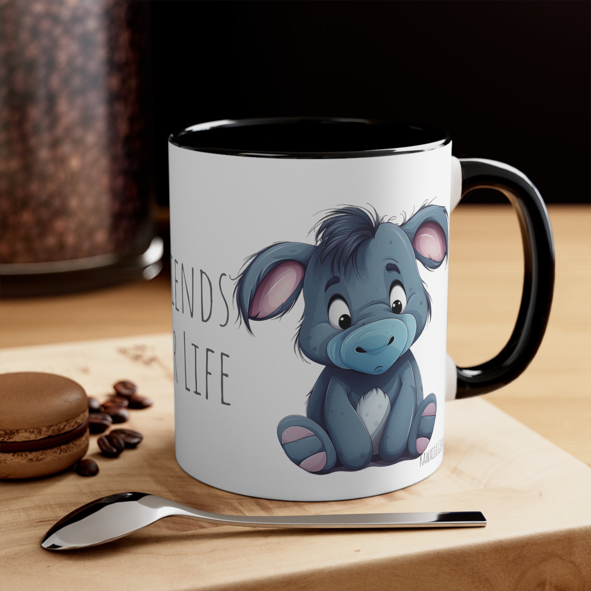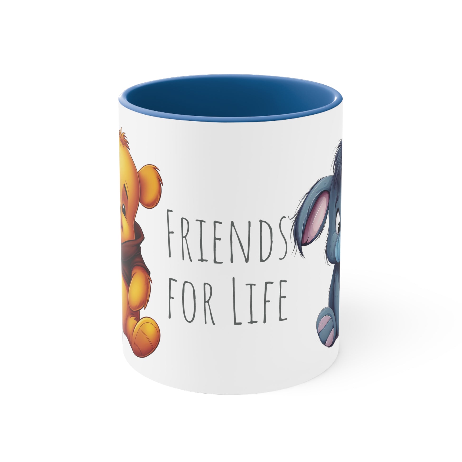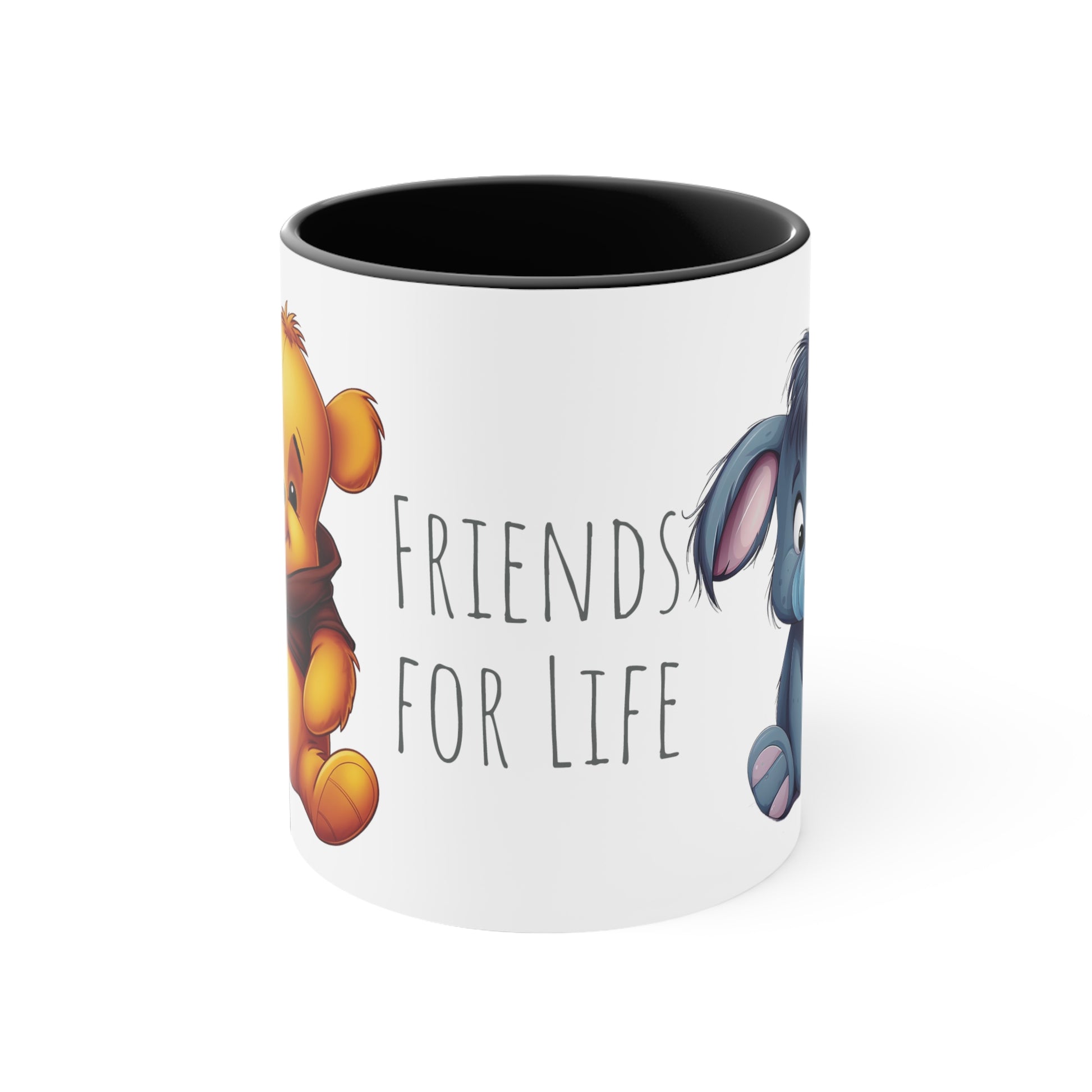 Embrace the heartwarming bond of friendship with this 11 oz bicolor mug featuring the adorable Winnie the Pooh and Eeyore. Adorned with the phrase "Friends for Life," this mug captures the joy and warmth of their enduring companionship. Sip your favorite beverage and let the charm of Winnie the Pooh and Eeyore brighten your day. Get your Winnie the Pooh and Eeyore Bicolor Mug today and celebrate the magic of lifelong friendship.