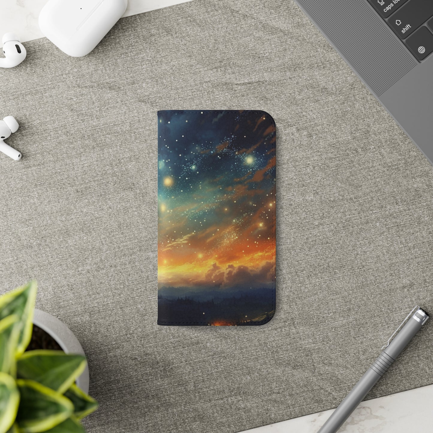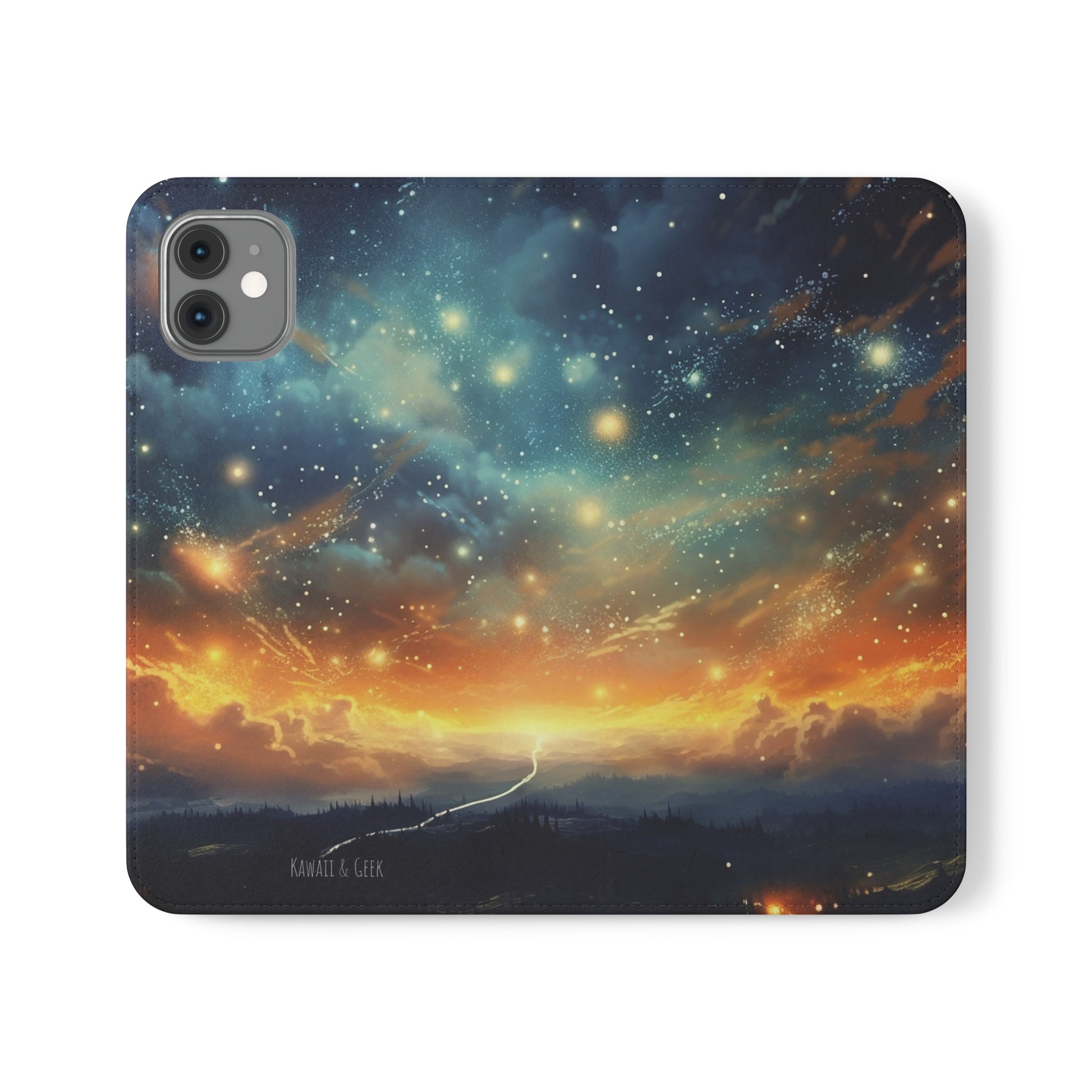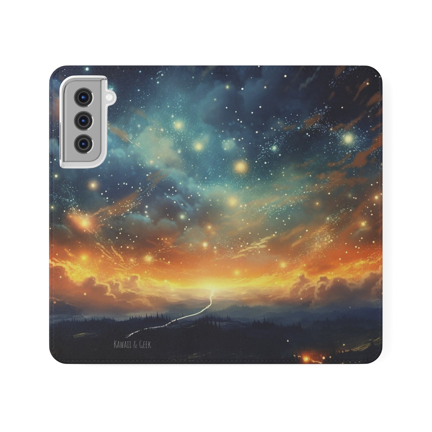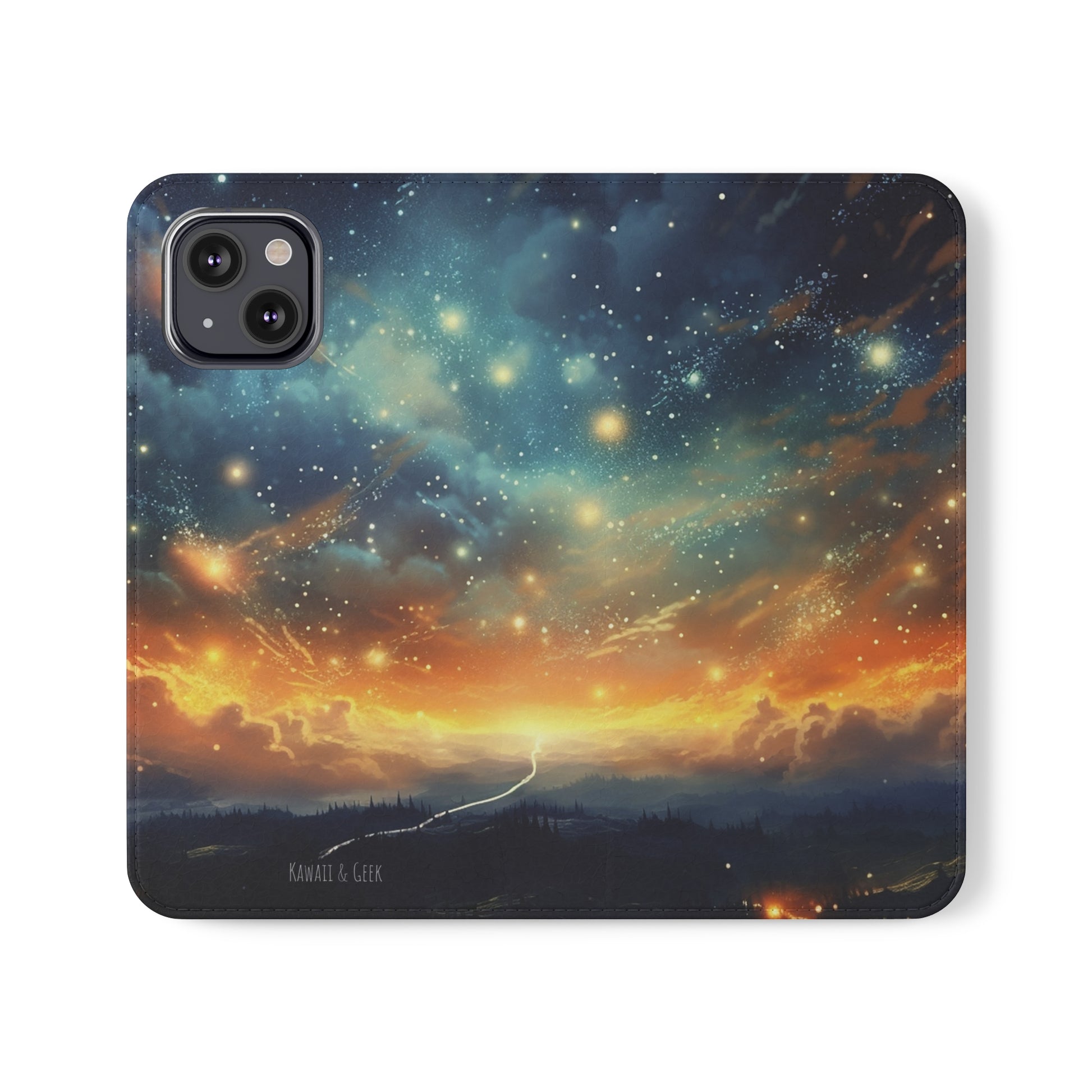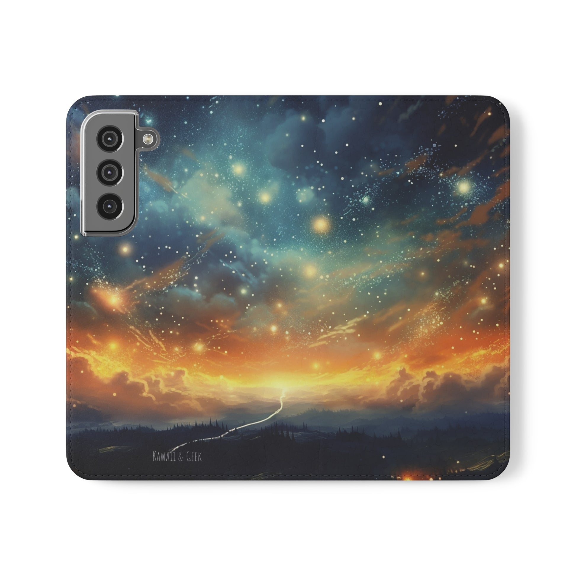Wonderful Starry Night Flip Phone Case - Embrace the Beauty of the Night Sky