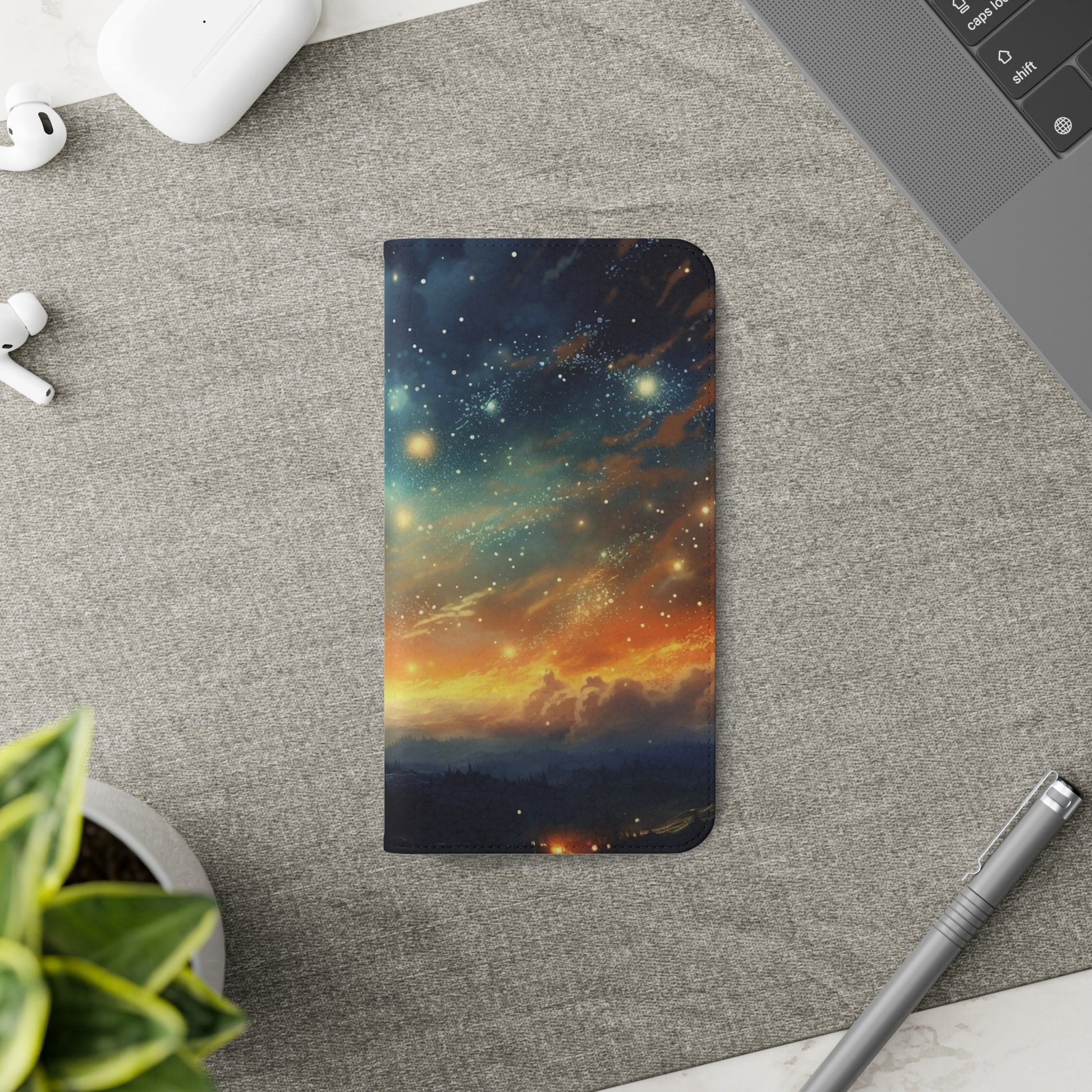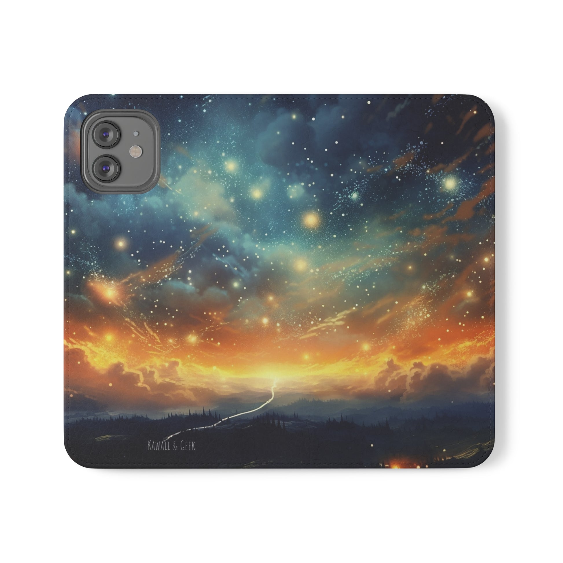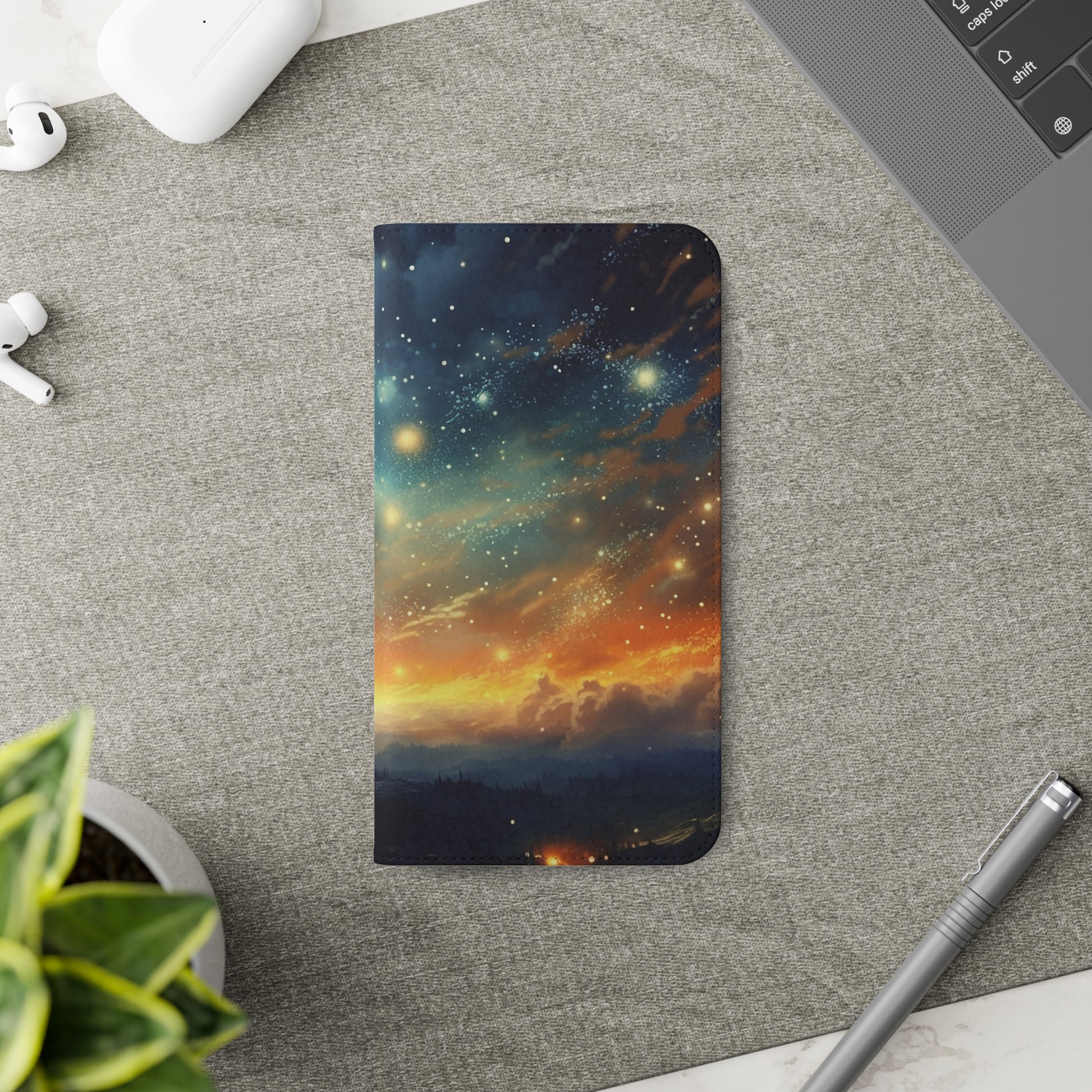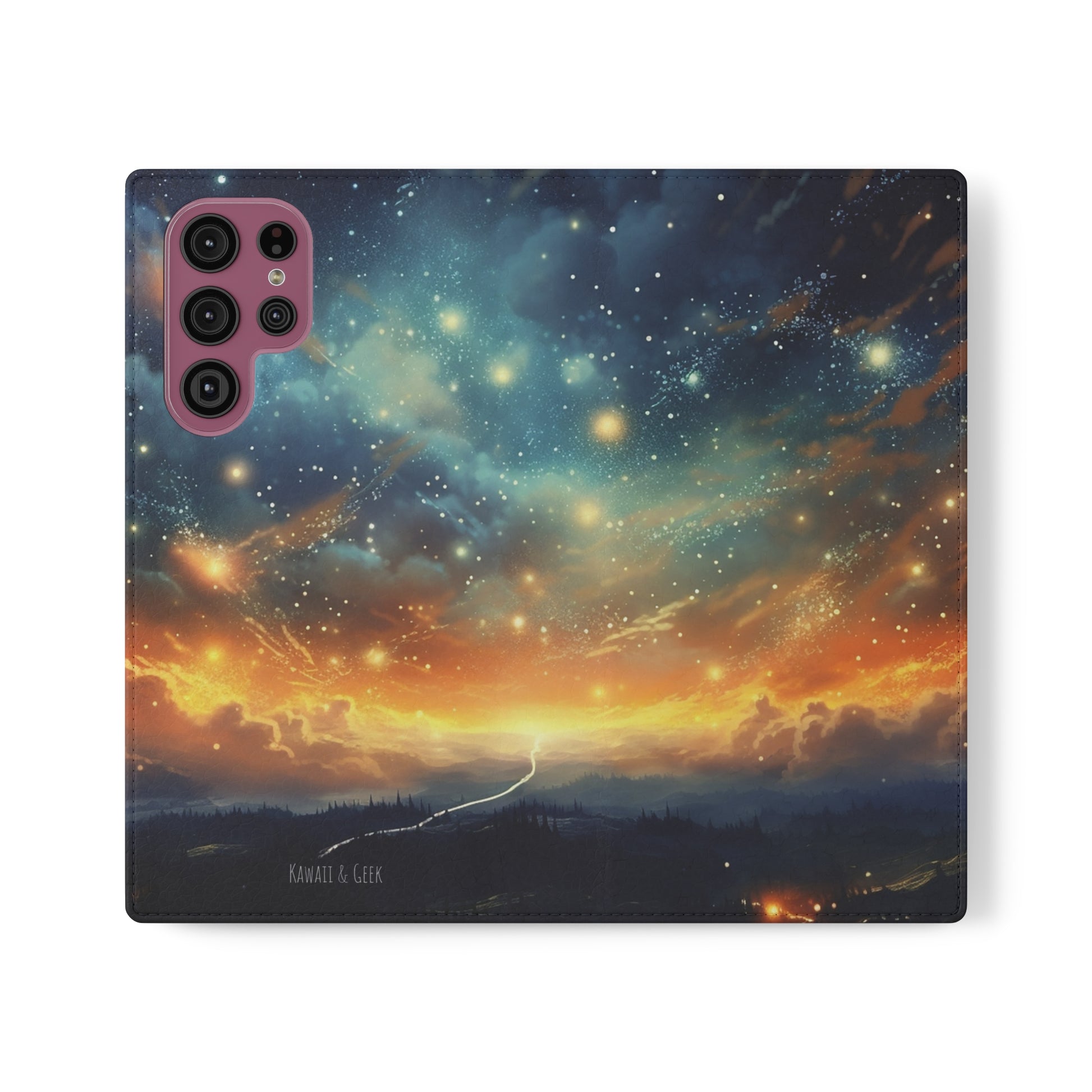 Wonderful Starry Night Flip Phone Case - Embrace the Beauty of the Night Sky