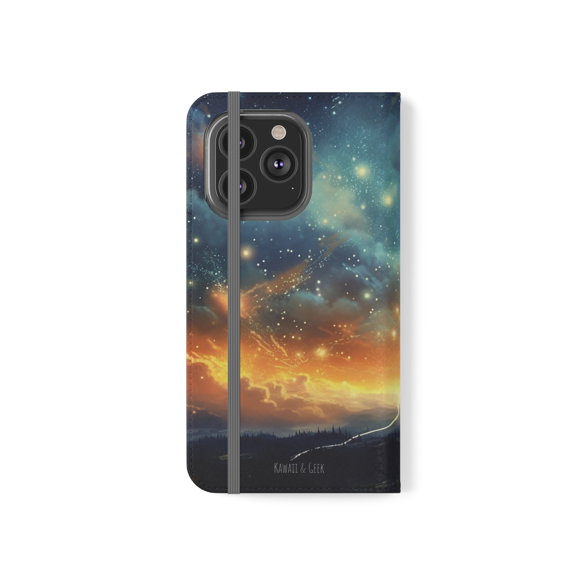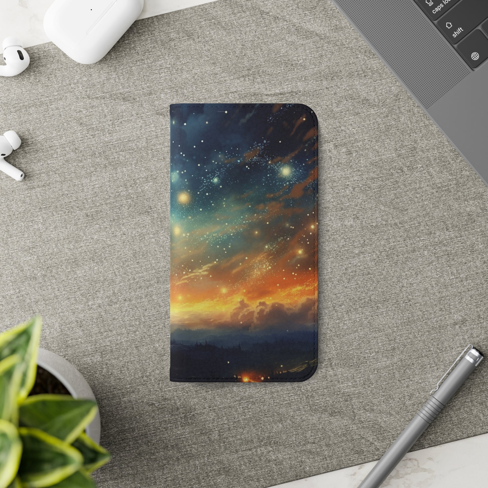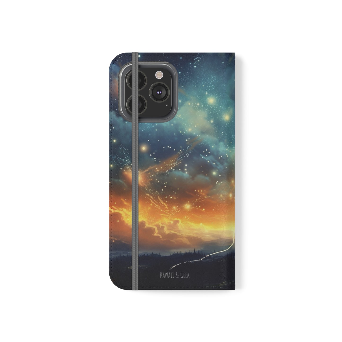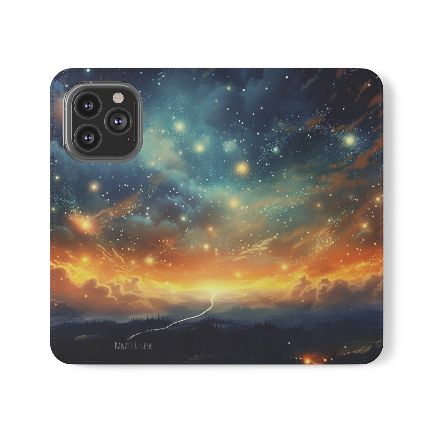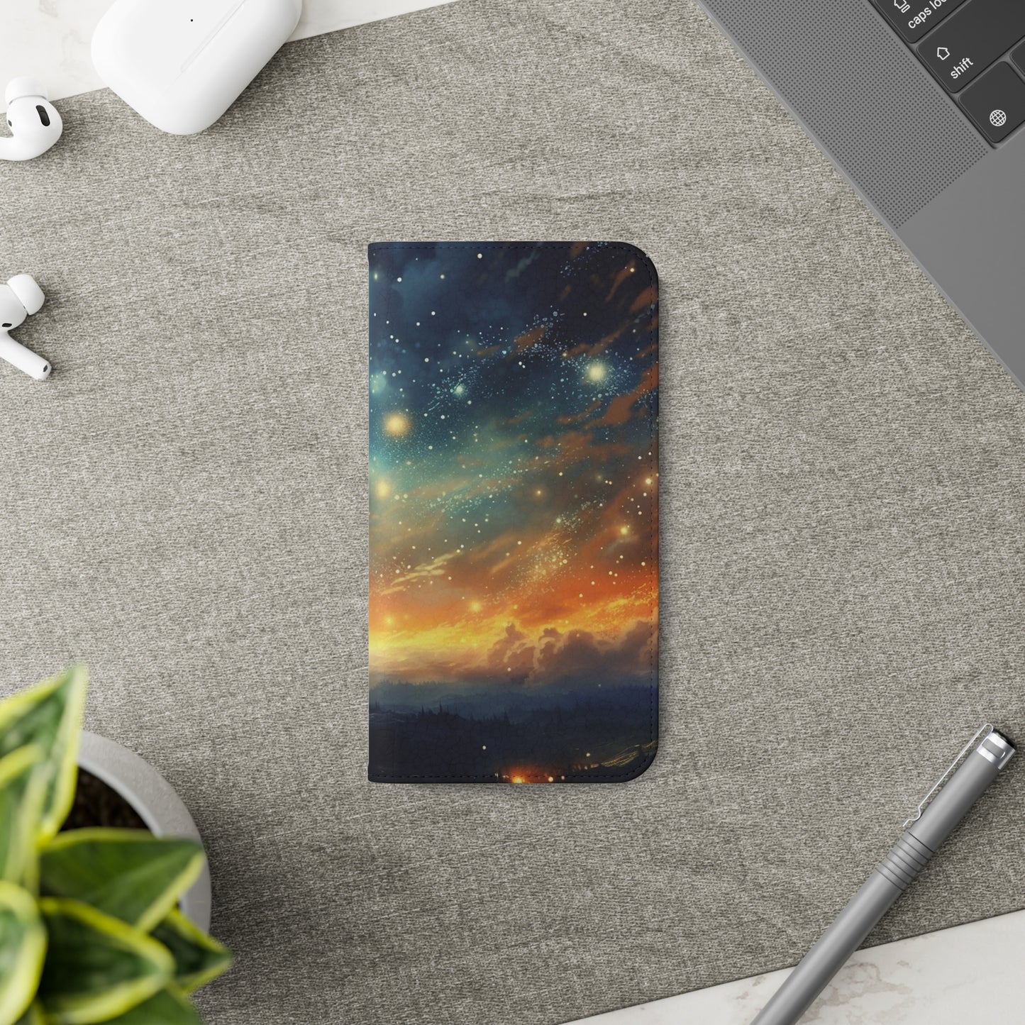Wonderful Starry Night Flip Phone Case - Embrace the Beauty of the Night Sky