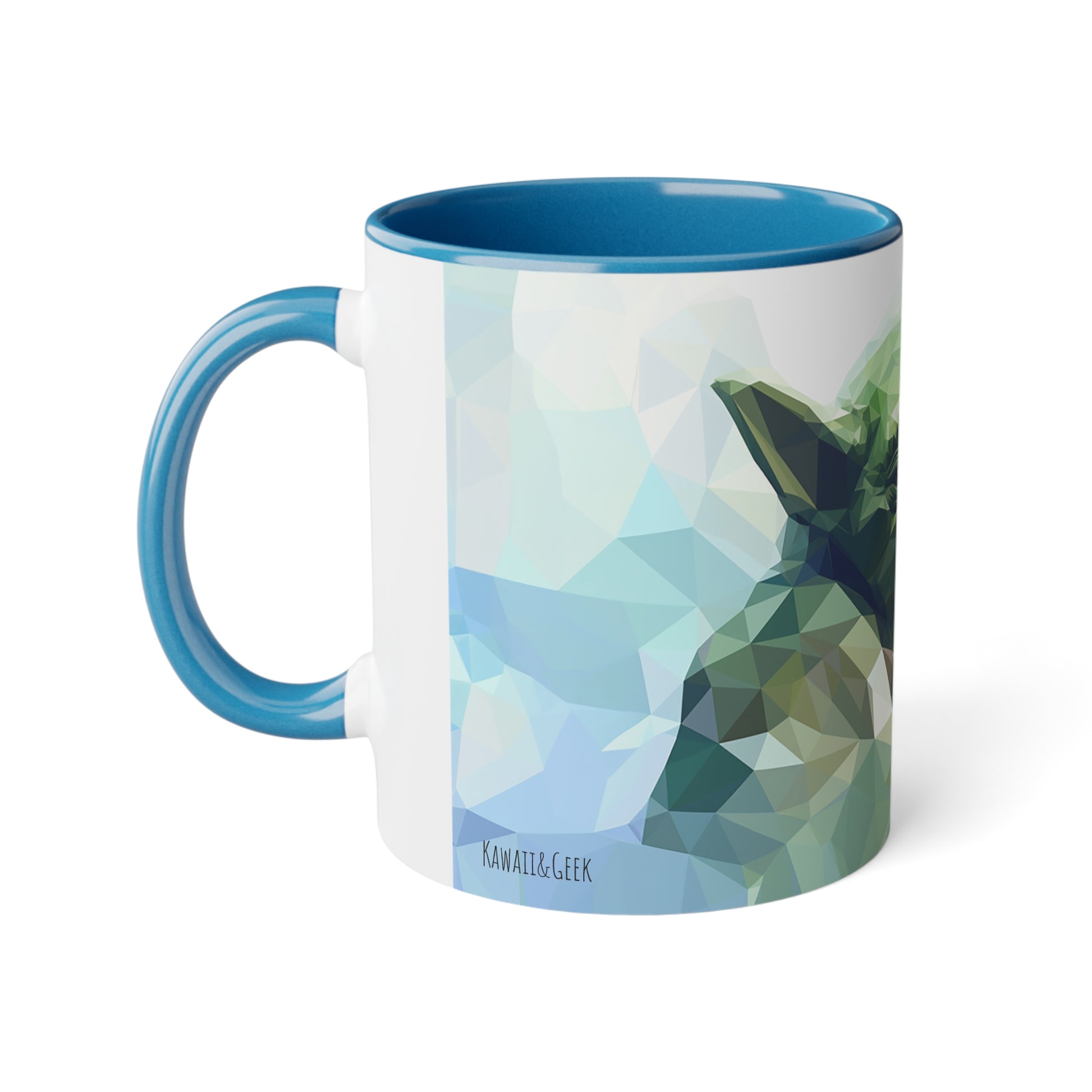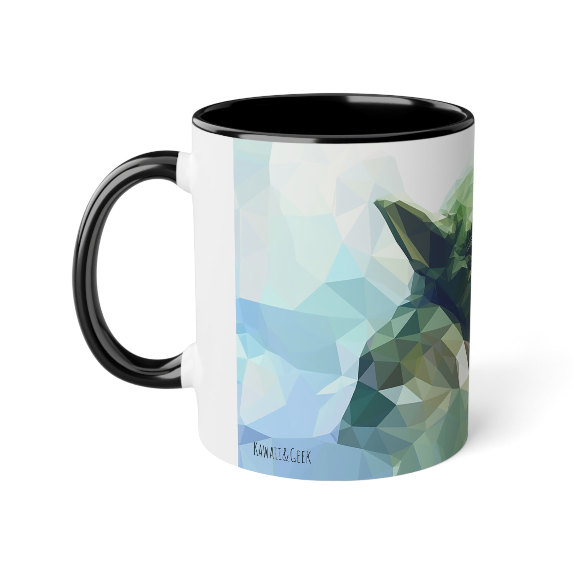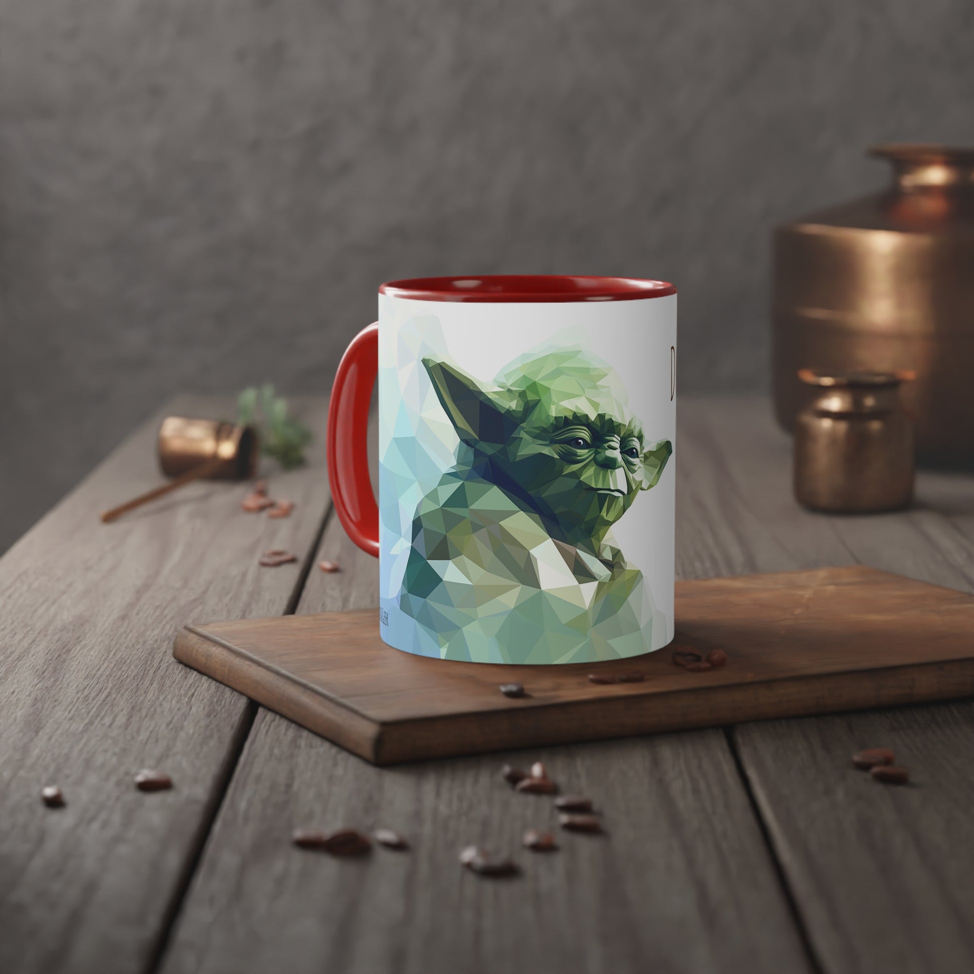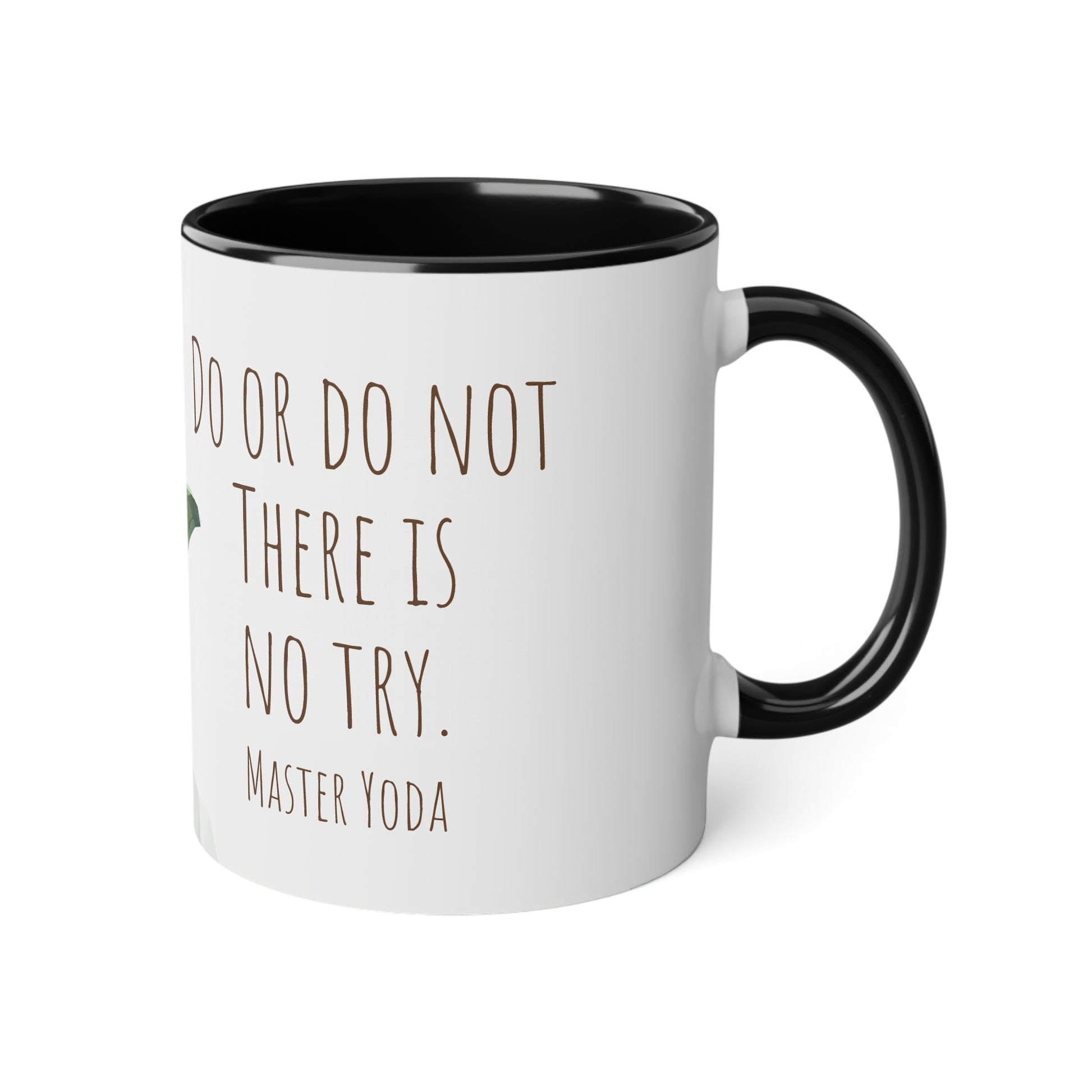 Keywords: Yoda mug, Geometric style, Bicolor design, Do or Do Not, No Try, Inspiring wisdom, Jedi Master, Iconic character, Profound guidance, Conquer challenges, Daily reminder, Beverage enjoyment, Drinkware collectible, Star Wars vibes.