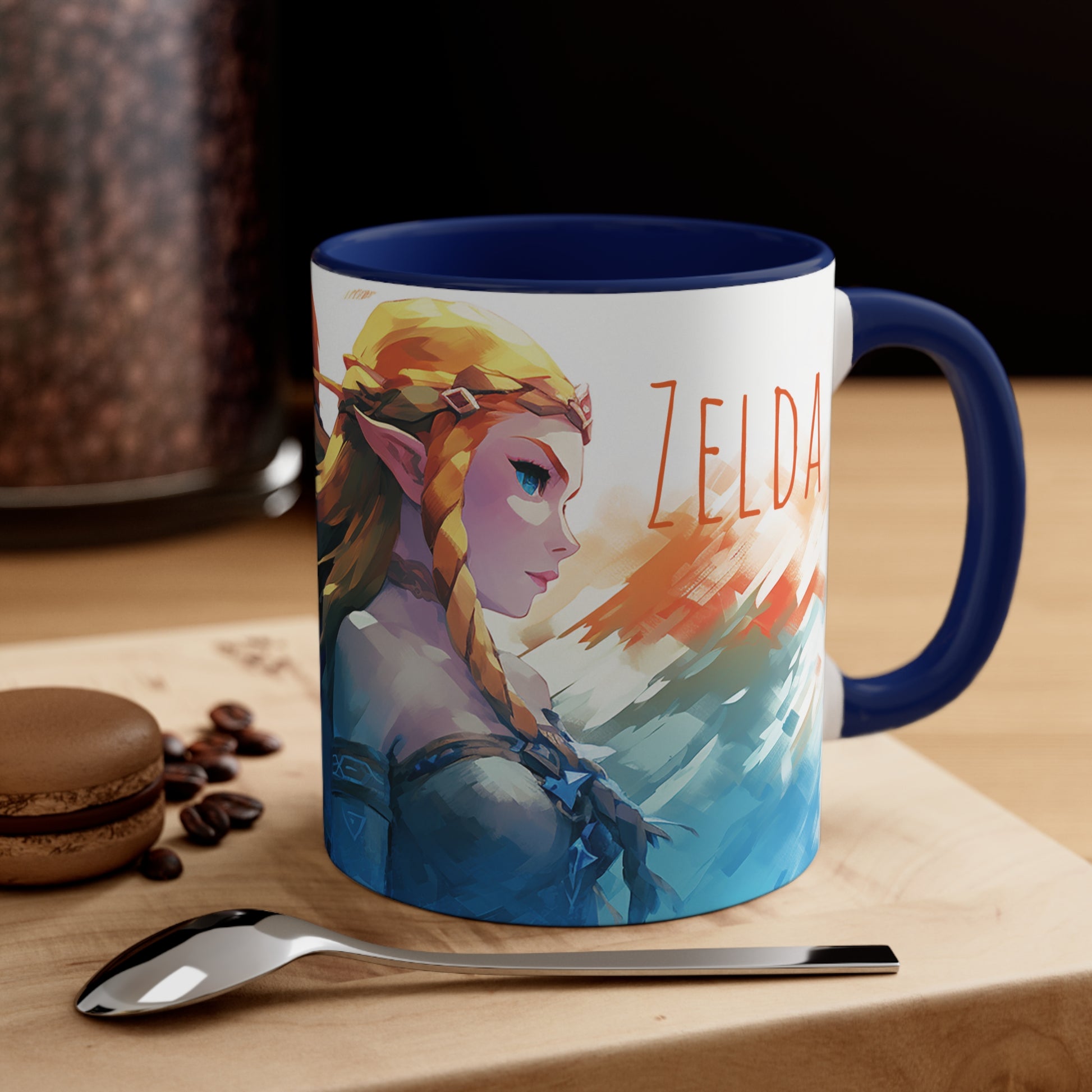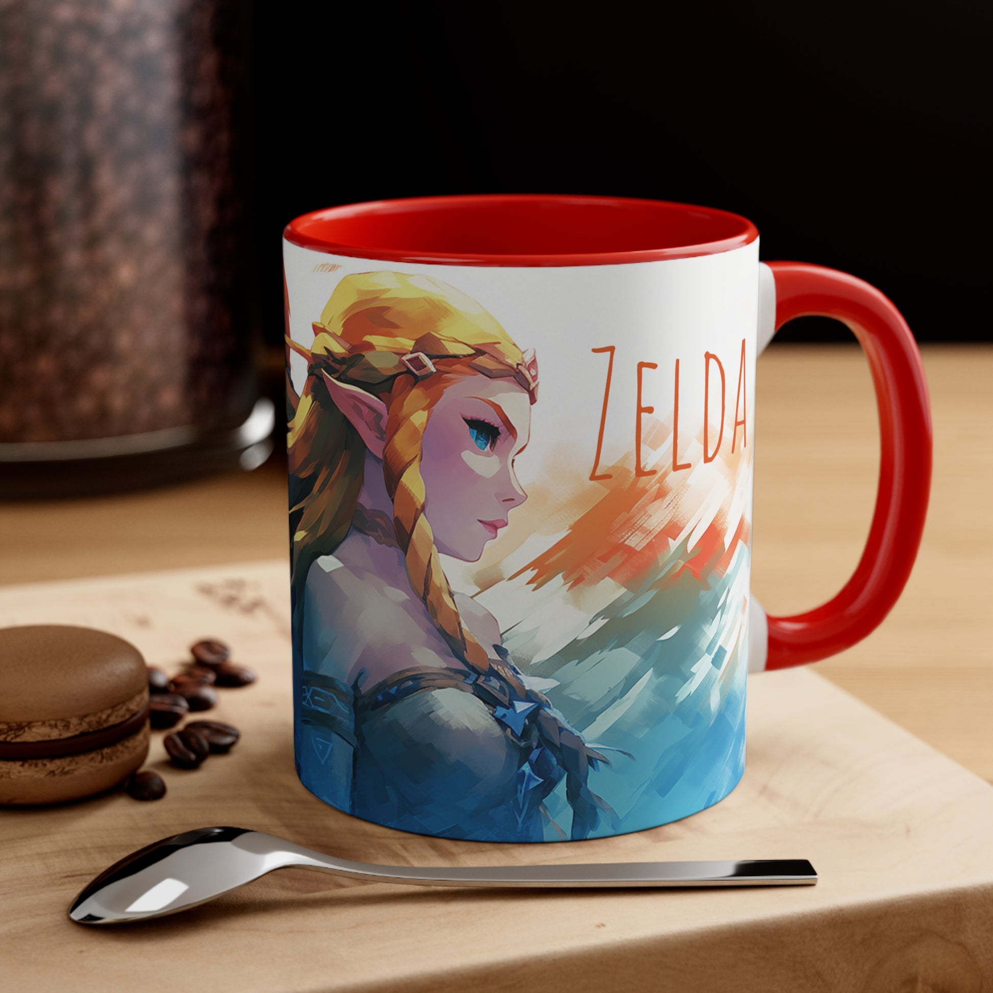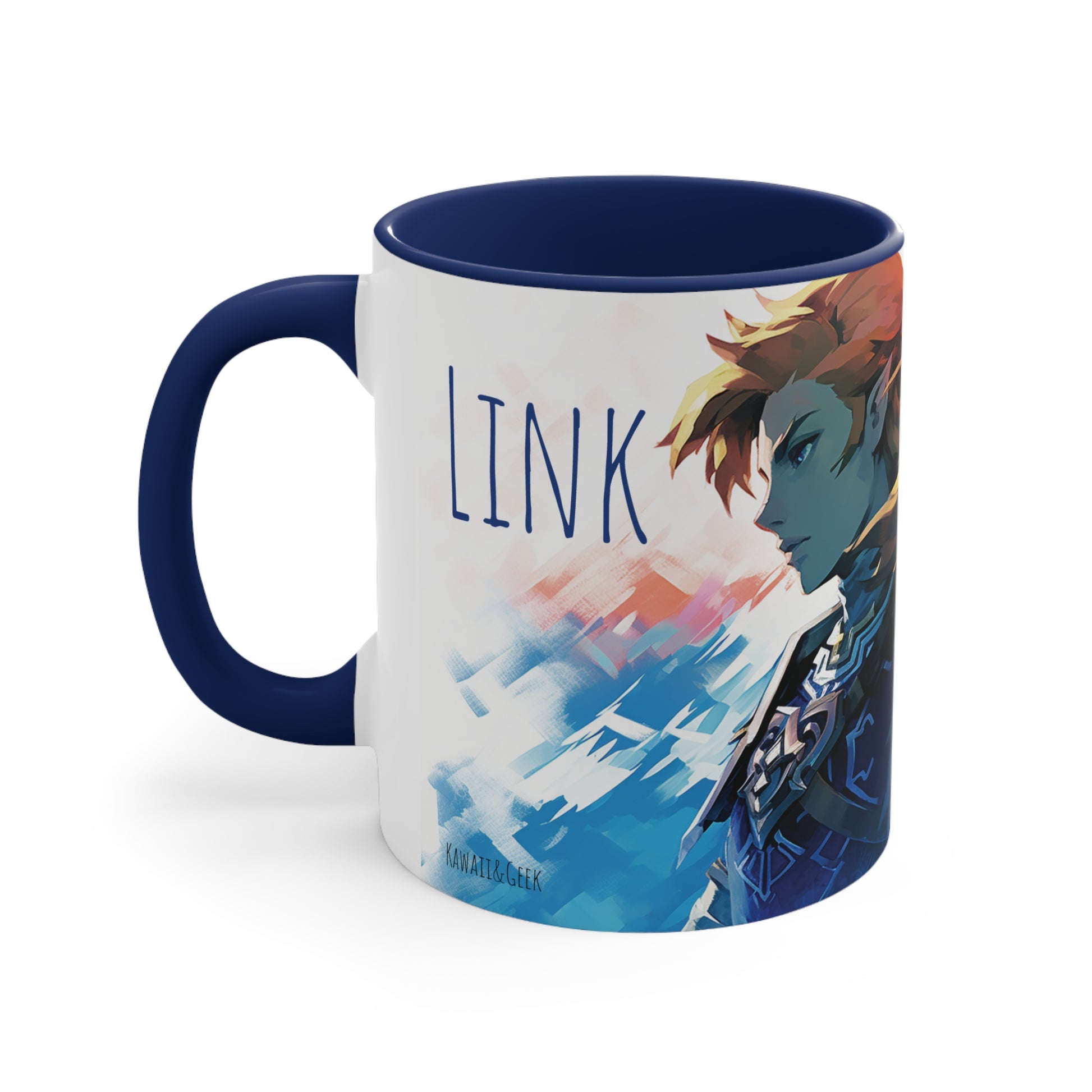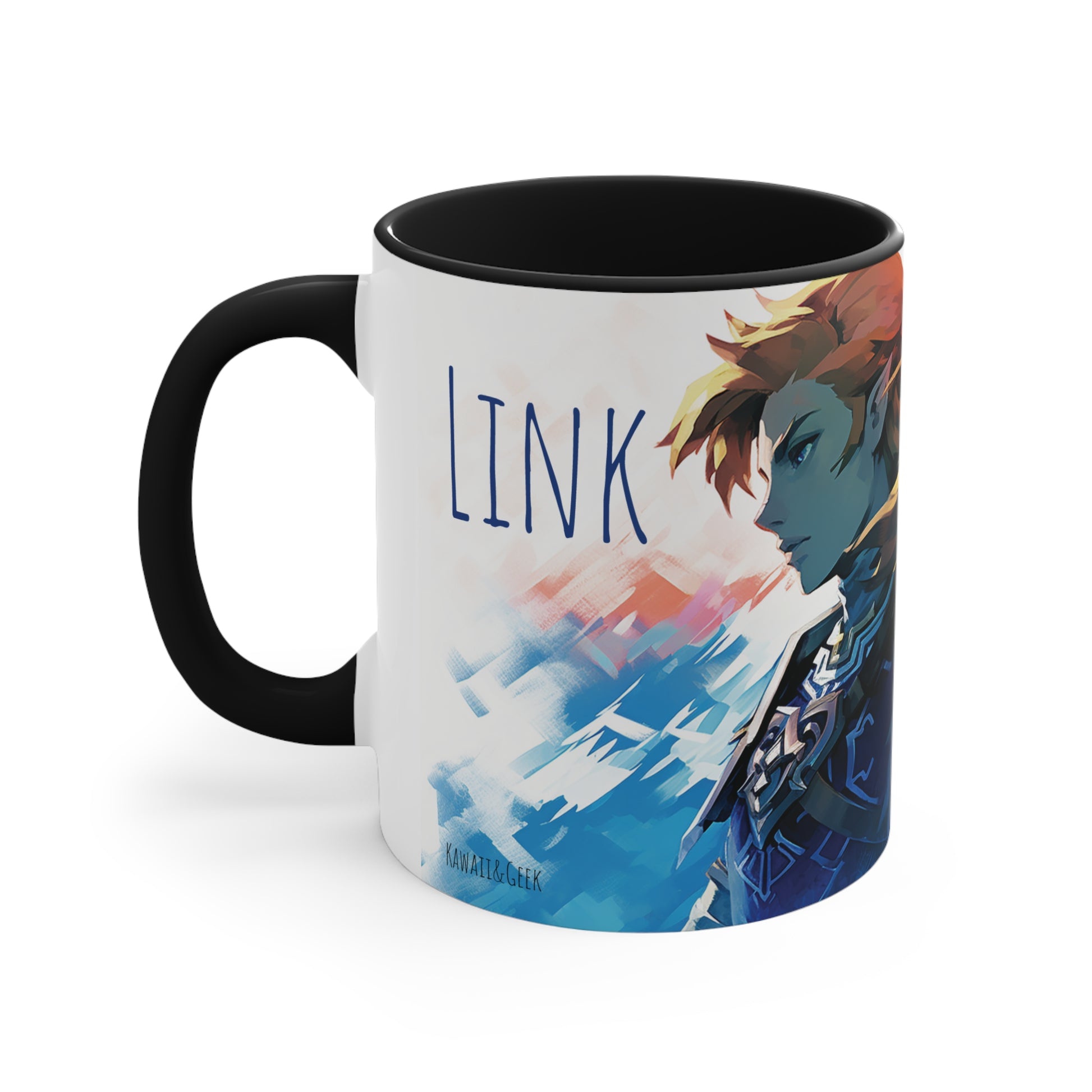 Embark on a legendary adventure with this 11 oz bicolor mug featuring Princess Zelda and Link in a captivating geometric style. Celebrate the timeless tale of courage, friendship, and destiny with every sip. Crafted with high-quality materials, this mug showcases the iconic characters in a visually stunning design. Perfect for fans of the beloved Legend of Zelda series, this mug is a must-have addition to any collection or gift for gamers and fantasy enthusiasts. Keywords: Princess Zelda, Link, Legend of Zelda, geometric style, adventure, timeless tale, courage, friendship, destiny, high-quality materials, visually stunning design, fans, collection, gift, gamers, fantasy enthusiasts. Add some color to your routine with this two-tone, custom accent coffee mug. This 11oz mug features an accented C-Handle that is comfortable to use, as well as an accented interior to add more contrast and character. With your design on this mug, you get an instant winner of a product. .: White ceramic with colored interior and handle .: C-handle .: Eye-catching color contrast .: Lead and BPA-free